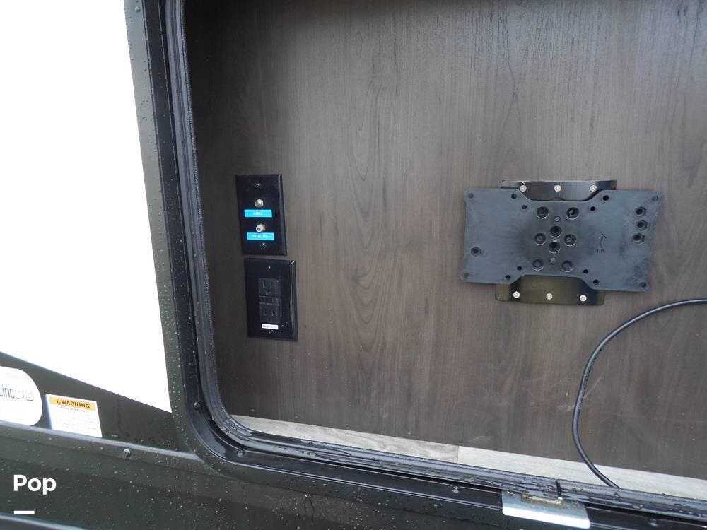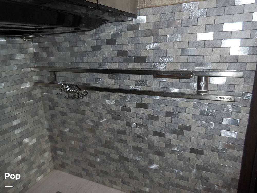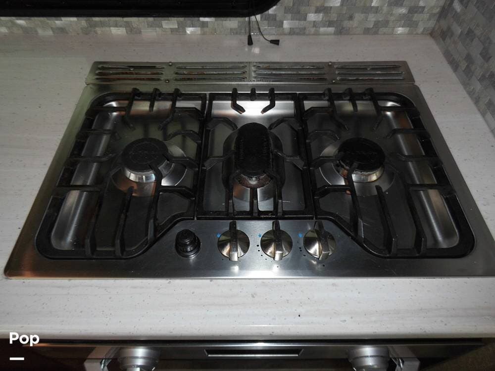 Outdoor living is enhanced by an outdoor kitchen with a cooktop and mini-refrigerator, two power awnings with LED light strips, an exterior TV hook up connection, and unobstructed pass-through storage.