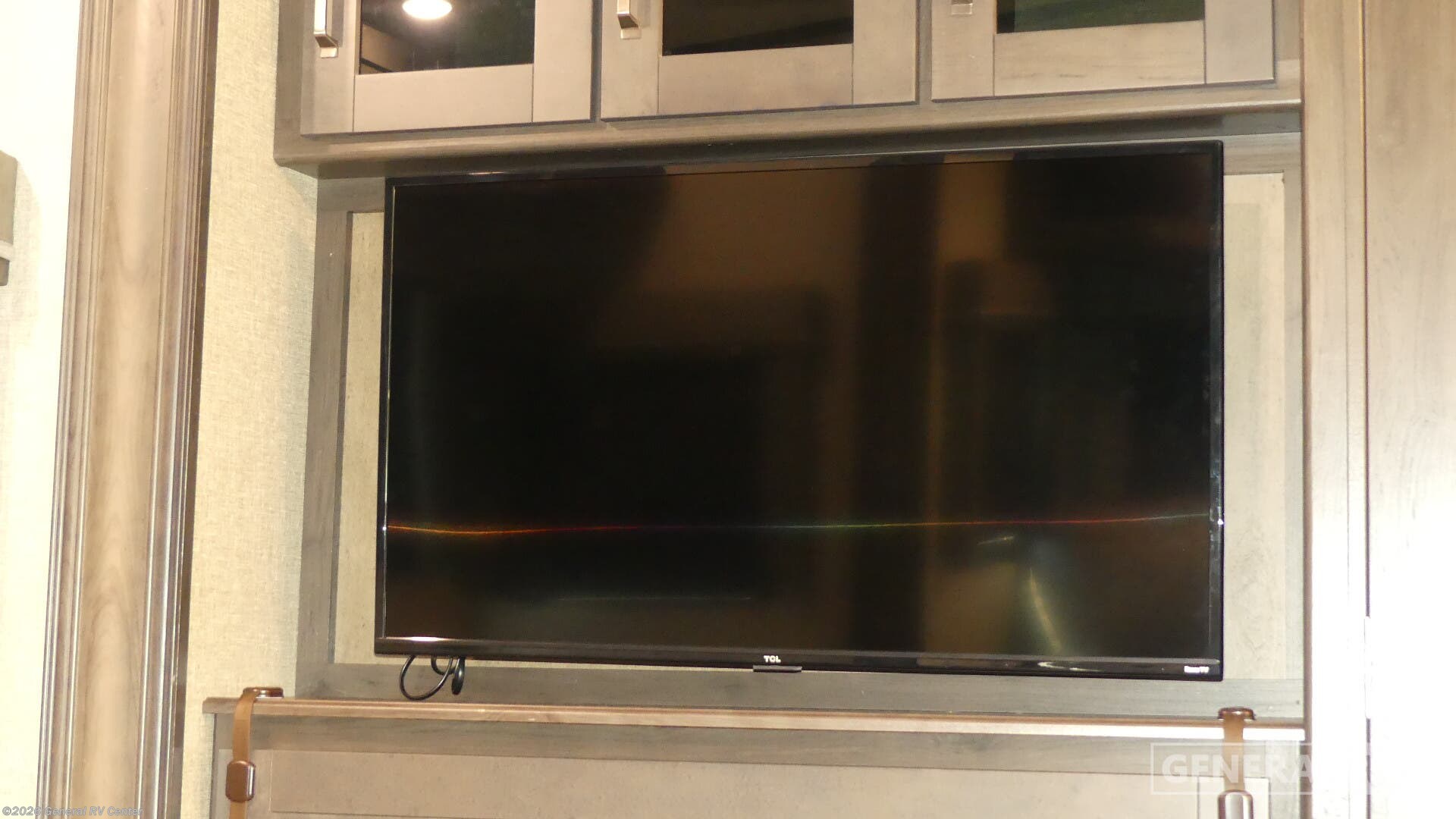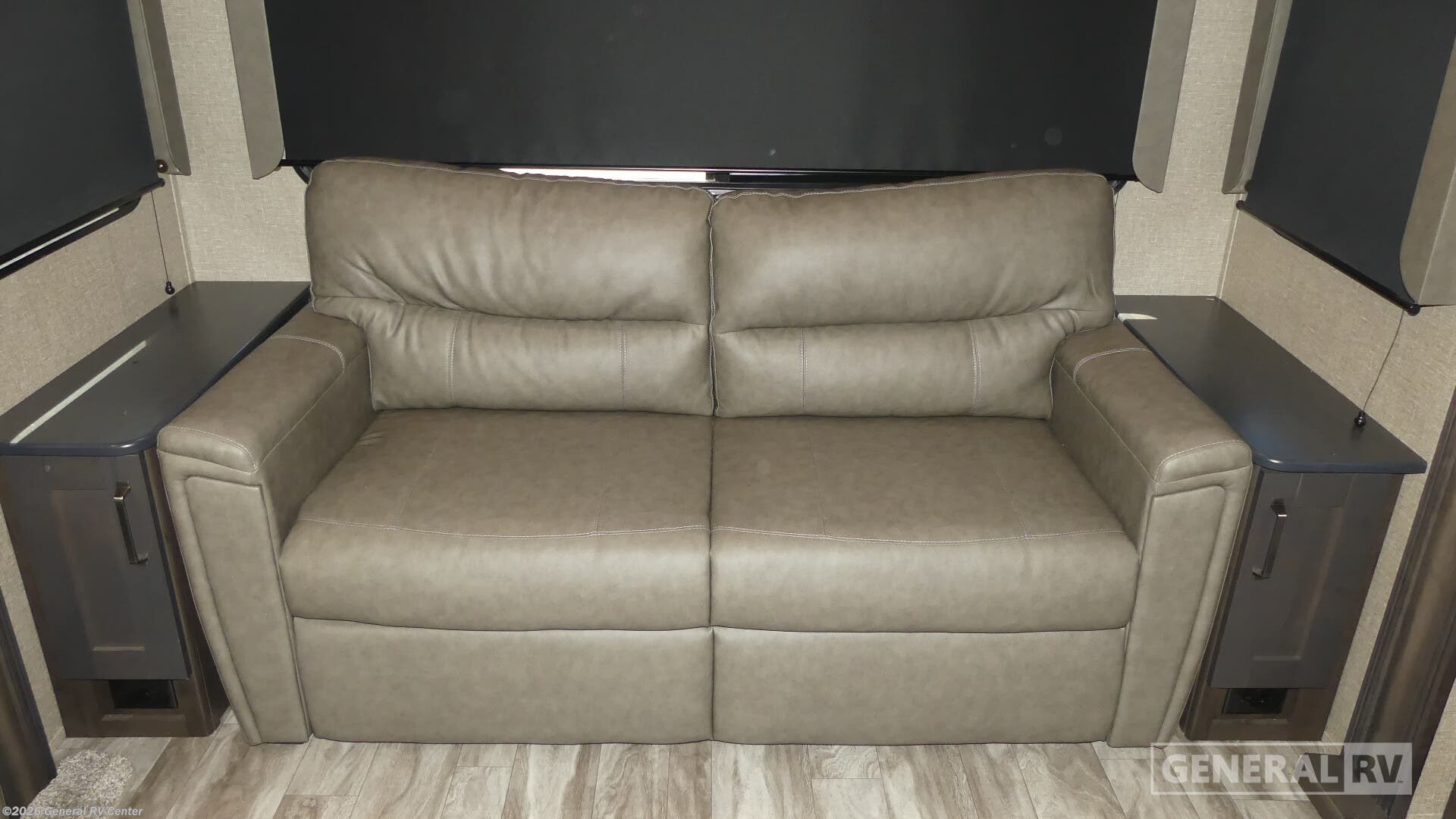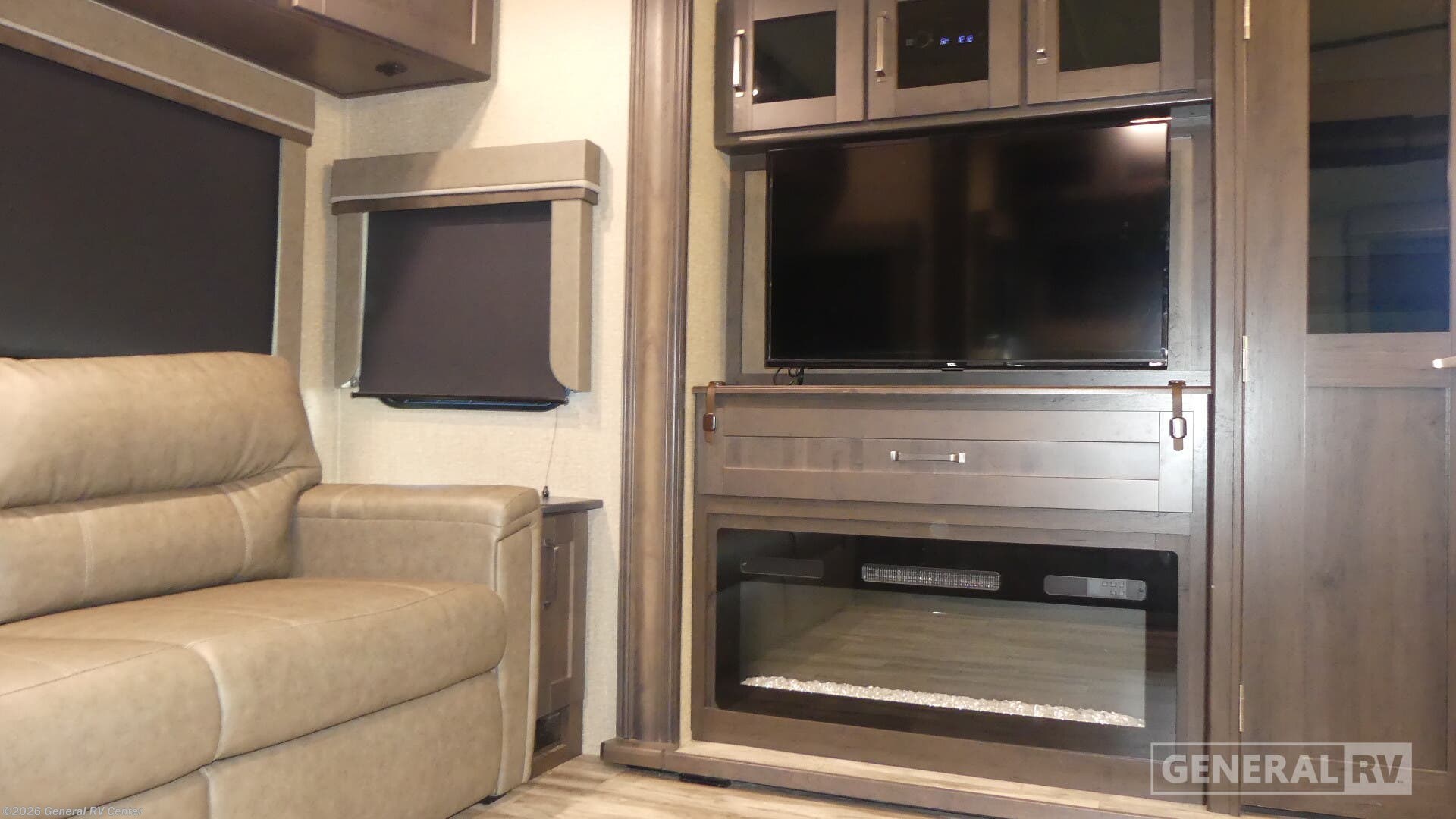 Experience the luxury and comfort of the 2021 Grand Design Reflection 337RLS. This stunning fifth wheel is designed for those who crave adventure without sacrificing the comforts of home. With a spacious 35.5 feet in length, this RV offers a perfect blend of elegance and functionality. The rear living area invites relaxation with its tri-fold sofa and theater seating, all perfectly positioned around a cozy fireplace and entertainment center. The center kitchen is a chef’s delight, featuring a full-size refrigerator and a three-burner cooktop, making meal prep a breeze. The Reflection 337RLS ensures restful nights with its front bedroom, offering a queen bed with an optional king upgrade. The center bath is thoughtfully designed with a fiberglass shower, enhancing your comfort on the road. With ample storage throughout, including a pass-through compartment, and prepped for a washer and dryer, this RV meets all your travel needs. Enjoy outdoor living under two powered retractable awnings, perfect for creating memorable moments with family and friends. Visit your nearest General RV dealership to explore this remarkable RV in person and start your next adventure today!