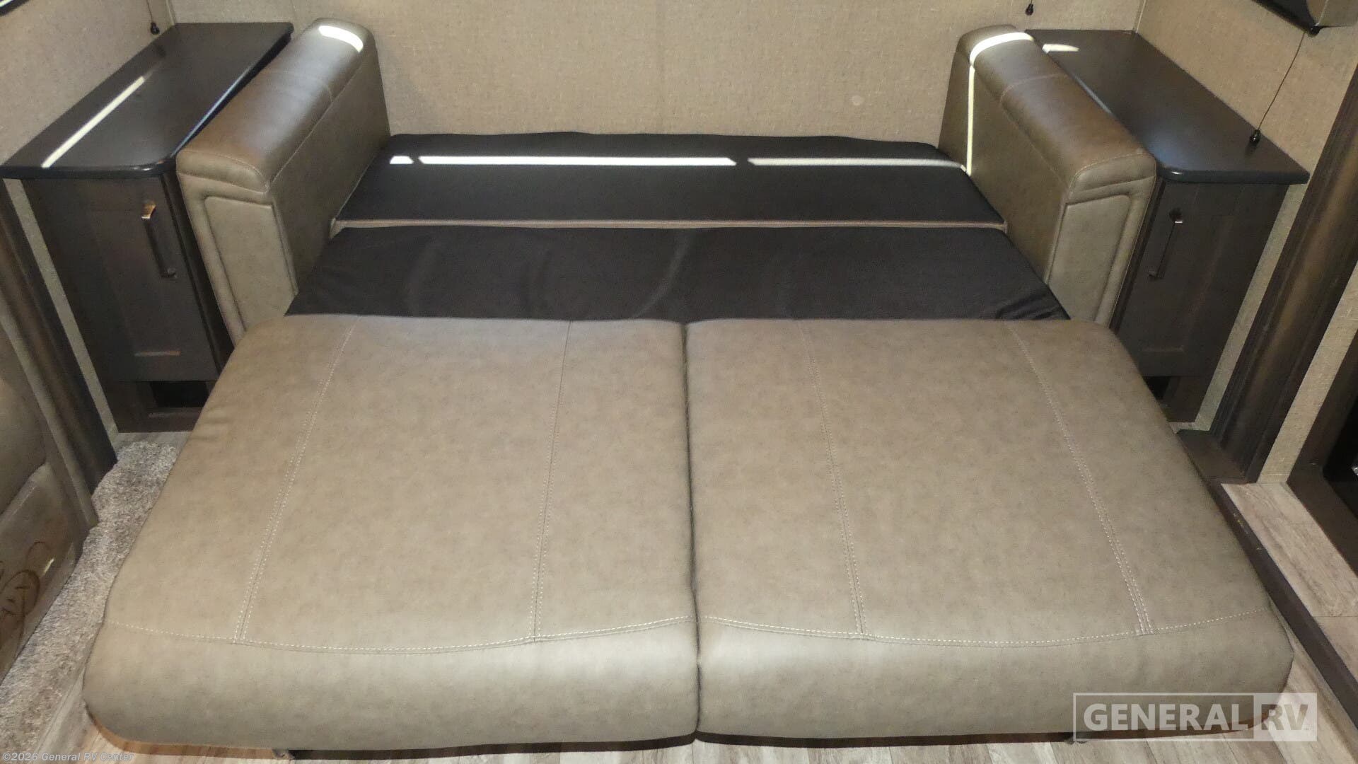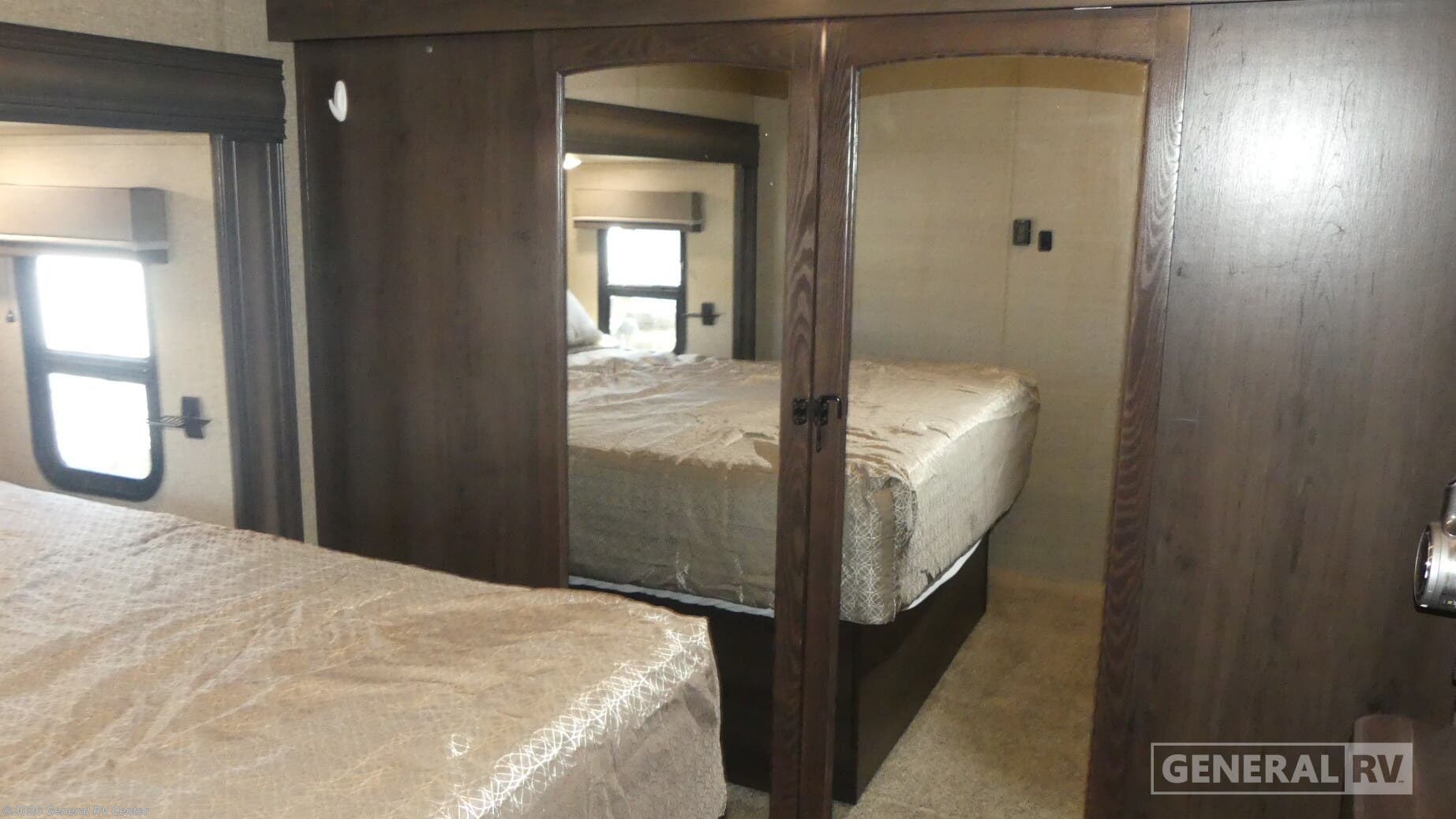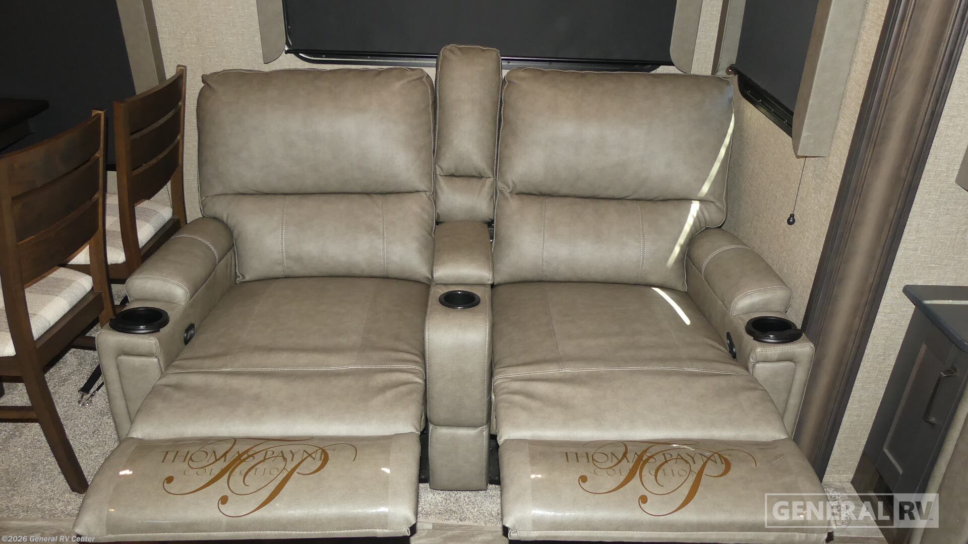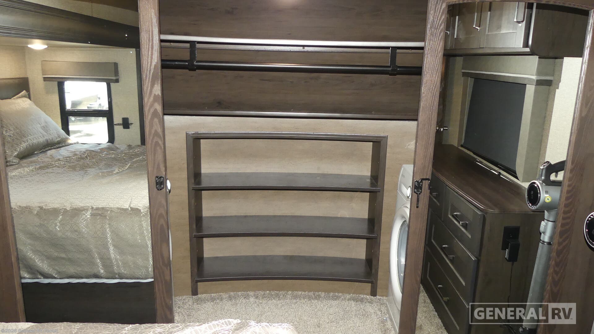 Experience the luxury and comfort of the 2021 Grand Design Reflection 337RLS. This stunning fifth wheel is designed for those who crave adventure without sacrificing the comforts of home. With a spacious 35.5 feet in length, this RV offers a perfect blend of elegance and functionality. The rear living area invites relaxation with its tri-fold sofa and theater seating, all perfectly positioned around a cozy fireplace and entertainment center. The center kitchen is a chef’s delight, featuring a full-size refrigerator and a three-burner cooktop, making meal prep a breeze. The Reflection 337RLS ensures restful nights with its front bedroom, offering a queen bed with an optional king upgrade. The center bath is thoughtfully designed with a fiberglass shower, enhancing your comfort on the road. With ample storage throughout, including a pass-through compartment, and prepped for a washer and dryer, this RV meets all your travel needs. Enjoy outdoor living under two powered retractable awnings, perfect for creating memorable moments with family and friends. Visit your nearest General RV dealership to explore this remarkable RV in person and start your next adventure today!