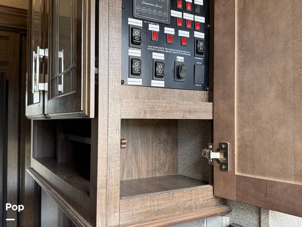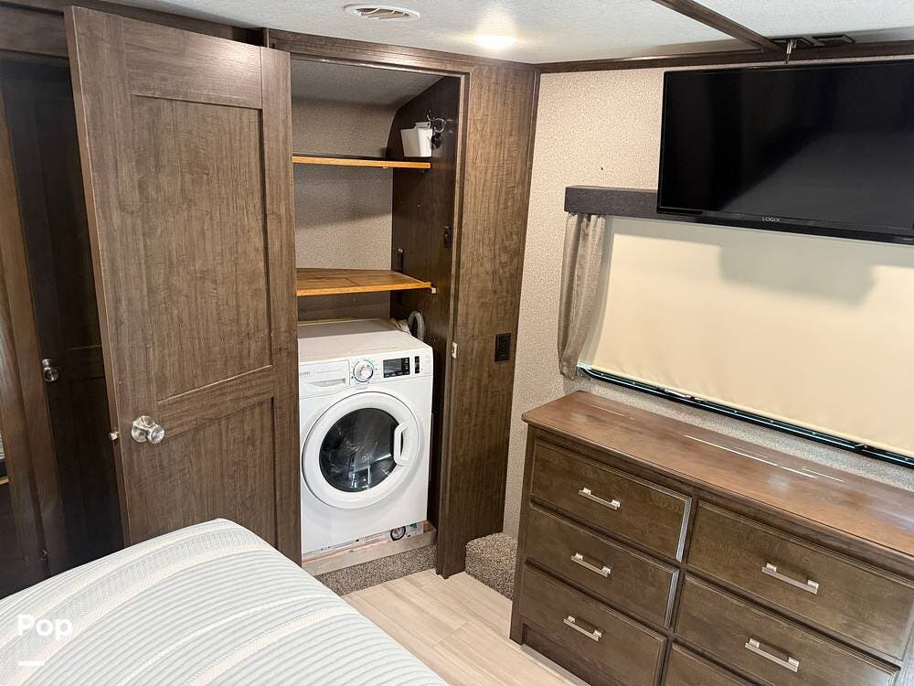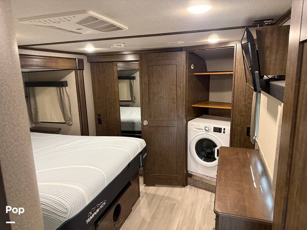 You'll appreciate the 6-point hydraulic leveling system, dual power-retractable awnings with LED lighting, and extensive pass-through storage.