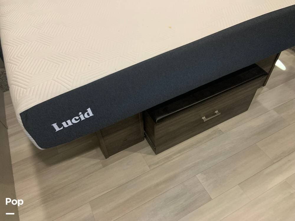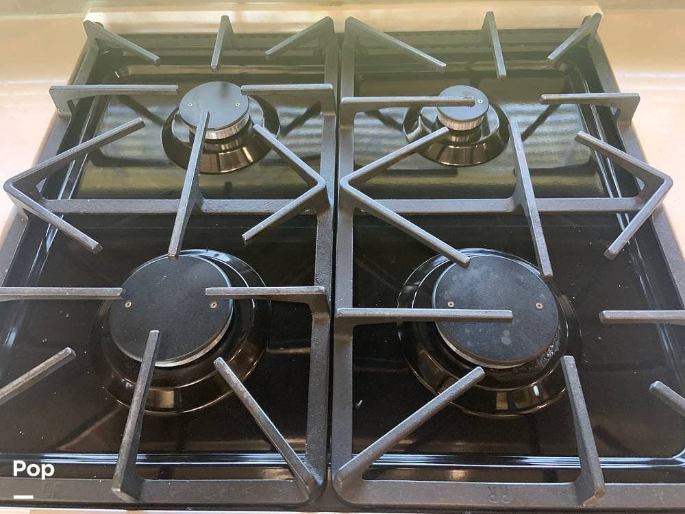 This coach will comfortably sleep four people via the king master suite and the fold-out sofa in the living area. The full bath in the hall at the top of the stairs, just outside the master suite, boasts a large walk-in shower, vanity, and large linen closet.