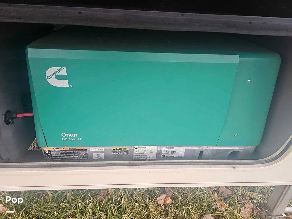 The RV also features 3 AC units, an Onan 5500 generator, and an Exterior Kitchen