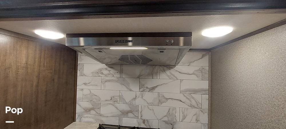The layout of the fine rig is extra special. The spacious kitchen is elevated and in the rear so no walking through the kitchen to get to any part of the trailer. This kitchen is nicer than most homes and the prep and storage space is amazing.