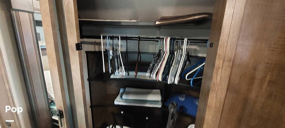 The upper front master bedroom is open with plenty of space and the double sink vanity allows for plenty of counter space. Although this rig has all the comforts of home, its best feature is the amazing amount of storage it has, and is easily accessible.