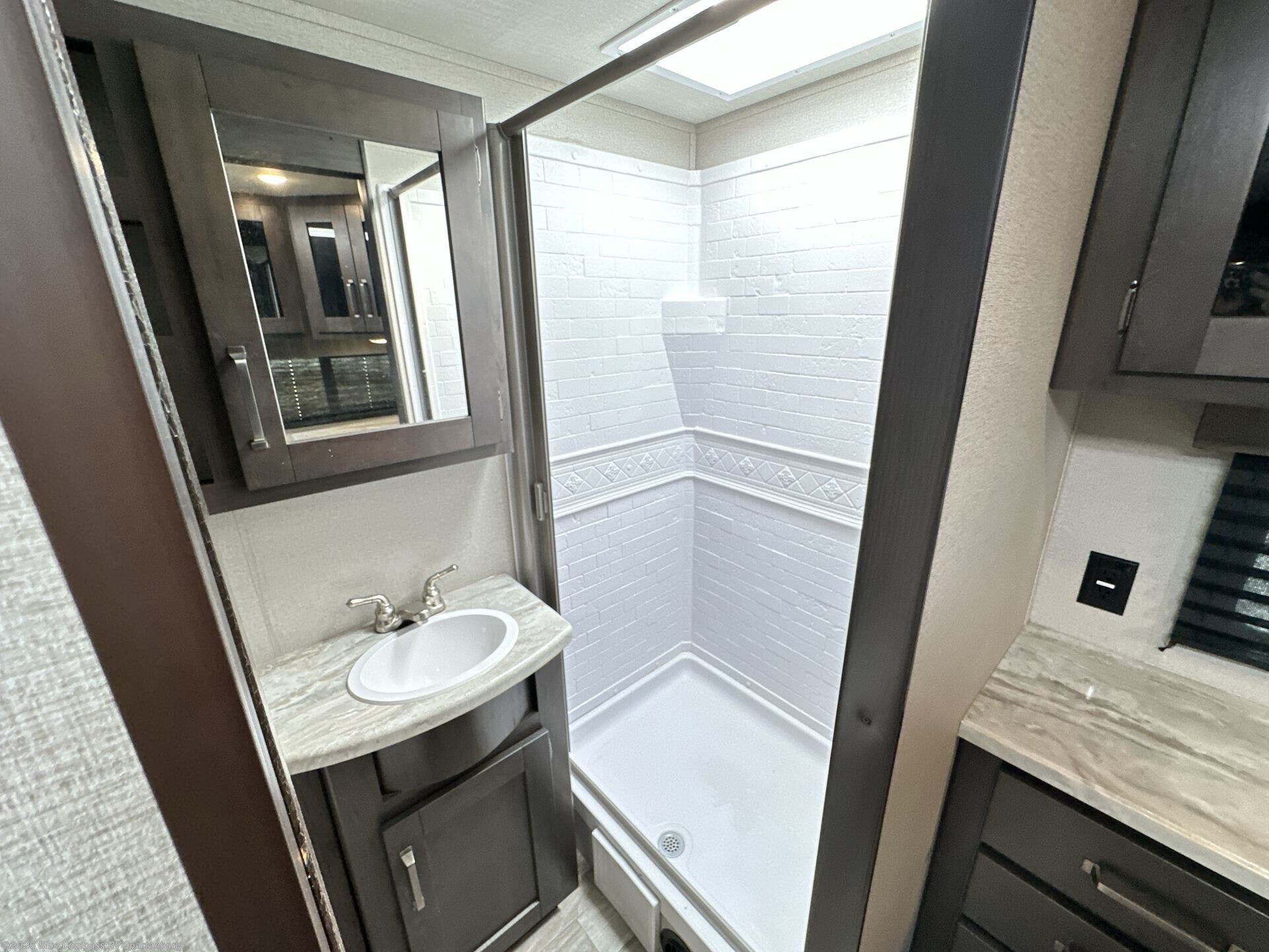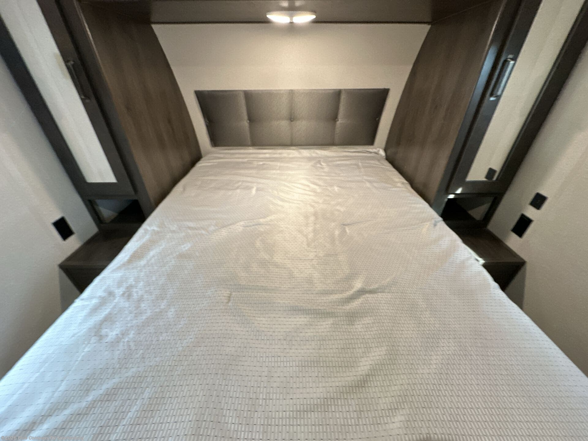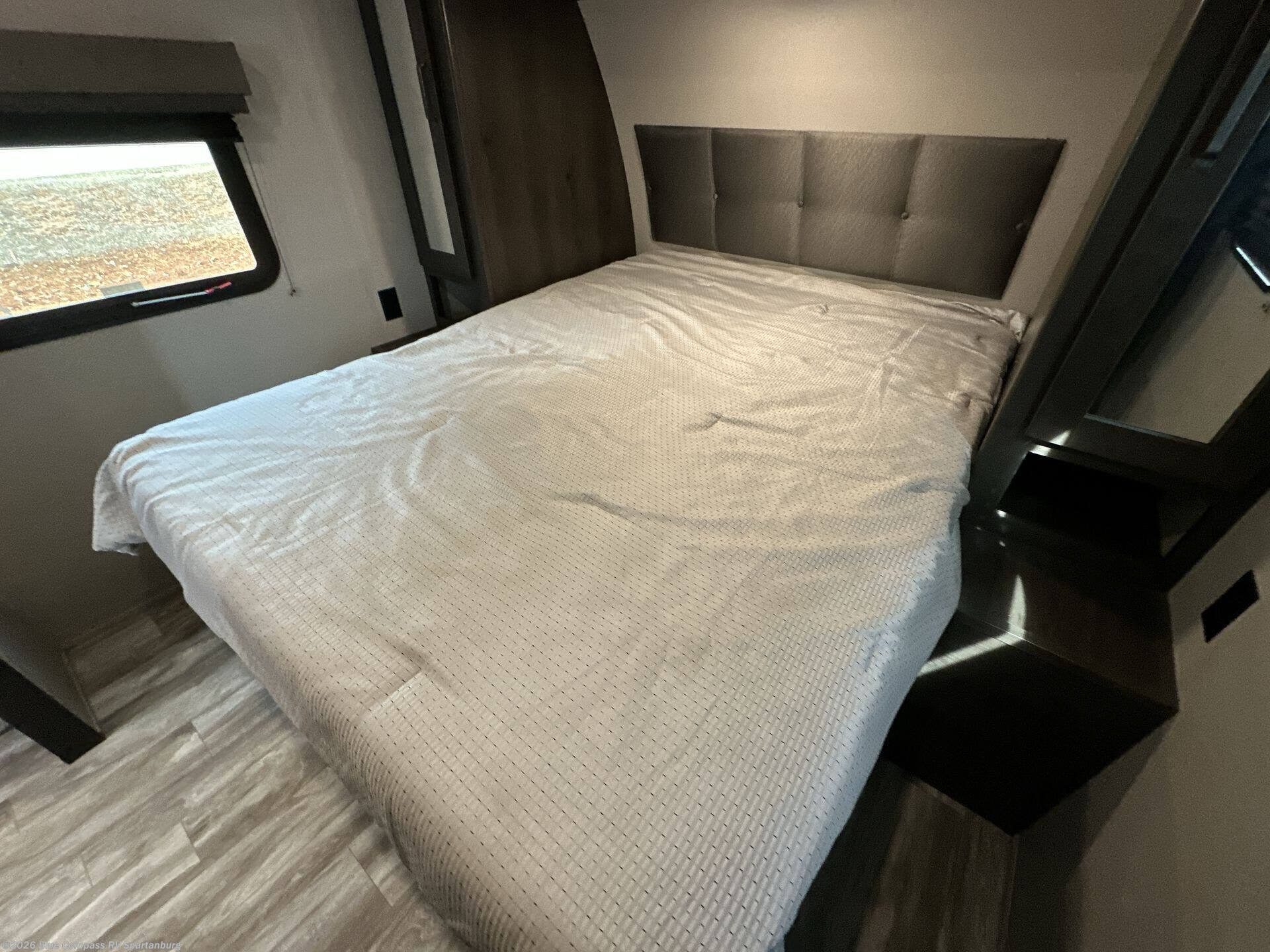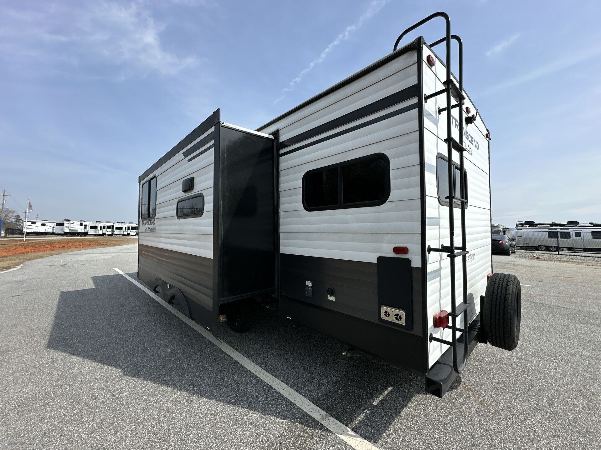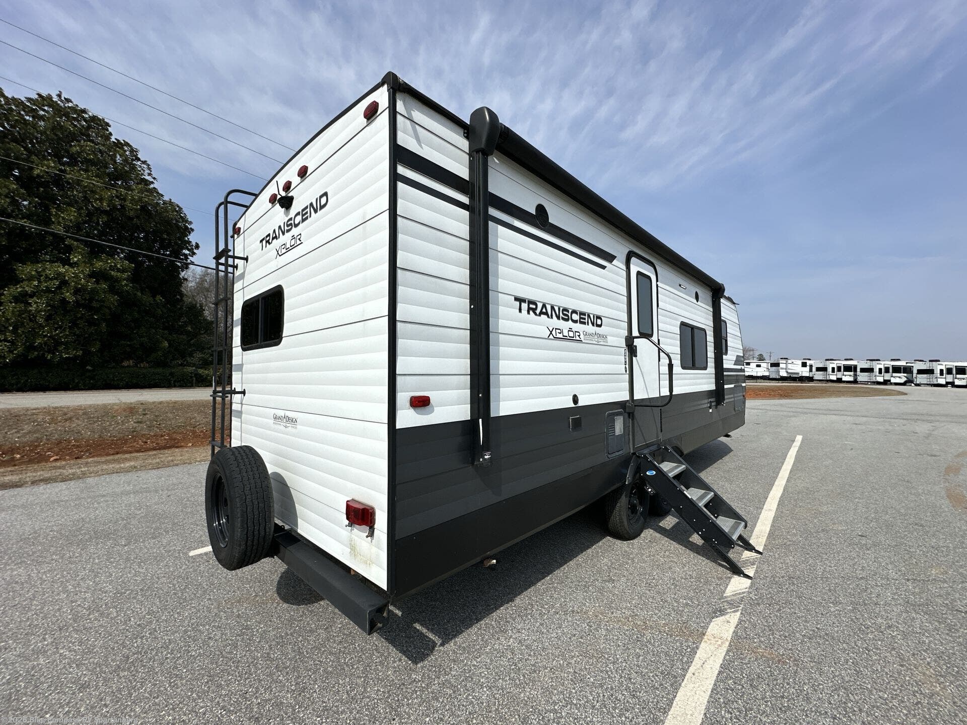 You will enjoy a good night's rest each night in this Transcend Xplor travel trailer with a queen-size bed in the front private bedroom, plus there is an area prepped for you to add a TV. The 60" tri-fold sofa is not only a good place to take an afternoon nap, but it is also a place to sleep for extra guests once converted. While you are enjoying your delicious meal at the booth dinette, your furry friend can enjoy theirs at the pull-out pet drawer below the double-door refrigerator. As you enter the unit, you will see a countertop with a shoe rack to your right and a wardrobe/pantry to your left. The rear corner bathroom has a walk-in shower for you to start each day feeling clean and fresh too!