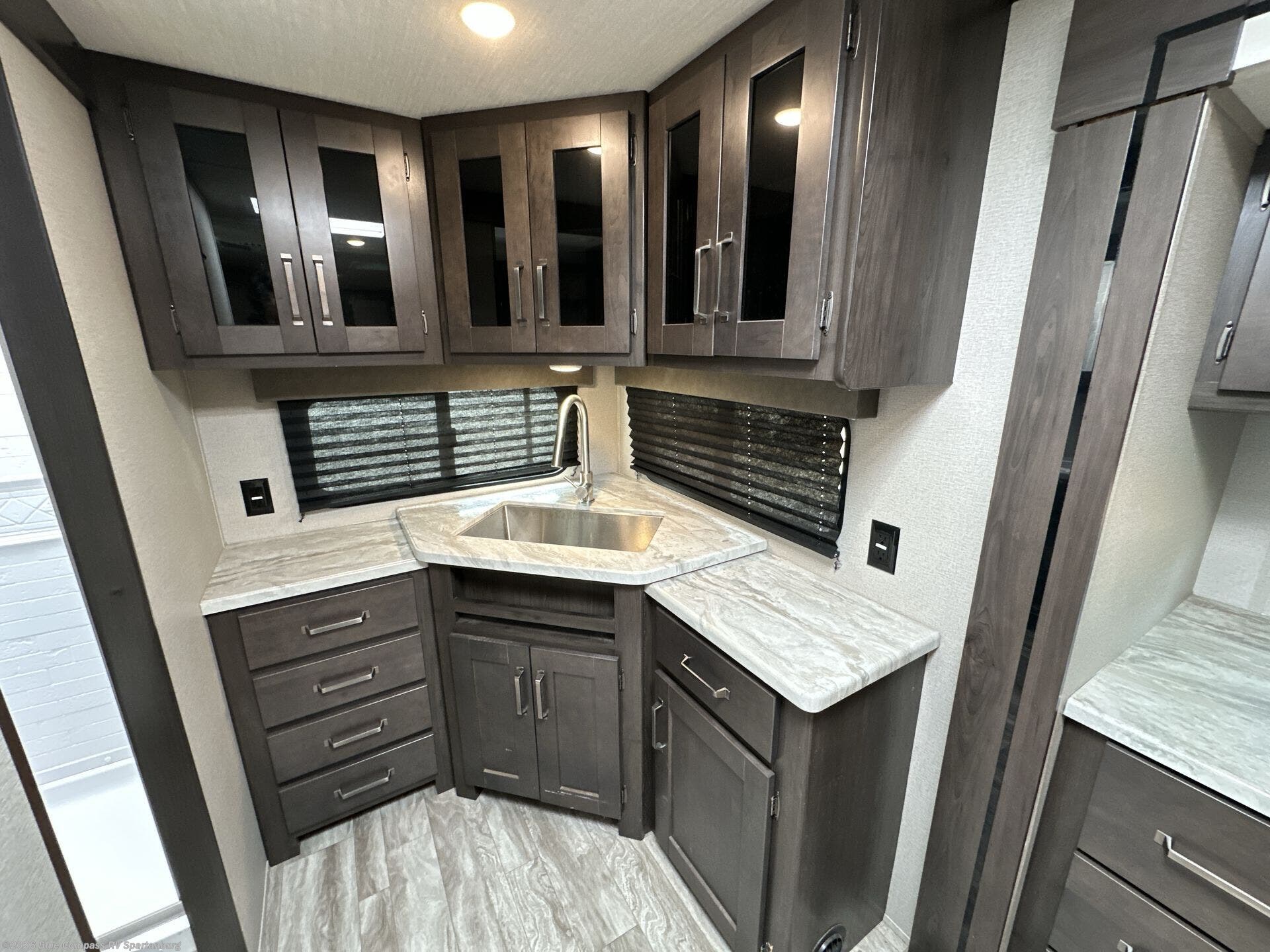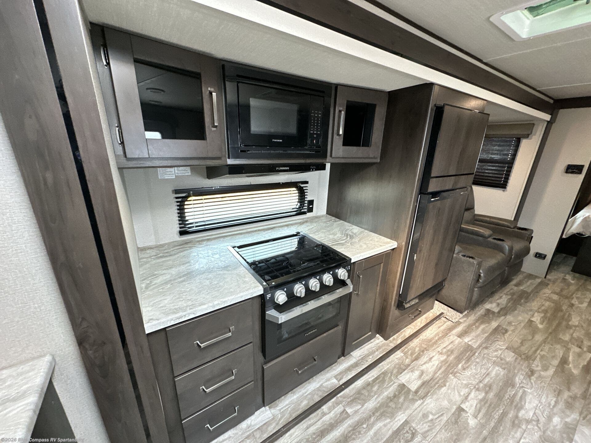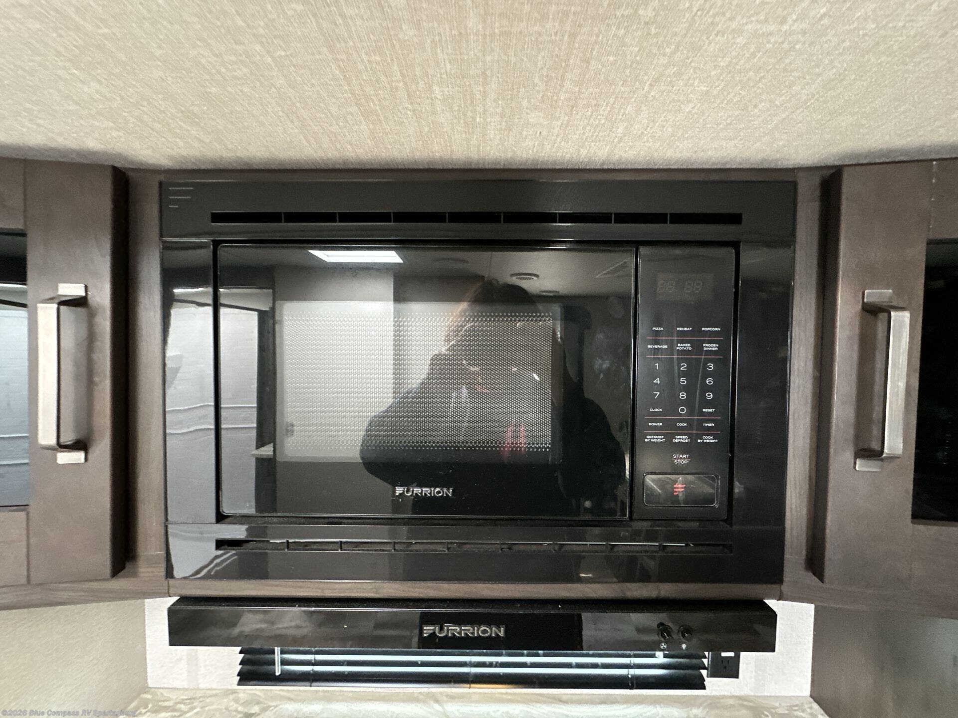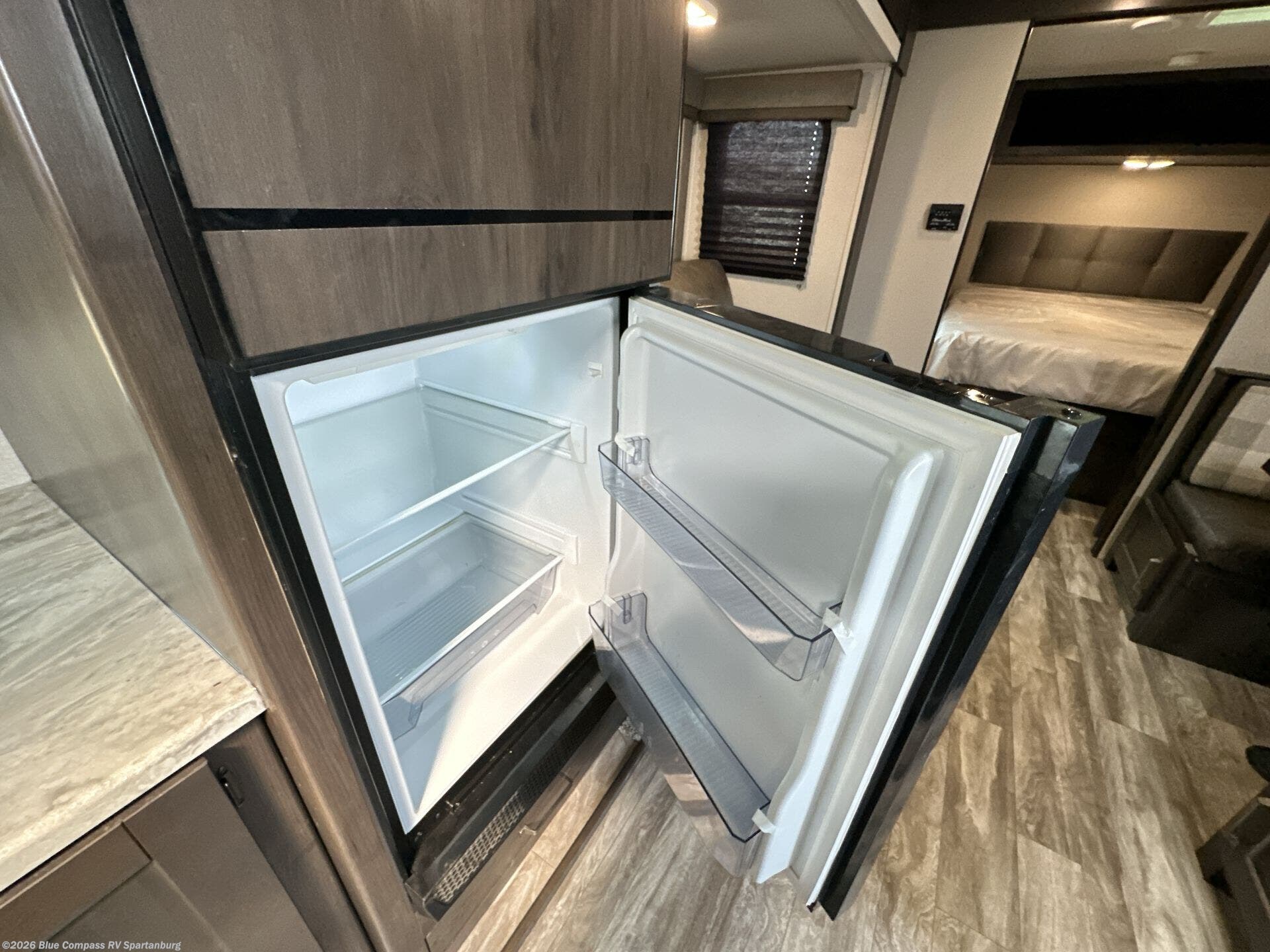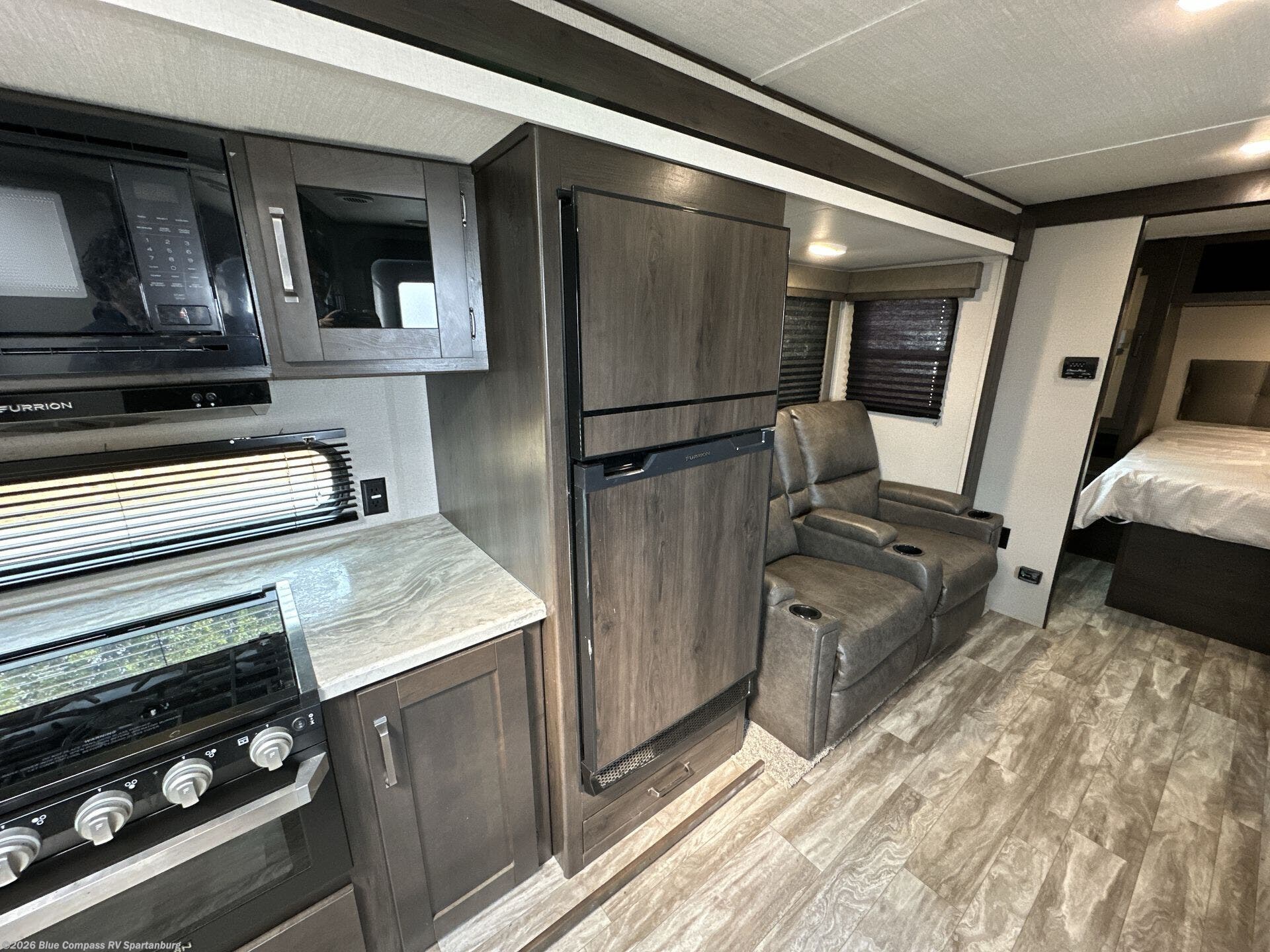 You will enjoy a good night's rest each night in this Transcend Xplor travel trailer with a queen-size bed in the front private bedroom, plus there is an area prepped for you to add a TV. The 60" tri-fold sofa is not only a good place to take an afternoon nap, but it is also a place to sleep for extra guests once converted. While you are enjoying your delicious meal at the booth dinette, your furry friend can enjoy theirs at the pull-out pet drawer below the double-door refrigerator. As you enter the unit, you will see a countertop with a shoe rack to your right and a wardrobe/pantry to your left. The rear corner bathroom has a walk-in shower for you to start each day feeling clean and fresh too!