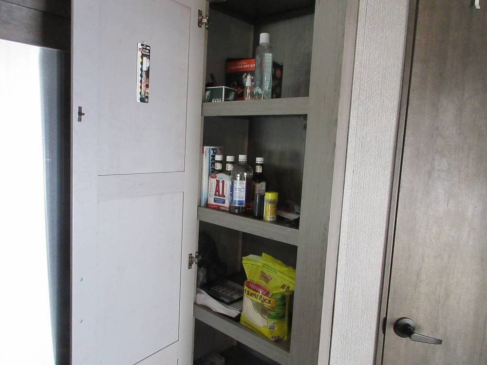 Also has a large refrigerator, convection microwave, a stove and an oven. The large pantry is big enough to store everyone's favorite snacks. And a half bath for family & friends.