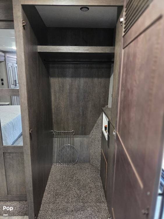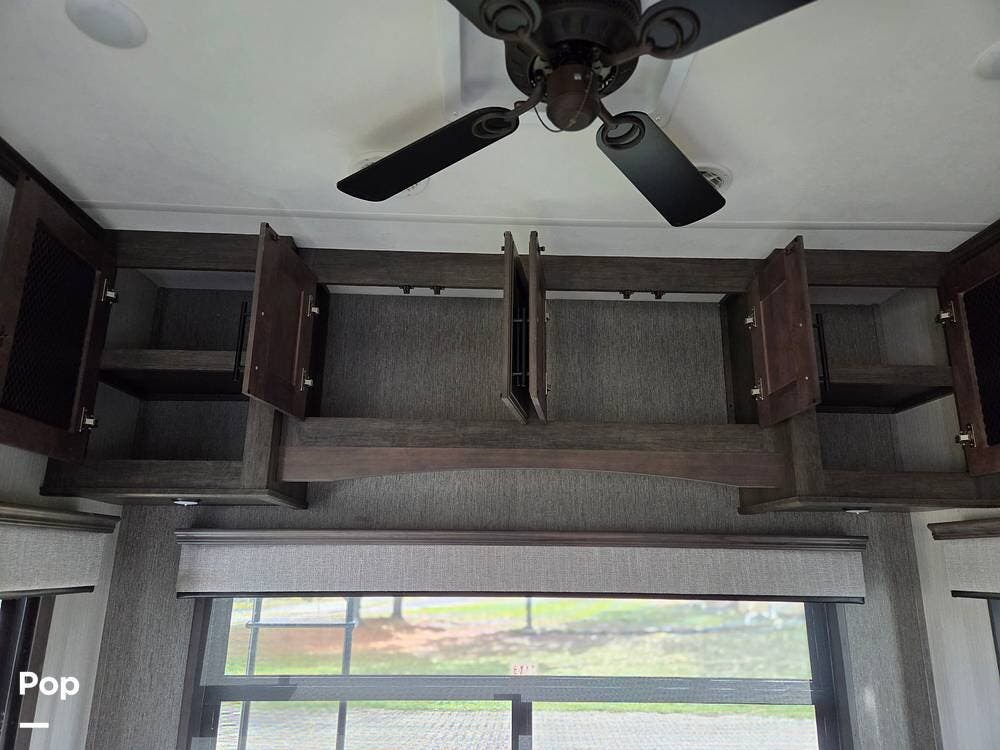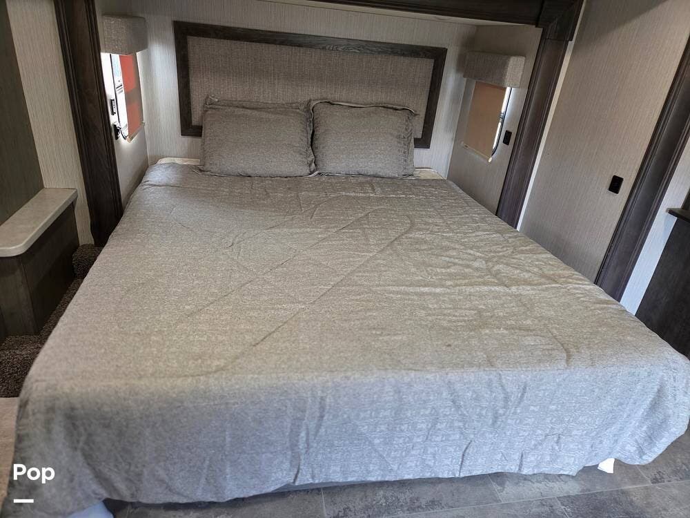 This 2021 Bighorn BH 3375SS fifth wheel has a well-thought-out 4-slide layout. Rear Living and Front Master allow for more privacy. This unit is really unusual, with the master bed slide within another slide, giving a true bed walk-around with lots of room.