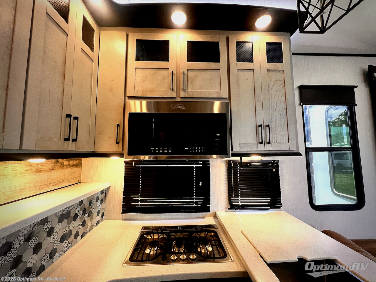 Each one of these Heartland Cyclone fifth wheel toy haulers offer luxury, toy hauler capacity, and a residential look and feel! You will find comfort and convenience from the inside out starting with the "Swift Space" pull out dresser work station and the culinary kitchen work space to the patent pending Stor-Mor exterior storage with three-sided access to the basement with 30% more capacity for your gear. The adjustable sunlight blackout shades make it easy for you to take an afternoon nap so you can re-charge and get back to riding the trails. These units are strong, lightweight, weather and temperature resistant, and easy to haul with the Azdel laminated sidewalls and composite substrate. An ultimate outdoor kitchen combination is just waiting for you to grill up your best burgers while taking in your beautiful scenery!