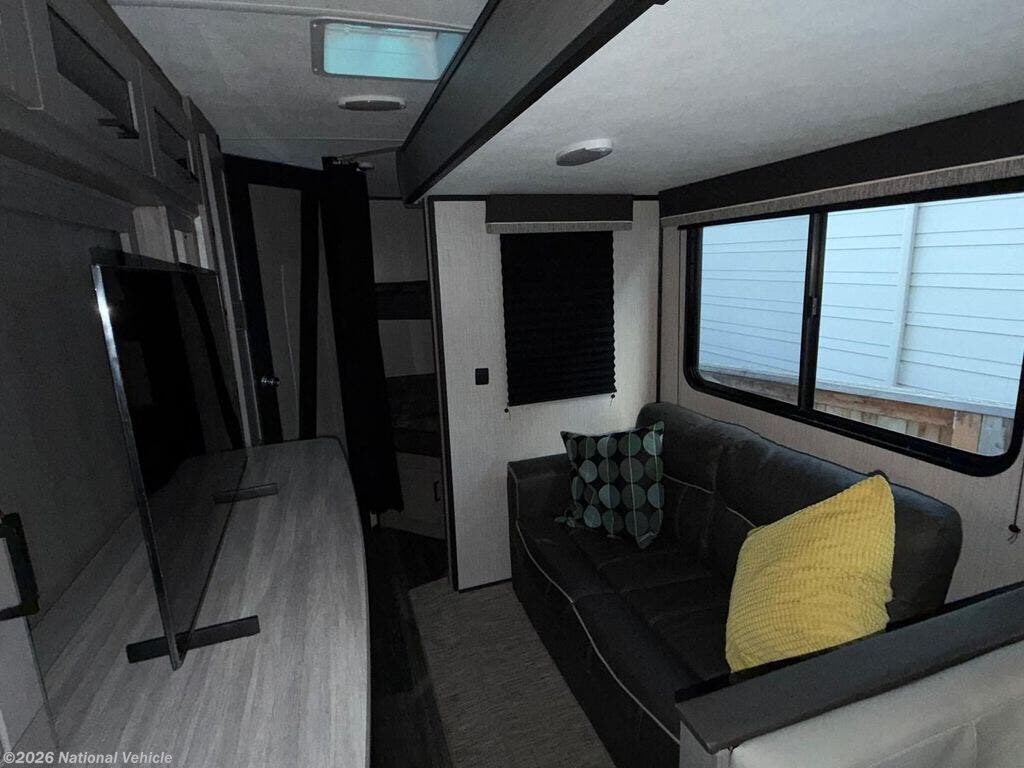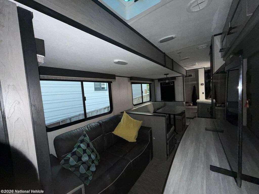 2021 Mallard idm312. Sleeps 10, double bunks in the rear, king size front private room, wrap around dinette, leather couch, and large pop out. The large pop out is the dinette and the couch. Open Floorplan makes the trailer feel so spacious. Full restroom with door access from the outside, handy when wanting to keep traffic down through the trailer. Auto awning, and slide out, also auto powered jack's and tongue jack. Outdoor kitchen makes for and enjoyable cooking experience. Interior 3 burner stove, gas oven, and microwave. Full sink, and a large 40" TV. Indoor/outdoor speakers.