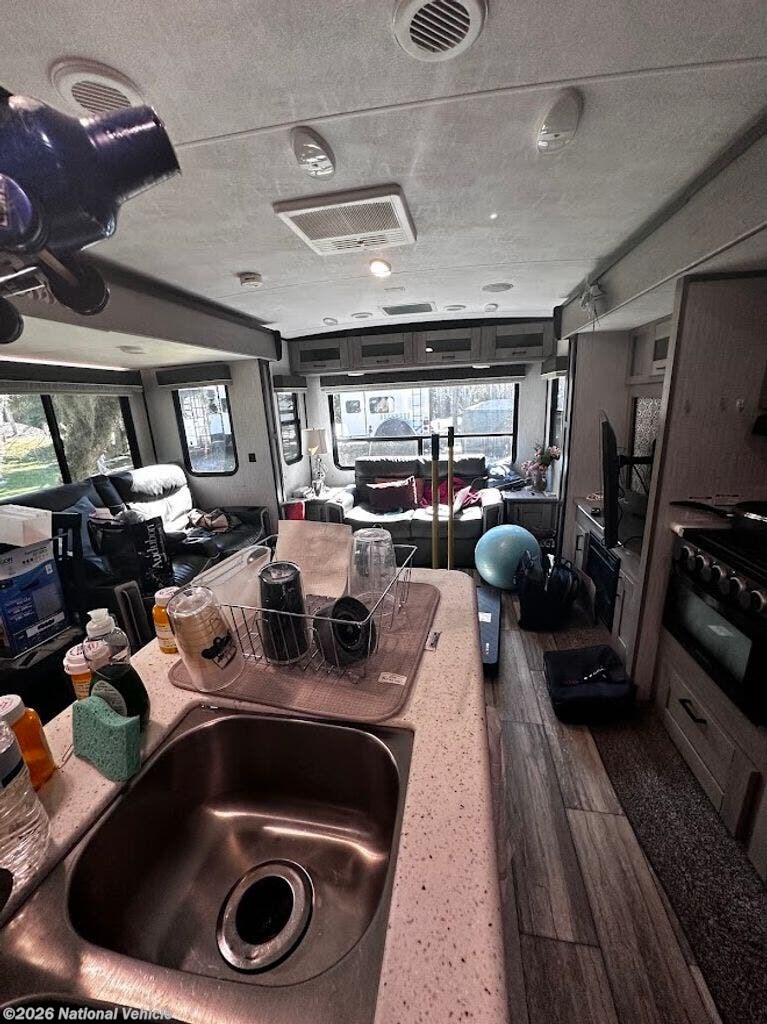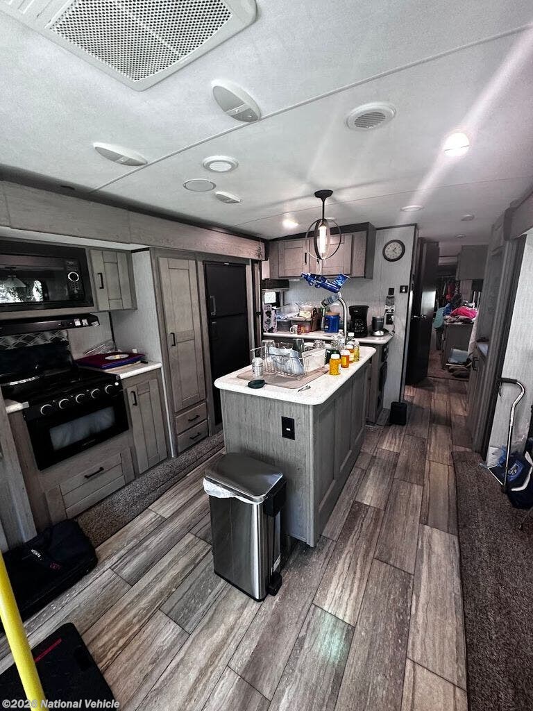 The 2021 Heartland North Trail 33RETS is a beautifully crafted 39' 8" travel trailer that brings comfort, style, and smart design to every adventure. With its thoughtful floorplan and high-quality construction, this North Trail model feels like a home away from home, offering spacious living areas enhanced by multiple slide-outs that open up the interior for maximum comfort. Inside, you?ll find a welcoming living space with plush seating and ample room for family and friends, a well-appointed kitchen equipped with modern appliances, generous counter space, and abundant storage for all your essentials. The private bedroom provides a peaceful retreat with a comfortable bed and plenty of closet space, while the full bathroom delivers residential comfort on the road. High-end finishes, LED lighting, and entertainment features throughout make every moment inside enjoyable, and thoughtful touches like pass-through storage, exterior lighting, and an integrated awning extend your living space outdoors. Whether you?re heading out for a weekend escape or an extended camping adventure, the 2021 Heartland North Trail 33RETS combines comfort, durability, and style to enhance every journey and create unforgettable memories.