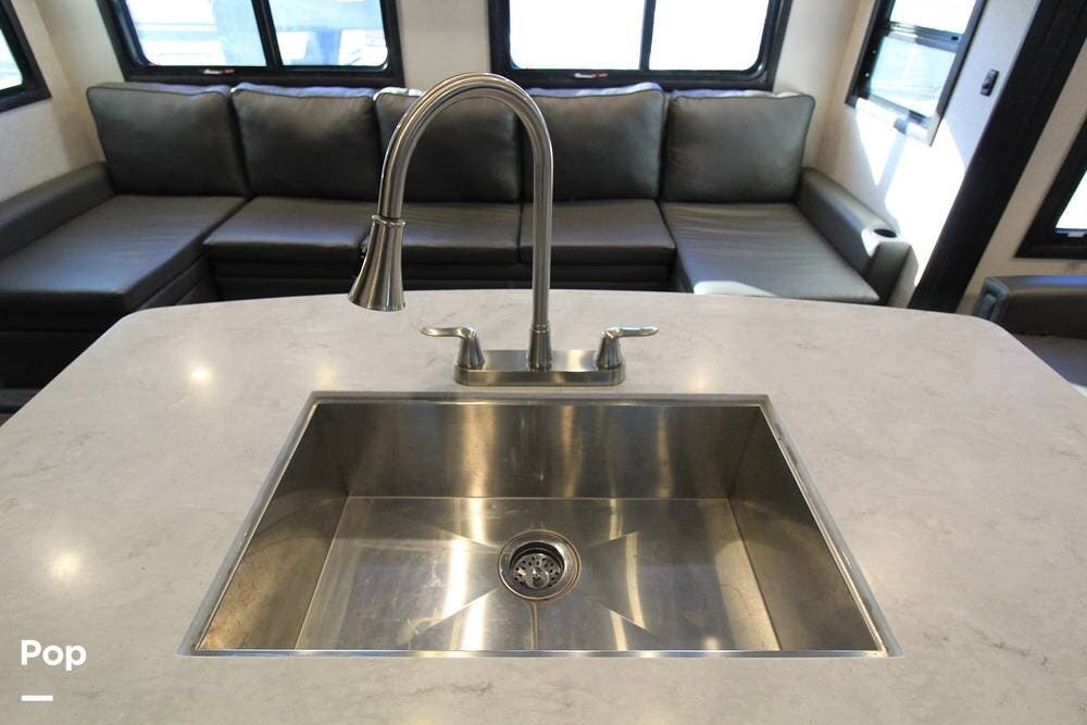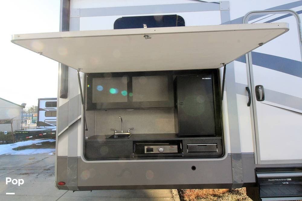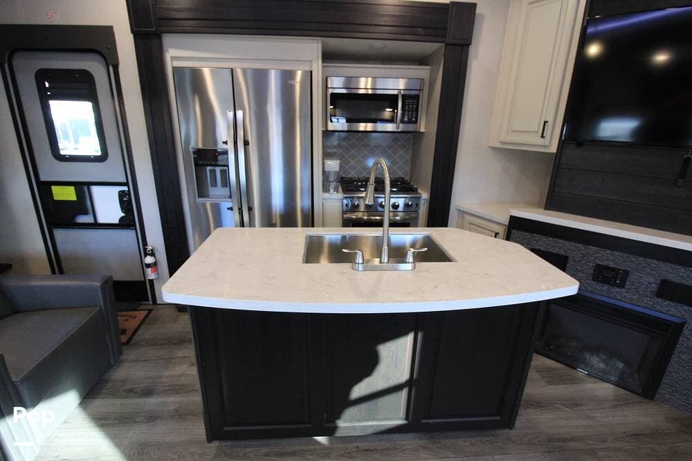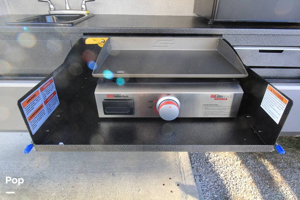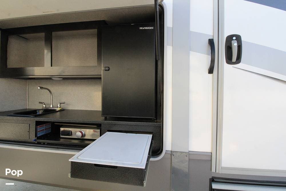 If you prefer the outdoor camp side, you're covered there as well, with twin patio awnings and a full outdoor kitchen with a griddle, mini fridge, and sink.