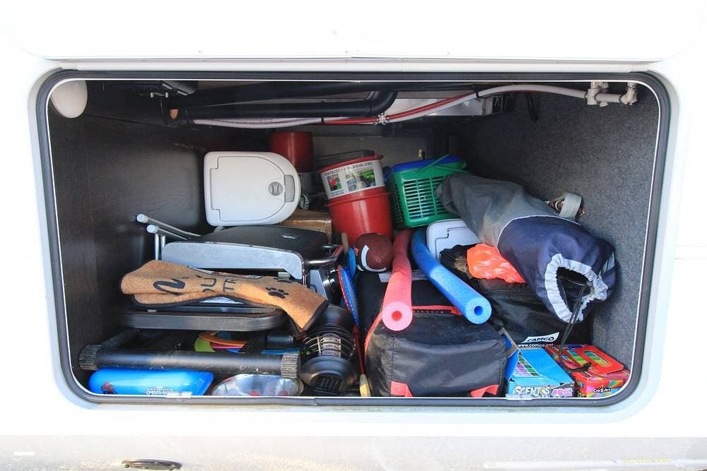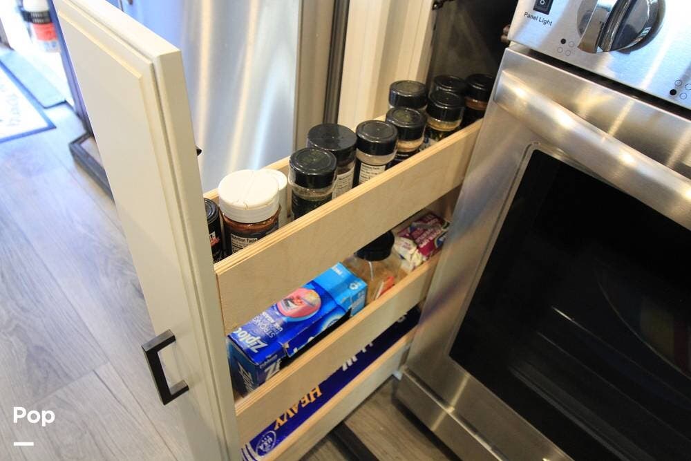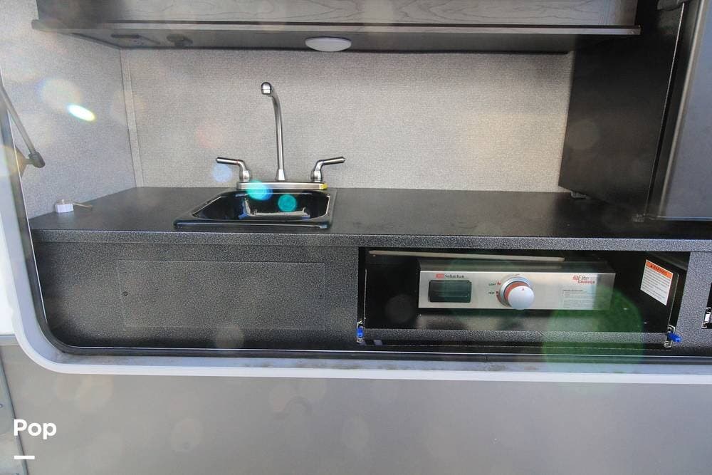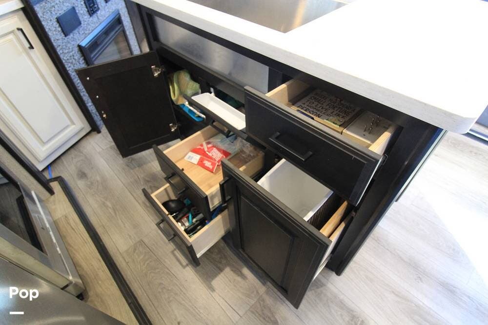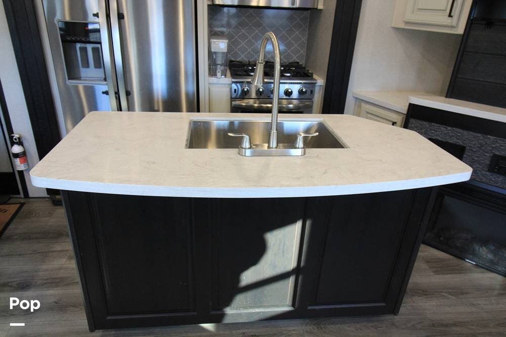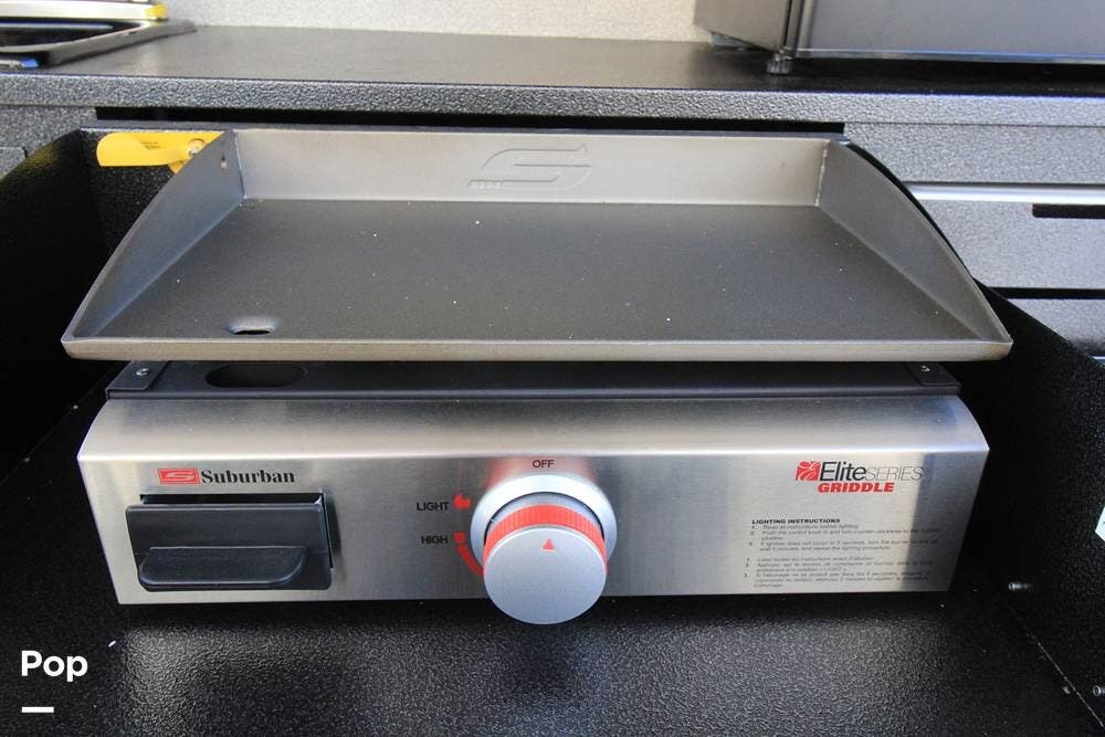 If you prefer the outdoor camp side, you're covered there as well, with twin patio awnings and a full outdoor kitchen with a griddle, mini fridge, and sink.