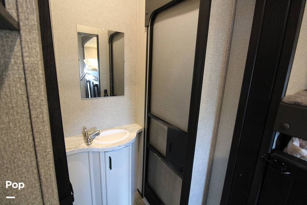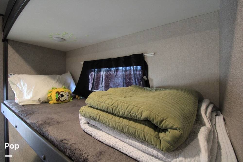 The bunkhouse and its half bath are at the rear of the trailer and can be closed off with a door instead of just a curtain!