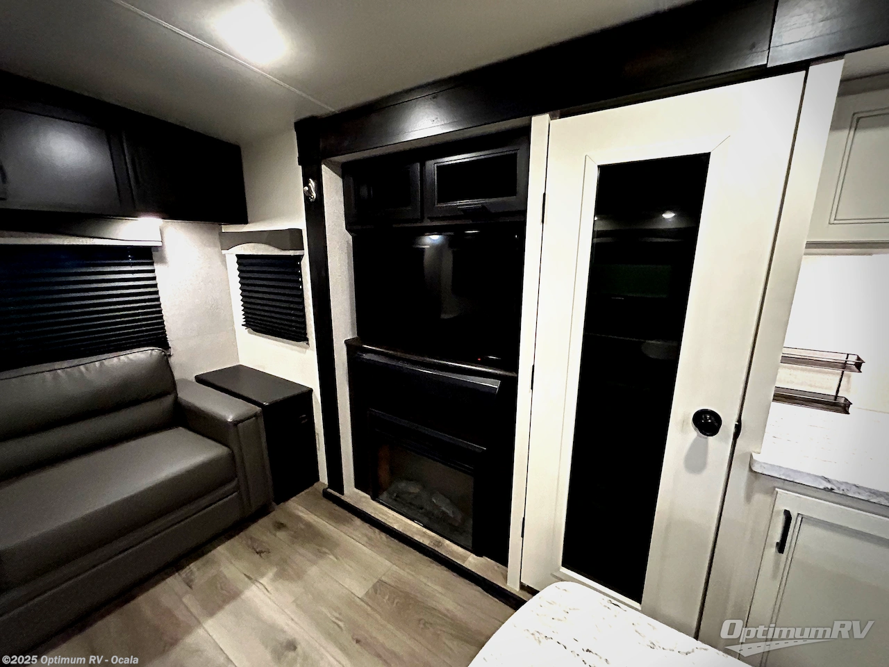 Are you interested in having your own private bedroom, a full bathroom, a fully equipped kitchen, and two power awnings? This Open Range Light travel trailer gives you all of that and more! Up in the bedroom, there is a laundry chute, two bedside closets, and two nightstands, and there is also an additional closet that has been prepped for a washer/dryer. The kitchen has great storage with its hutch, 8-cubic foot refrigerator, and full-size pantry, and the living area provides you with comfortable seating on the tri-fold sofa, theater seating, and booth dinette. You can even sit back, relax, and enjoy a show on the 39" LED HDTV with fireplace beneath.