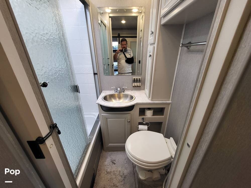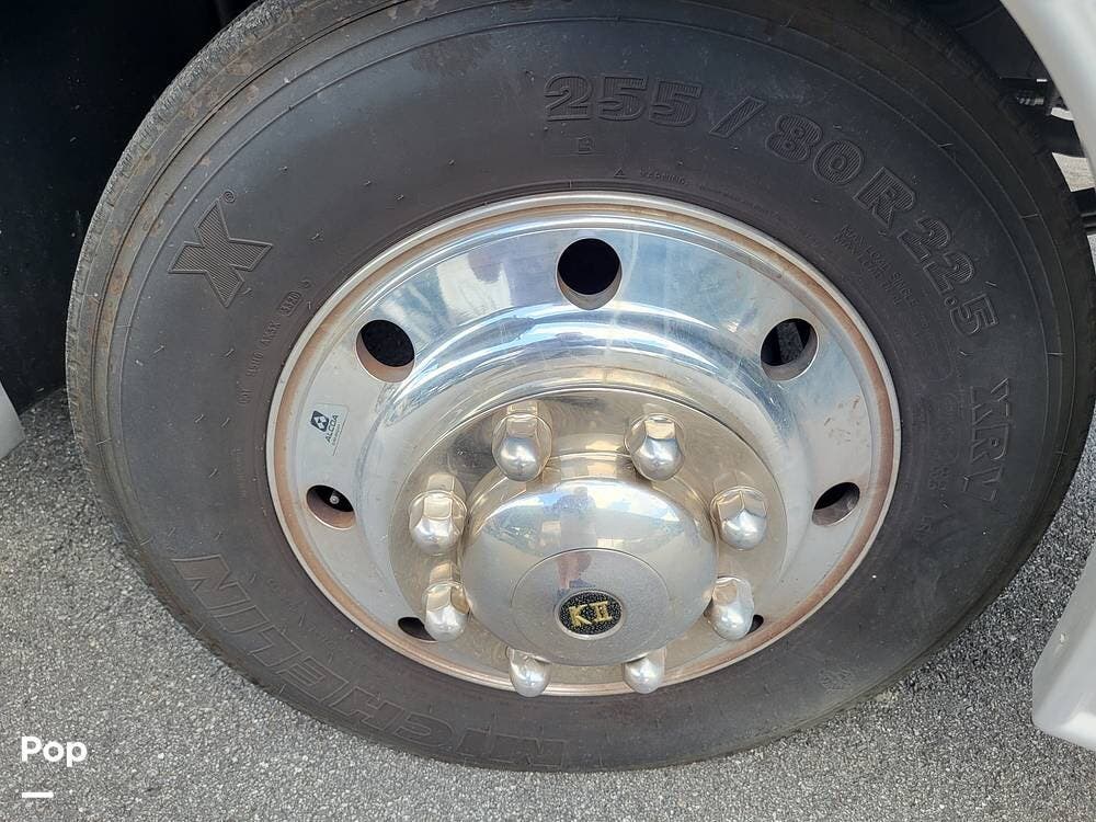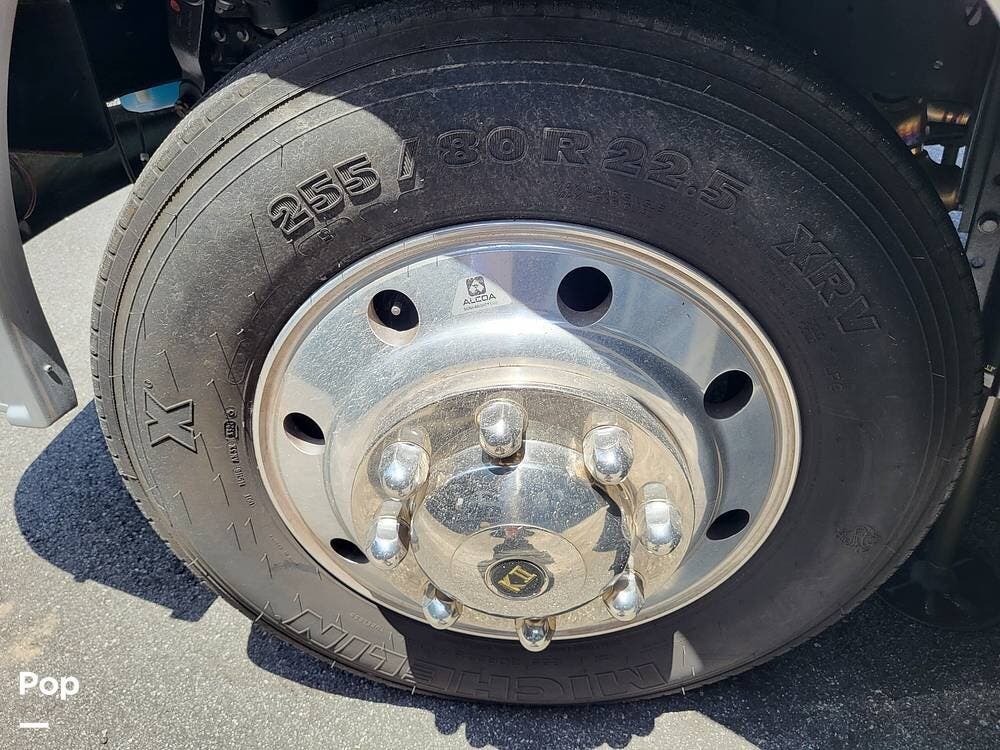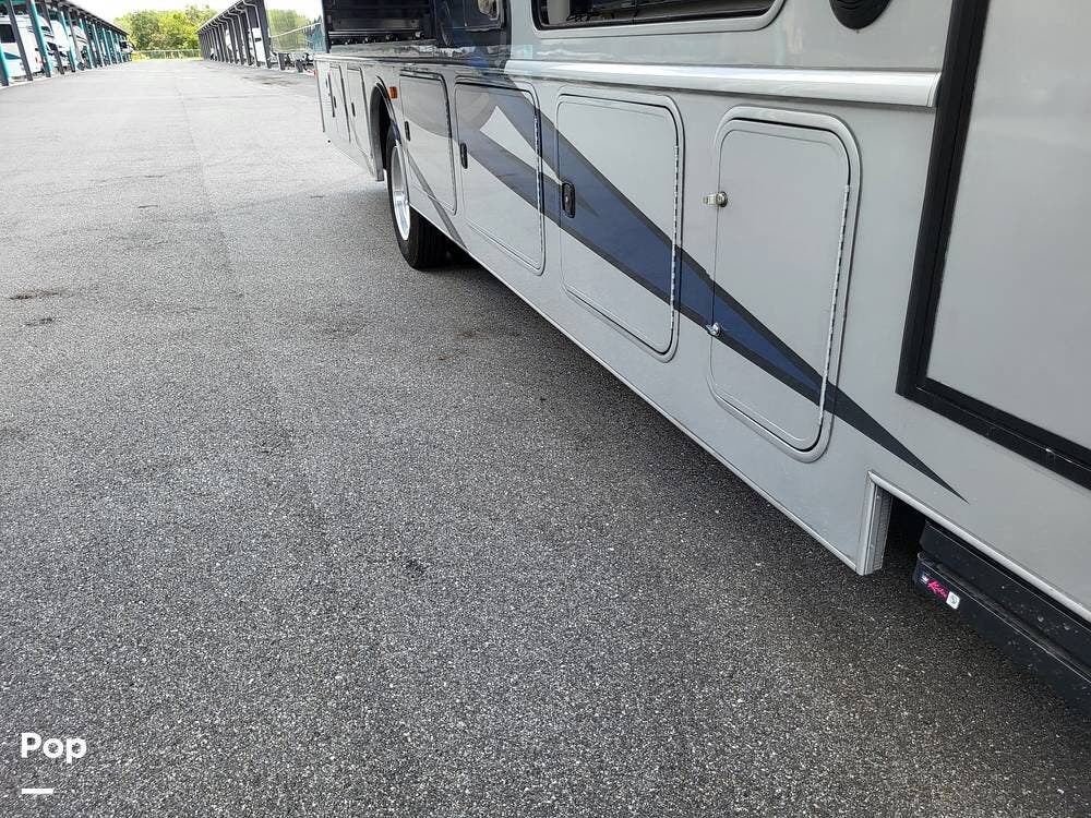 Dressed in full-body paint that turns heads wherever it goes, this coach rides on 22.5-inch Alcoa aluminum wheels and is powered by the strong 7.3L V8, with less than 7,000 miles on the odometer. A 7.0kW GenSet provides reliable power when you're off-grid, while hydraulic levelers, an inverter, rear and side-view cameras, and a power sunshade ensure convenience and confidence every mile of the journey.