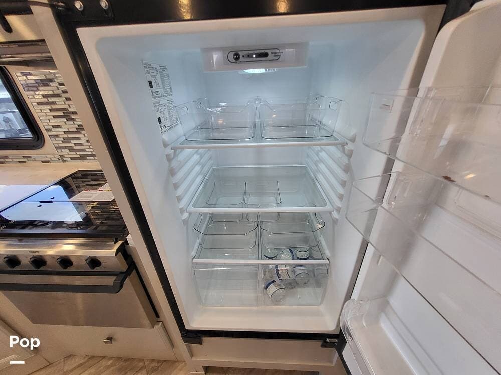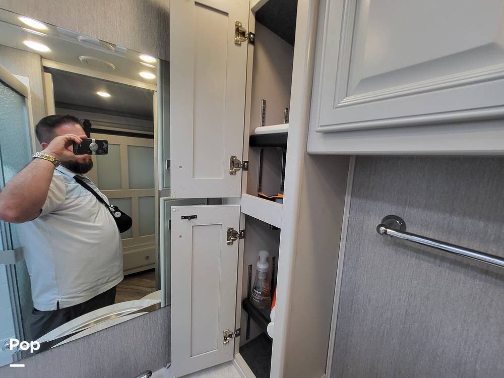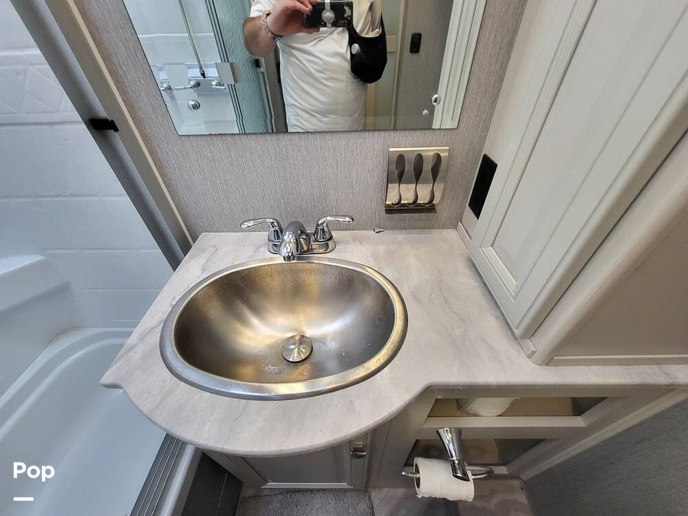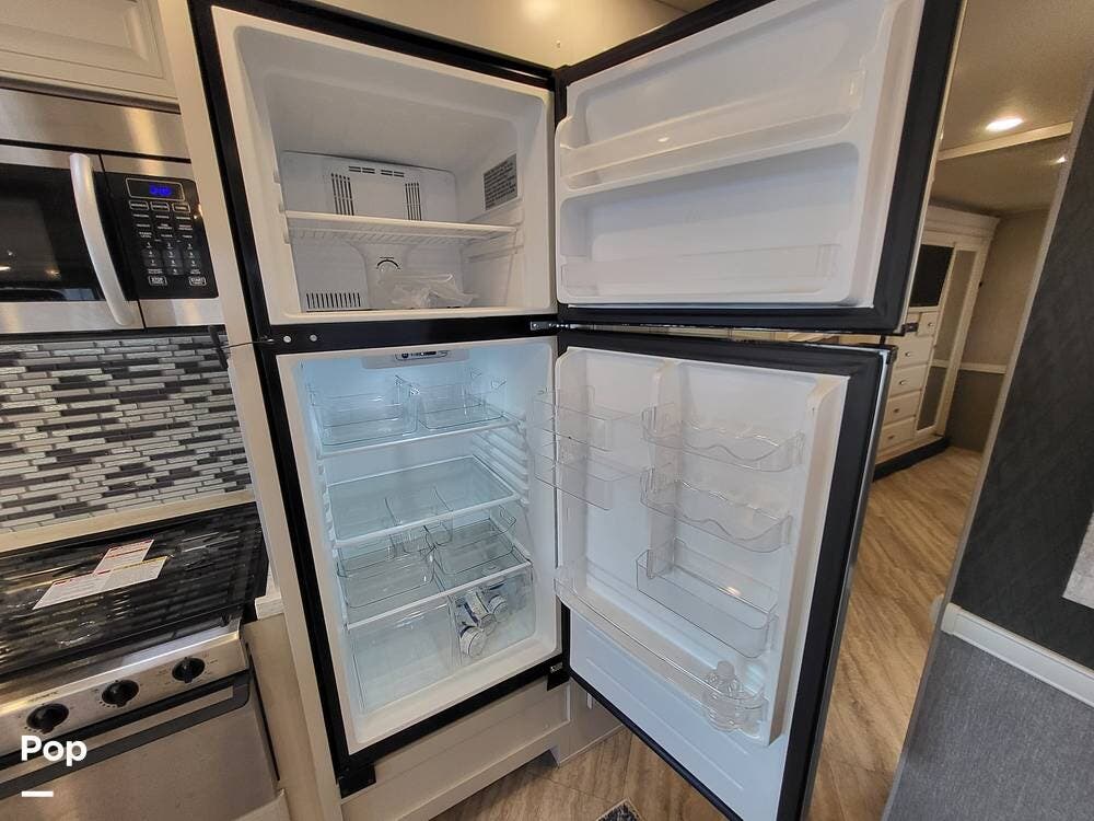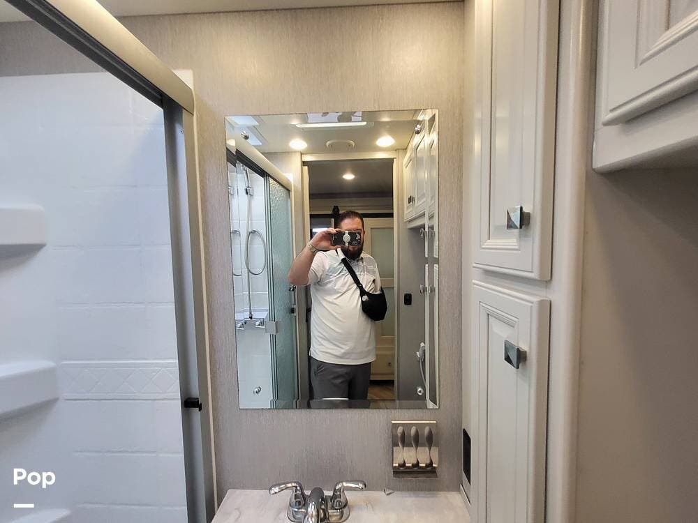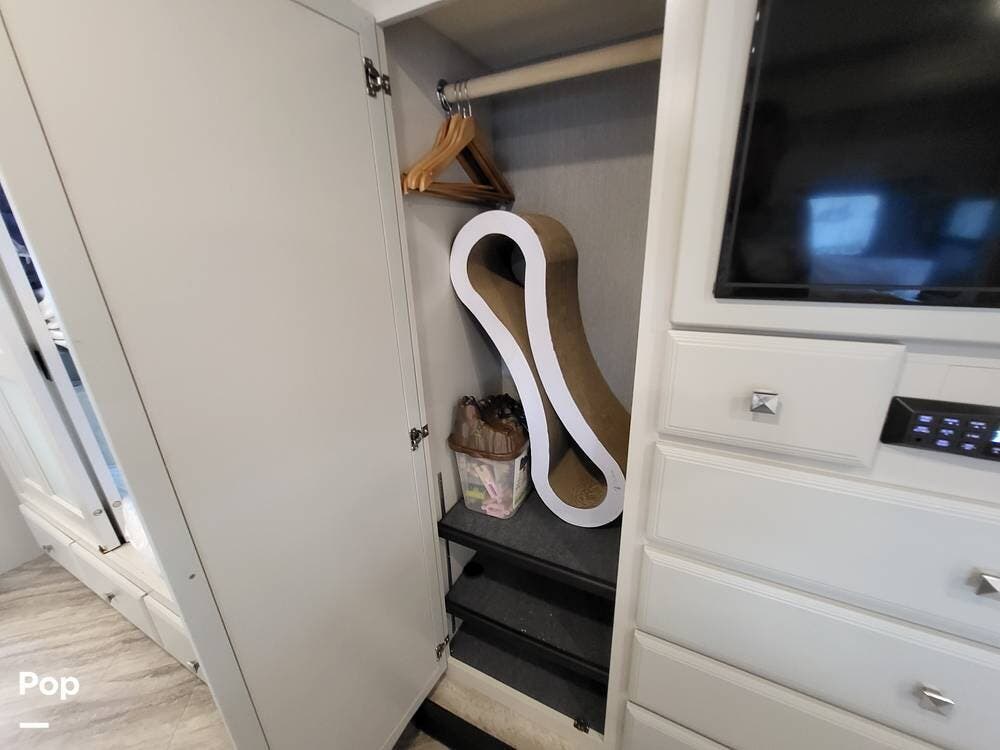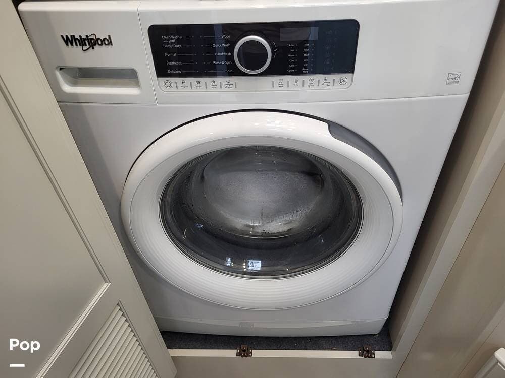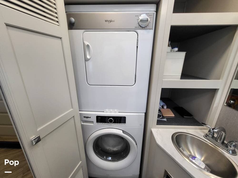 One of the standout features of the Invicta 36DB is its two full bathrooms, each equipped with a shower, sink, and toilet. The master bath elevates comfort further with a stacked washer and dryer, adding the convenience of home on the road.