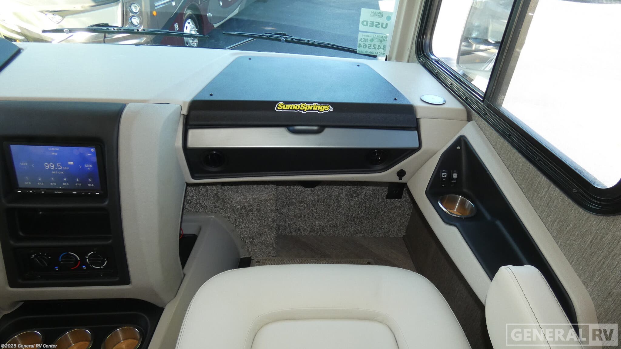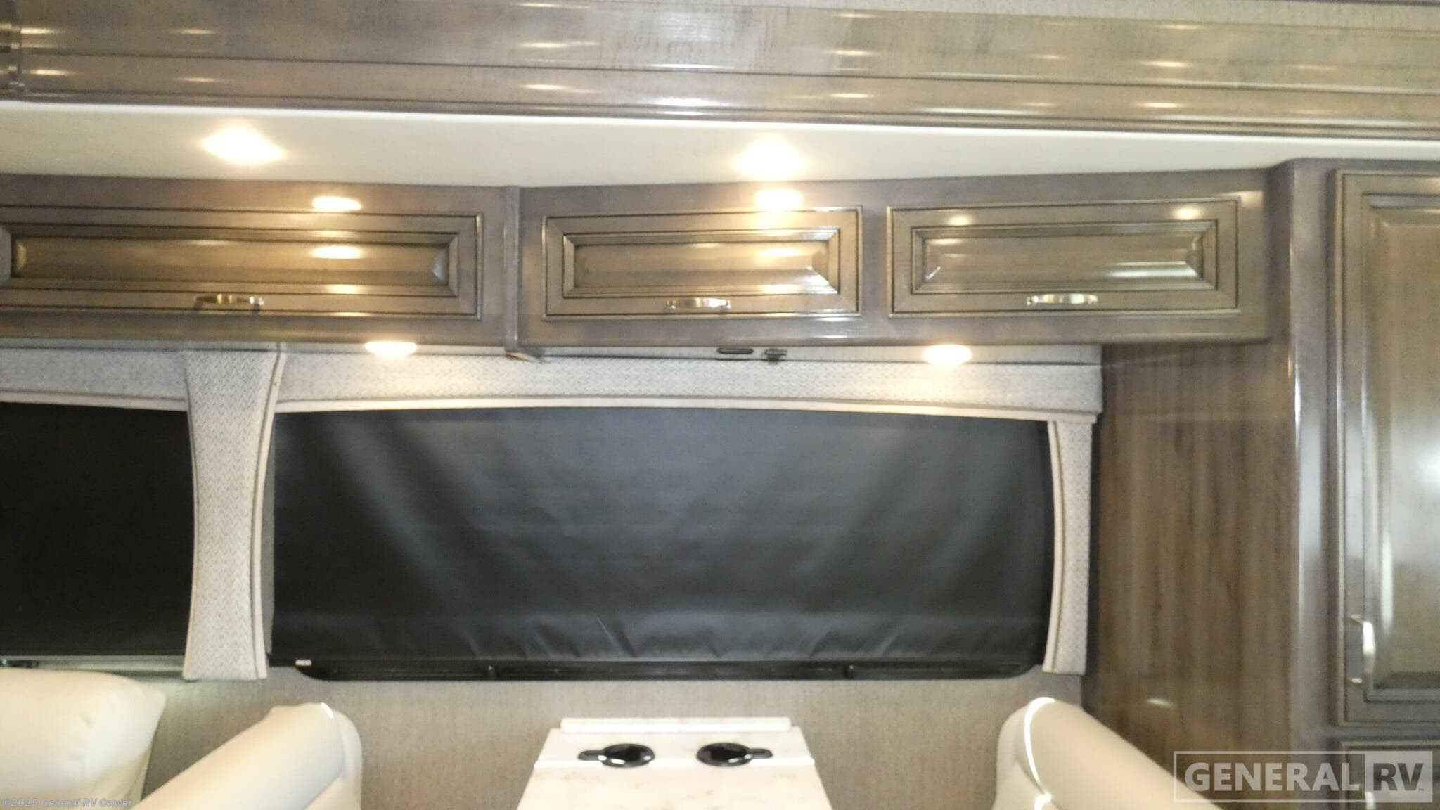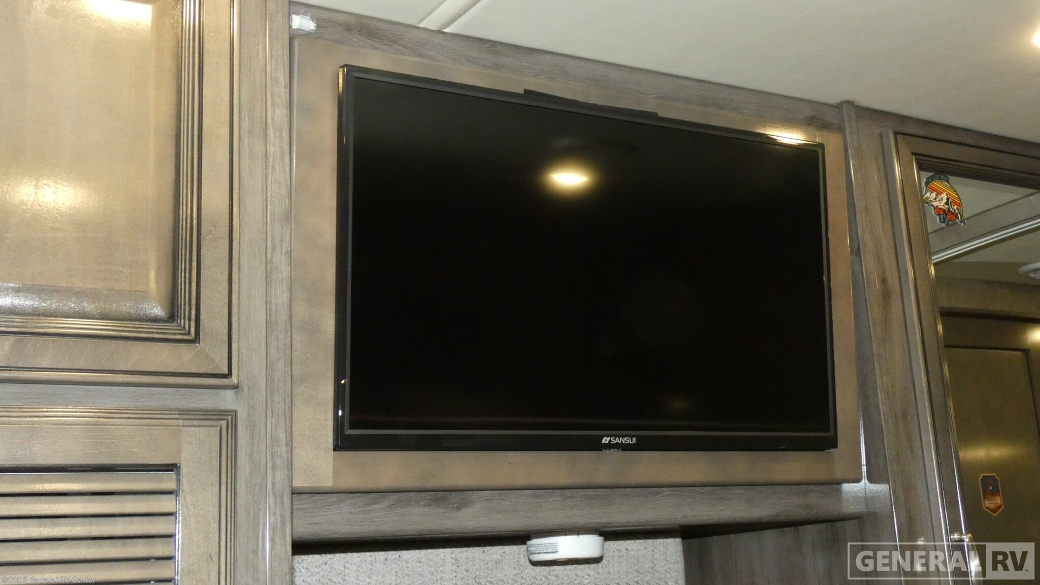 Holiday Rambler Vacationer Class A gas motorhome 35K highlights: Bath and a Half Driver/Passenger Pedestal Table Serenity Series King Bed Electric Fireplace CPAP Storage Traveling with family or a large group of friend is easy in this motorhome that includes a bath and a half, plus sleeping space for up to four people each night. Once you arrive at your destination, put out the electric awning with LED lighting while the kids stretch their legs around the campground. You all can enjoy lunch outside while the big game plays on the exterior 40" LED TV. Inside, you'll find seating space on the theater seats, the booth dinette, and the swivel captain's seats, and the 40" LED TV and electric fireplace will be perfect if the weather isn't cooperating outside. This model includes plenty of storage space for all your valuables, including dual bedroom wardrobes, a pantry for dry goods, plus an exterior pass-through for your larger camp gear! Make each trip memorable in a Vacationer Class A gas motorhome by Holiday Rambler. The new 7.3L Triton V8, 350 HP engine features 468 lb./ft. torque with 6-speed Torq-Shift automatic transmission with overdrive and tow/haul mode so you can conquer any excursion. Outside, you'll find frameless dual pane windows, a pass-through storage for all of your belongings, plus an eye-catching premier full body paint. Each model is constructed with an aerodynamic front cap with hood and automotive headlights, a powder coated steel frame chassis, and aluminum welded interlocking frames for a durable motorhome made to last. Inside, the MultiPlex wiring control system with mobile app will allow you to manage your units functions with ease, and the dual 15,000 BTU A/C units are sure to keep you comfortable during those hot summer months. You will appreciate adjustable shelves throughout the kitchen for all of your necessities, C-Pap machine prep in the bedroom for your convenience, 120V/USB ports to charge your gadgets, plus many more interior amenities!