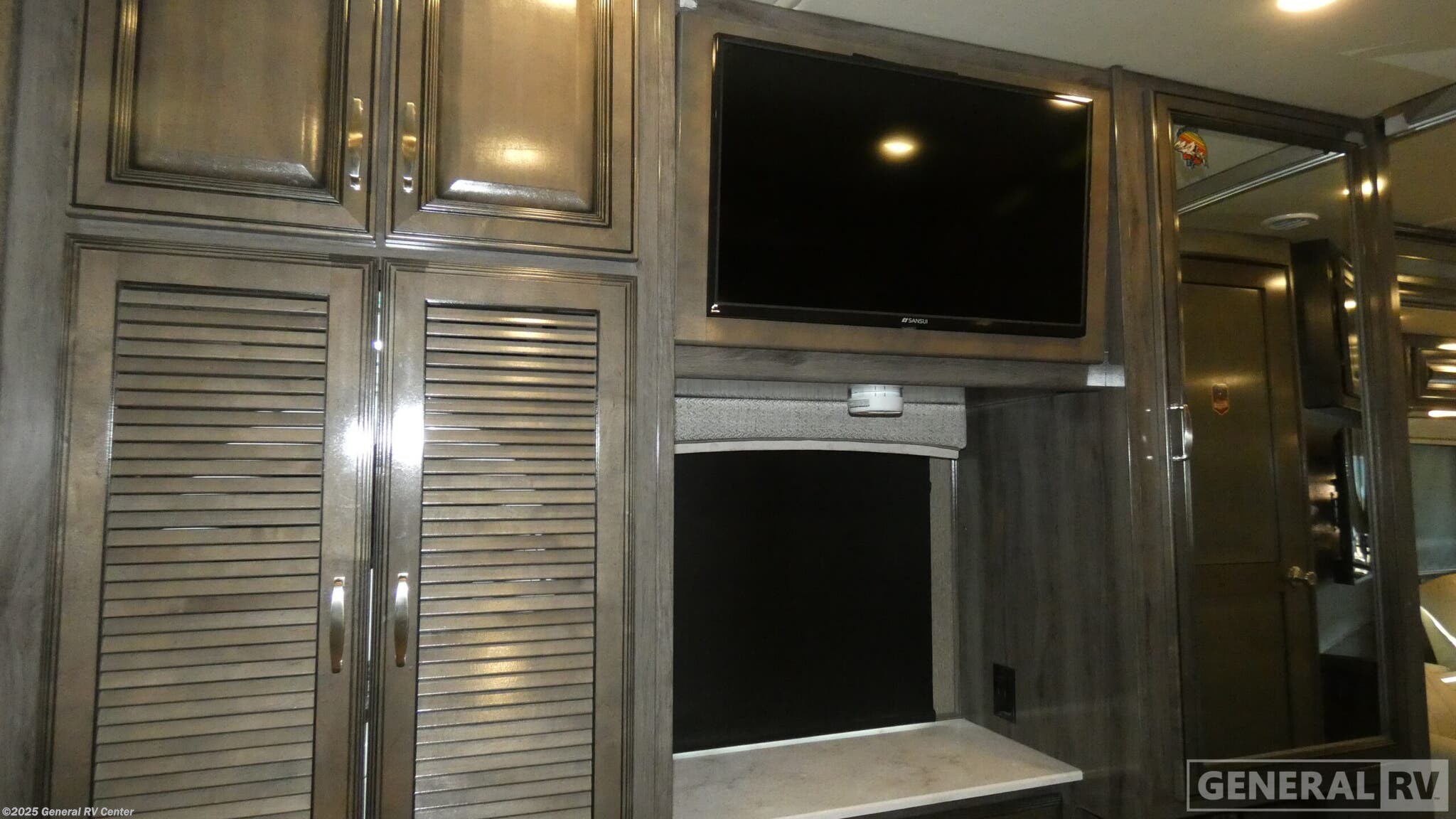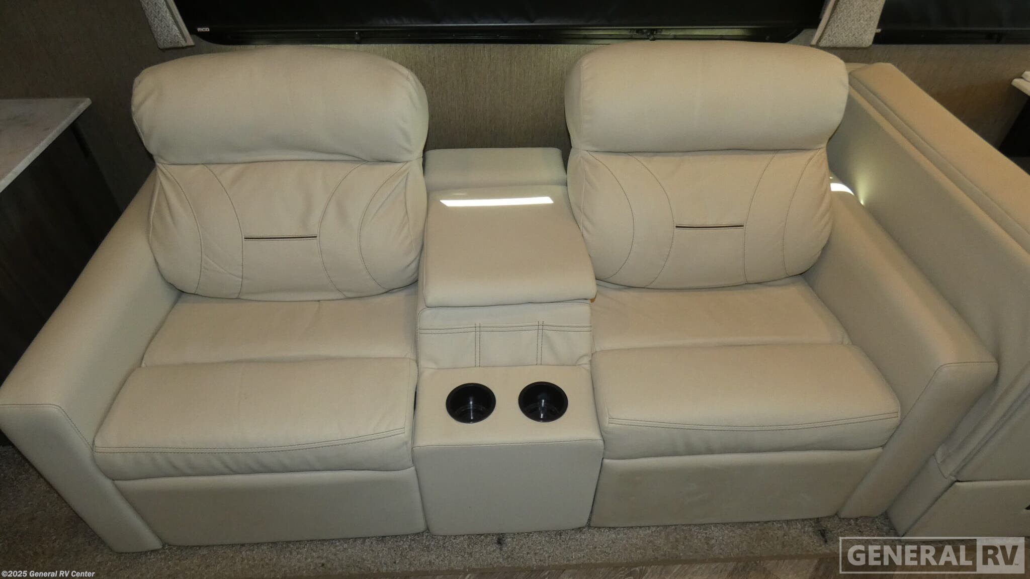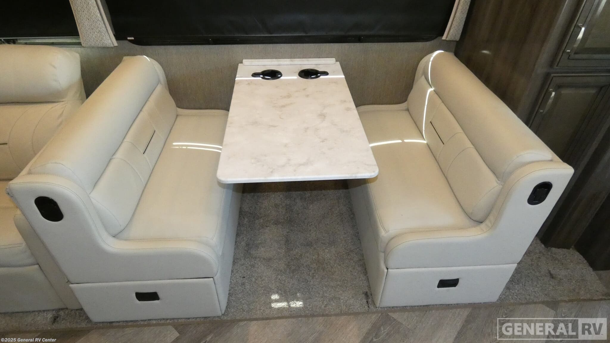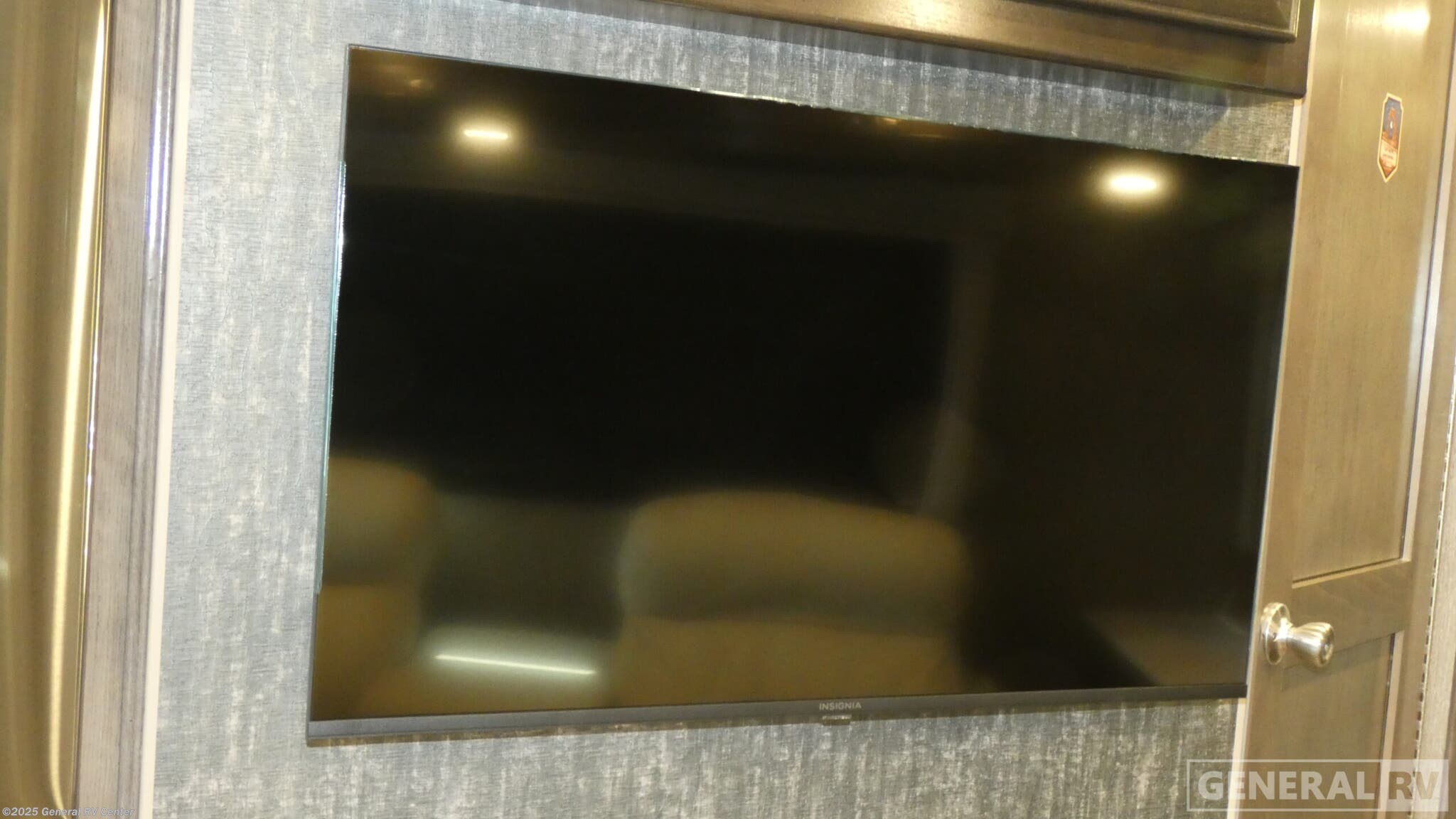Holiday Rambler Vacationer Class A gas motorhome 35K highlights: Bath and a Half Driver/Passenger Pedestal Table Serenity Series King Bed Electric Fireplace CPAP Storage Traveling with family or a large group of friend is easy in this motorhome that includes a bath and a half, plus sleeping space for up to four people each night. Once you arrive at your destination, put out the electric awning with LED lighting while the kids stretch their legs around the campground. You all can enjoy lunch outside while the big game plays on the exterior 40" LED TV. Inside, you'll find seating space on the theater seats, the booth dinette, and the swivel captain's seats, and the 40" LED TV and electric fireplace will be perfect if the weather isn't cooperating outside. This model includes plenty of storage space for all your valuables, including dual bedroom wardrobes, a pantry for dry goods, plus an exterior pass-through for your larger camp gear! Make each trip memorable in a Vacationer Class A gas motorhome by Holiday Rambler. The new 7.3L Triton V8, 350 HP engine features 468 lb./ft. torque with 6-speed Torq-Shift automatic transmission with overdrive and tow/haul mode so you can conquer any excursion. Outside, you'll find frameless dual pane windows, a pass-through storage for all of your belongings, plus an eye-catching premier full body paint. Each model is constructed with an aerodynamic front cap with hood and automotive headlights, a powder coated steel frame chassis, and aluminum welded interlocking frames for a durable motorhome made to last. Inside, the MultiPlex wiring control system with mobile app will allow you to manage your units functions with ease, and the dual 15,000 BTU A/C units are sure to keep you comfortable during those hot summer months. You will appreciate adjustable shelves throughout the kitchen for all of your necessities, C-Pap machine prep in the bedroom for your convenience, 120V/USB ports to charge your gadgets, plus many more interior amenities!