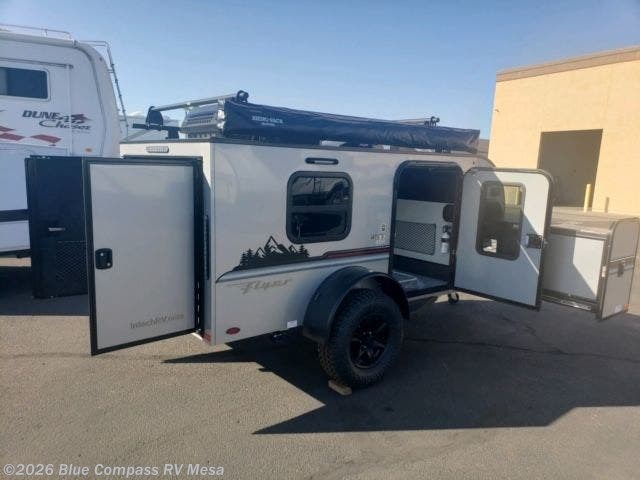 Tom’s Camperland 480-894-1267 Thanks for visiting Tom’s Camperland. Check out the Pursue from Intech! RUGGED DESIGN Explore all the corners of the world. Every Flyer is built utilizing an All-Aluminum, Fully Welded Cage Frame, making them strong enough to handle conditions when you find yourself off the paved trail. Flyers can go where traditional RVs simply cannot. SIMPLE & VERSATILE Flyers are designed to be the perfect foundation for mods and add-ons. Let your imagination run wild with ideas to make the Flyer fit your every need and lifestyle. INNOVATIVE KITCHEN The innovative slideout kitchen sets up in just seconds. The two-burner stove utilizes a convenient 1lb disposable LP bottle and the large storage cabinet is perfect for storing all your cooking essentials. A removable table creates a unique L-Base kitchen with plenty of prep area and a 120V recept nearby. Keep your food and beverages cold without the inconvenience of ice with the 50 quart 12V/120V refrigerator. A 12V LED light conveniently lights the entire kitchen area so you can cook day or night! OFF-ROAD TIRES Larger Off-Road Tires replace the standard street tires and give the Flyer an aggressive overall appearance. FULLY WELDED CAGE & FRAME CONSTRUCTION Every inTech RV is built utilizing an all-aluminum, all-tube, fully welded cage frame. Aluminum is not only lightweight, but will also not rust and our all-tube construction means we are using the strongest, longest lasting materials available. VERSATILE INTERIOR inTech Flyers are designed for serious camping by people who camp! We use the products we manufacture, so we have a better understanding of how our customer use their campers. Our interiors are roomy, extremely functional and built for rugged use. Shown with Exterior Kitchen Option that replaces the doors with a storage net. FRONT TONGUE BOX Our heavy-duty Front Tongue Box is the perfect solution for storing the extra gear that you want easily accessible and out of the camper. 2? RECEIVER Every Flyer we manufacture has a 2” Receiver rated at 100lbs, so bring your bikes along on your next big adventure!