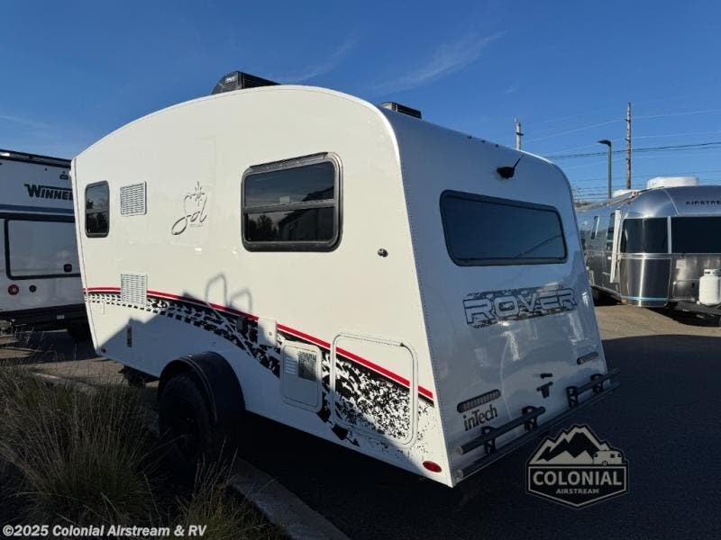 With any Sol travel trailer by inTech RV you will find strong, durable construction consisting of lightweight aluminum that is easier to tow and resists rust, water, and dents. The Tilt-Forward Design creates more space inside so you can stretch out, and the panoramic windshield gives a great view of the mountains, ocean, or forest! The elegant interior features tinted windows with shades, Infinity woven flooring, and a stainless steel cooktop and microwave. You will stay comfortable year around since these models include a 13.5 BTU A/C and a 16K BTU furnace. The optional Rover Package can also be added that features rugged decals, off-road tires with a 3" lift, two different color choices to choose from, plus more!