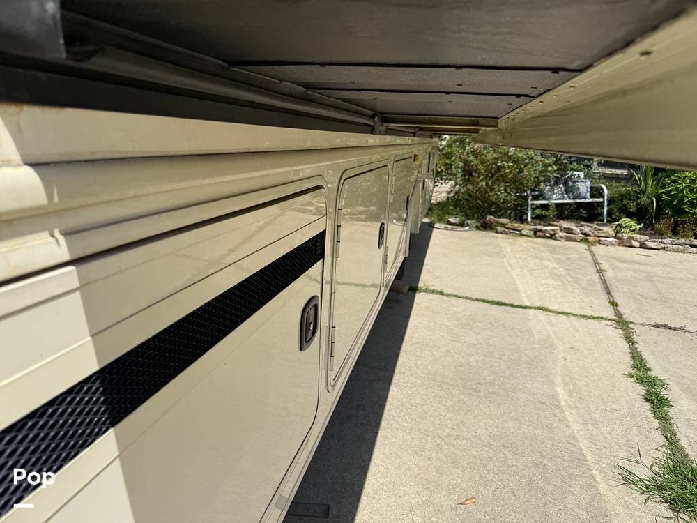 Outside, a large power awning is the perfect place to escape the sun and enjoy the outdoor TV.