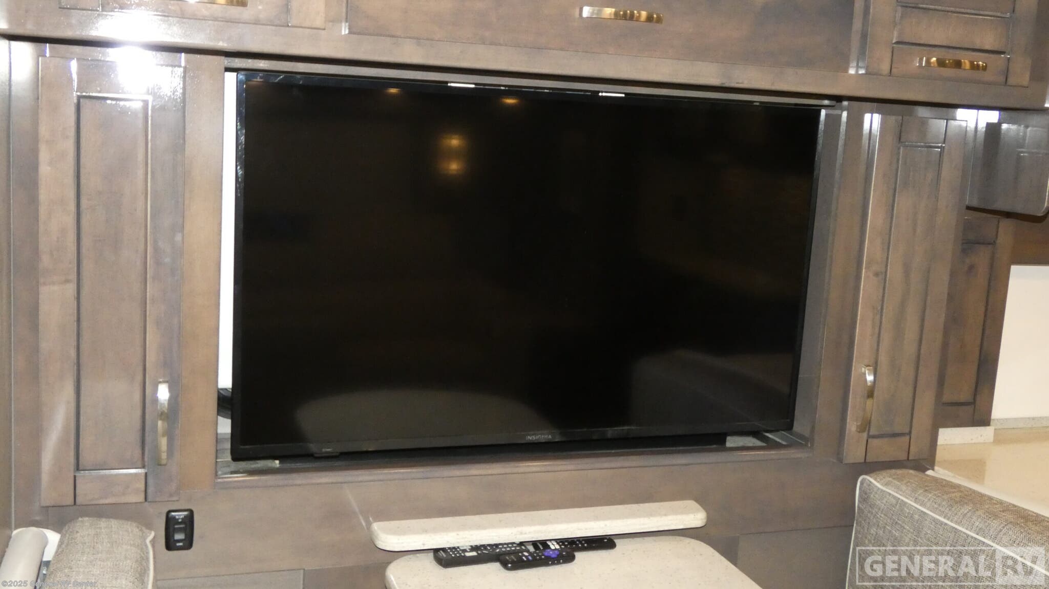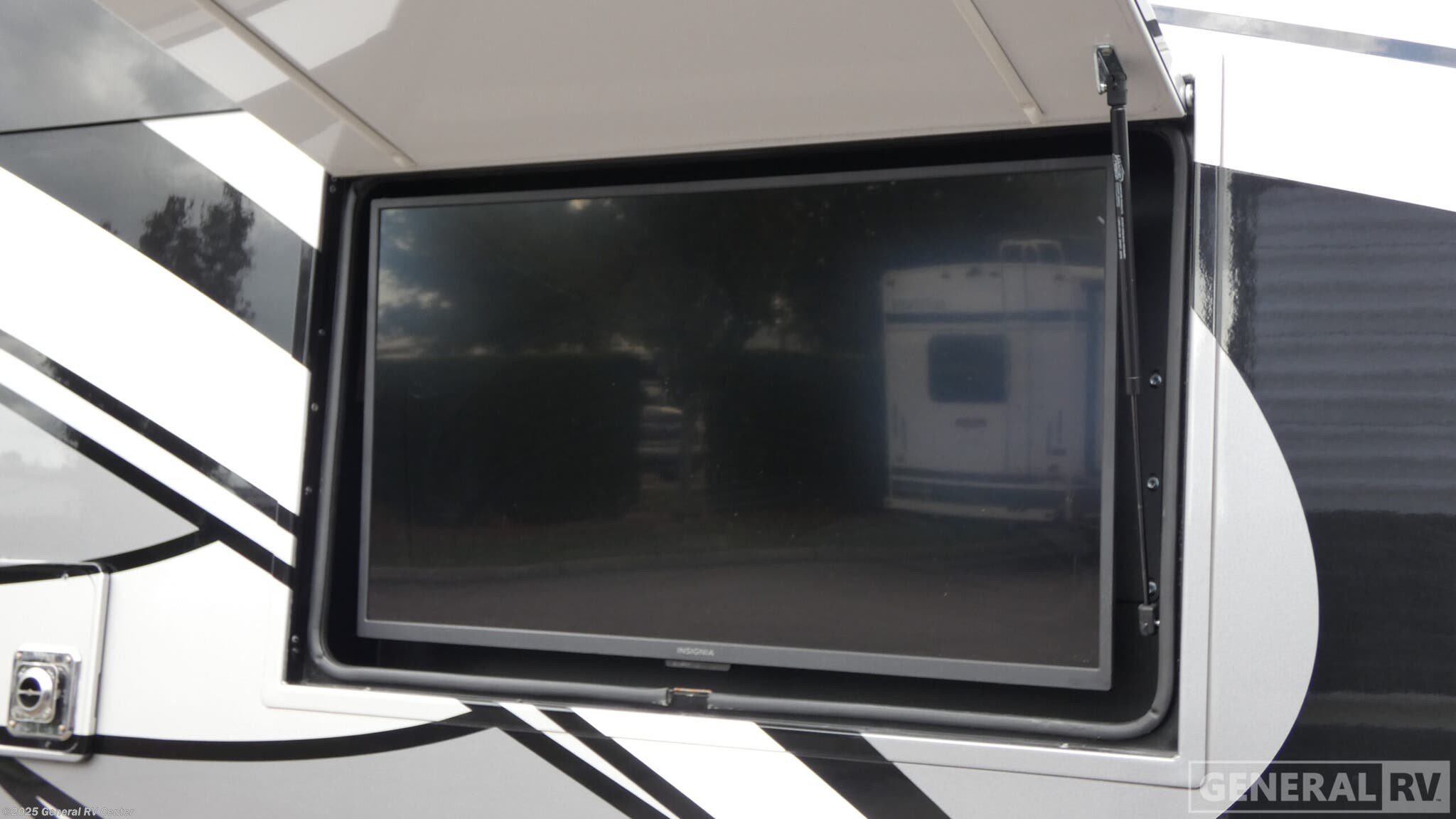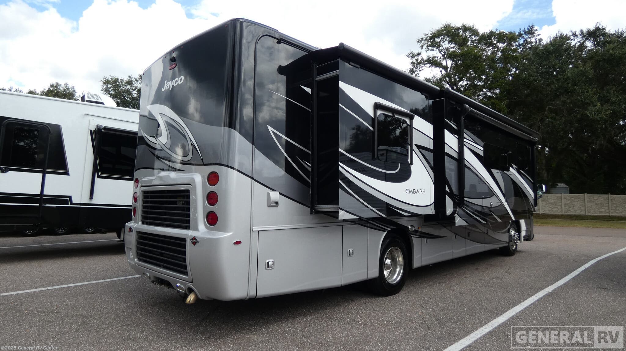 Jayco Embark Class A diesel motorhome 37K highlights: Fireplace Spartan Chassis Walk Around King Bed with Power Lift 21 Cu. Ft. Residential Refrigerator 50" TV with Power Lift Four Slides Embark on a trip of a lifetime with this motorhome! The rear private bedroom will have you feeling right at home with the king bed, the wardrobes on either side of the 32" TV, and the full wall wardrobe with an area with washer and dryer. The full bathroom features plenty of counter space for you to get ready and a 36" x 36" shower with a skylight for added natural lighting as you take a hot shower. The theater seating welcomes you to relax in true comfort as you enjoy the fireplace next to it and the 50" TV on a lift across from the sofa and above the booth dinette. There is even a hutch to store your dishes and an outside entertainment center for you to watch the big game outdoors! With any Embark Class A diesel motorhome by Jayco, you will enjoy precision handling and stability for a smooth ride, thanks to JRide Premium, and the automatic leveling jacks makes setting up a breeze. Constructed with X-Bridge bracing welded into the chassis frame, vacuum-bonded floors and sidewalls, plus a steel-reinforced front cap and windshield frame, you can be sure you're getting a durable home-on-wheels that will last for years. These models include an Xite XSG3 infotainment system with navigation, Bluetooth, Sirius XM and AM/FM tuner, an Xite 360 degree camera system, dual USB ports, plus many more technology features to get you to your destination safely and on time. Inside, you'll love the hand-laid polished porcelain floor tiles, the Flexsteel furniture, the solid surface countertops, and the central vacuum system to make cleaning up easier than ever!