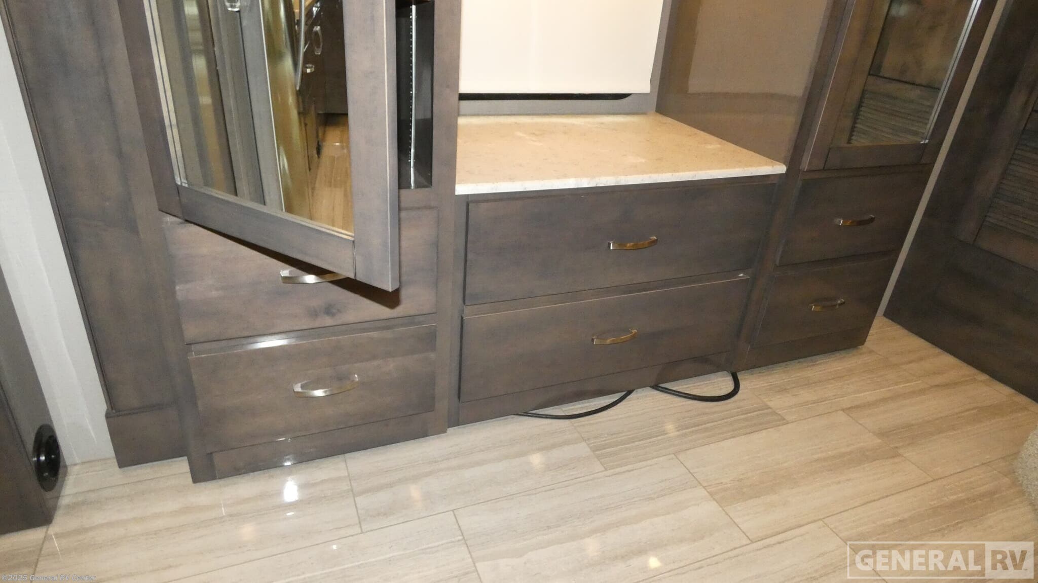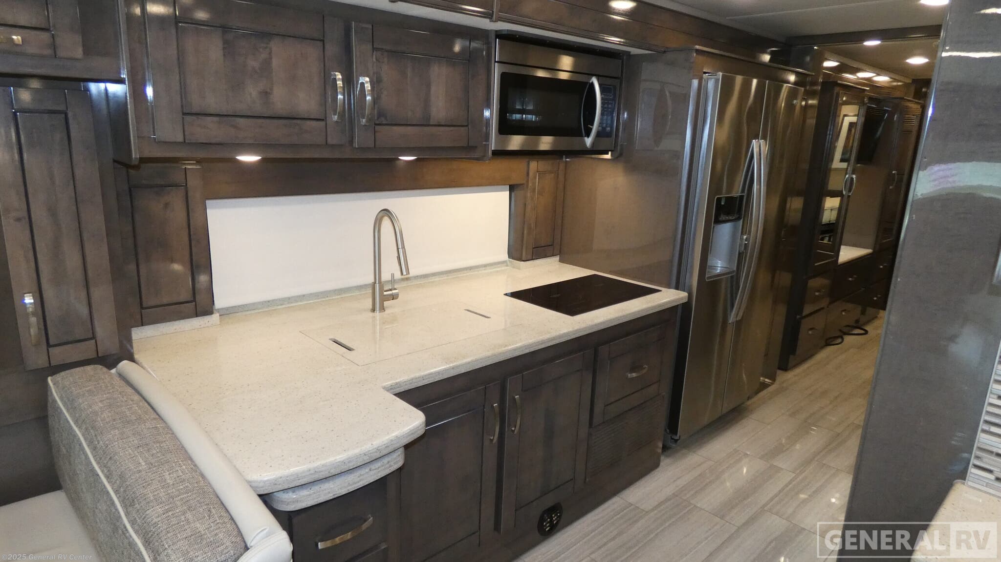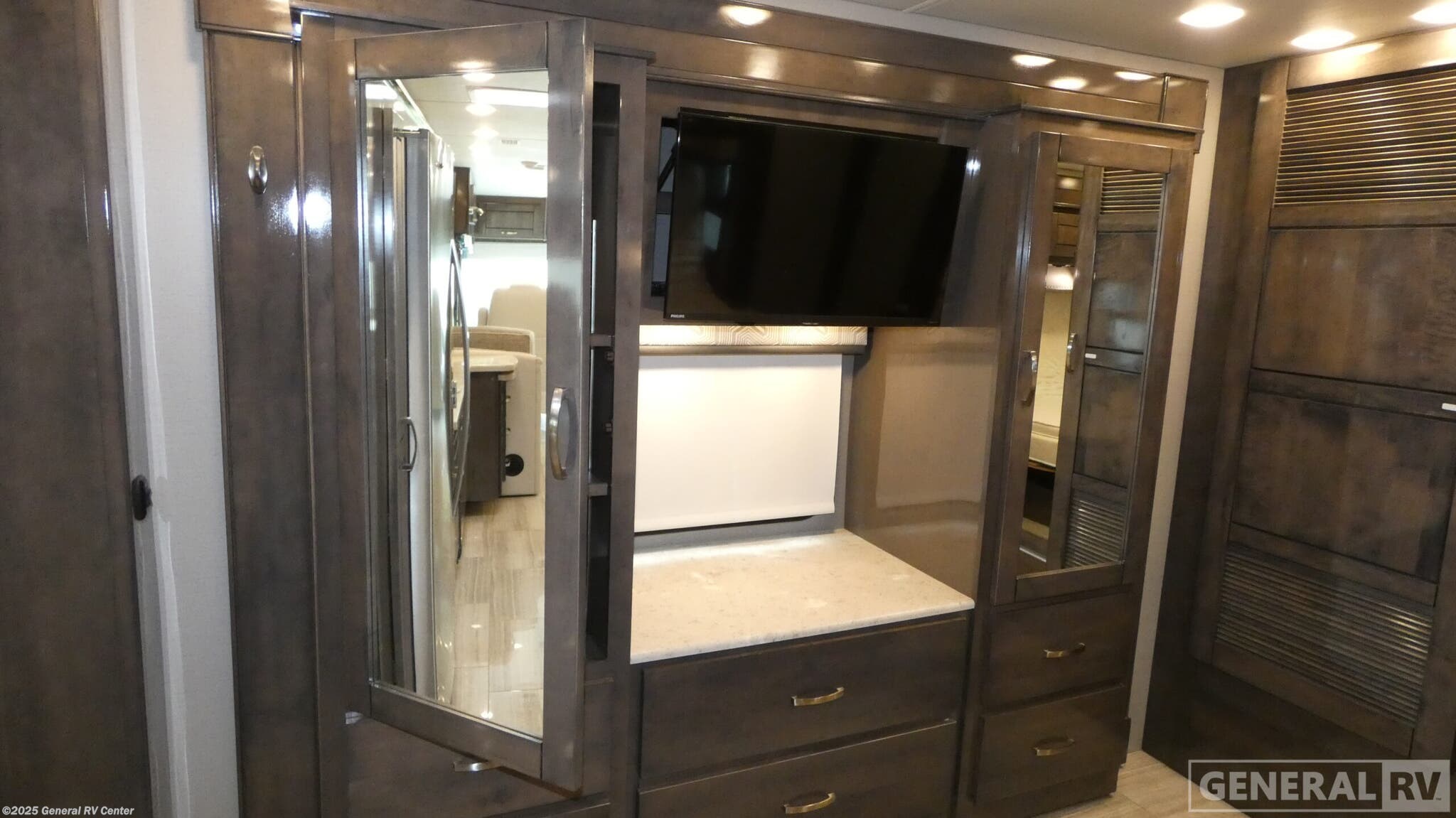 Jayco Embark Class A diesel motorhome 37K highlights: Fireplace Spartan Chassis Walk Around King Bed with Power Lift 21 Cu. Ft. Residential Refrigerator 50" TV with Power Lift Four Slides Embark on a trip of a lifetime with this motorhome! The rear private bedroom will have you feeling right at home with the king bed, the wardrobes on either side of the 32" TV, and the full wall wardrobe with an area with washer and dryer. The full bathroom features plenty of counter space for you to get ready and a 36" x 36" shower with a skylight for added natural lighting as you take a hot shower. The theater seating welcomes you to relax in true comfort as you enjoy the fireplace next to it and the 50" TV on a lift across from the sofa and above the booth dinette. There is even a hutch to store your dishes and an outside entertainment center for you to watch the big game outdoors! With any Embark Class A diesel motorhome by Jayco, you will enjoy precision handling and stability for a smooth ride, thanks to JRide Premium, and the automatic leveling jacks makes setting up a breeze. Constructed with X-Bridge bracing welded into the chassis frame, vacuum-bonded floors and sidewalls, plus a steel-reinforced front cap and windshield frame, you can be sure you're getting a durable home-on-wheels that will last for years. These models include an Xite XSG3 infotainment system with navigation, Bluetooth, Sirius XM and AM/FM tuner, an Xite 360 degree camera system, dual USB ports, plus many more technology features to get you to your destination safely and on time. Inside, you'll love the hand-laid polished porcelain floor tiles, the Flexsteel furniture, the solid surface countertops, and the central vacuum system to make cleaning up easier than ever!