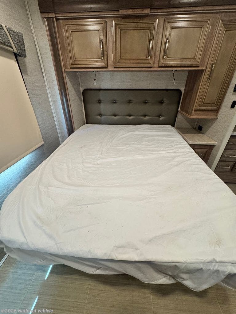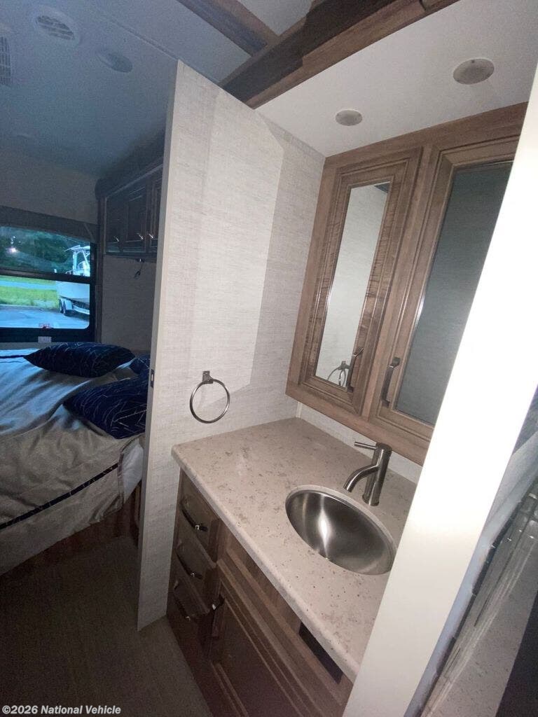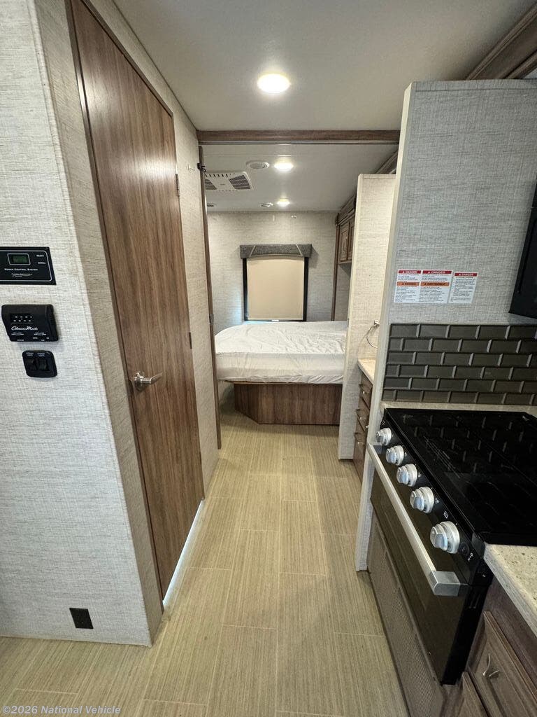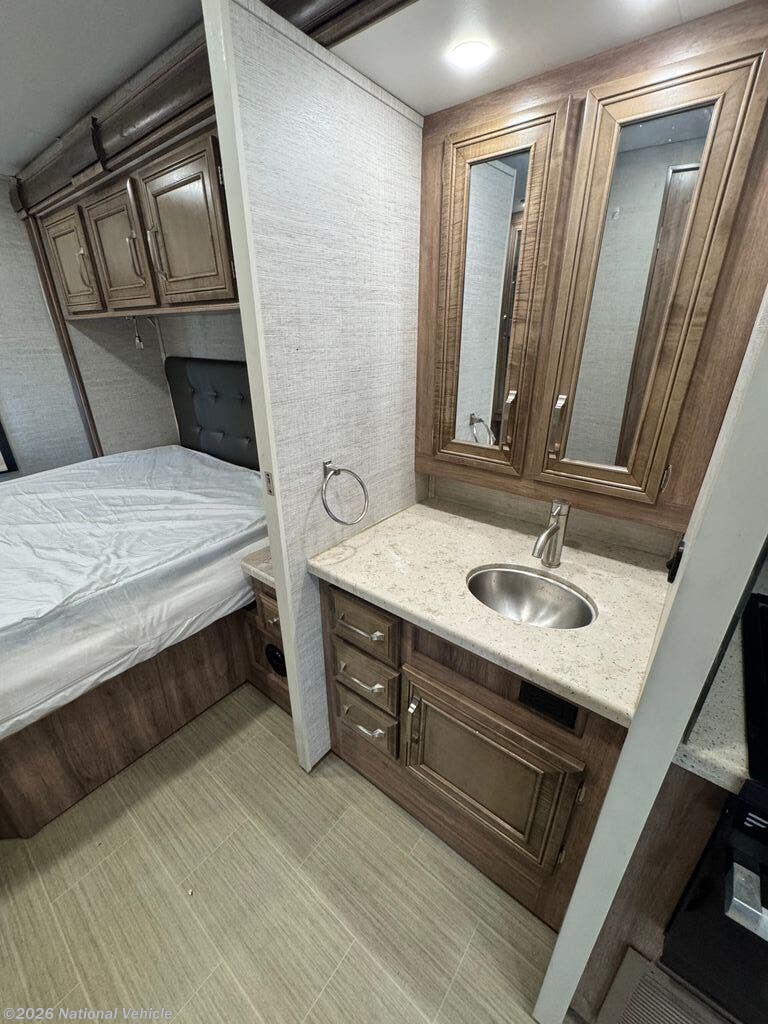 The fully equipped kitchen boasts solid-surface countertops, a stainless steel sink, three-burner cooktop, oven, microwave, and a residential-style refrigerator?everything you need to prepare home-cooked meals on the go. The private bedroom offers a walk-around queen bed, wardrobe storage, and its own TV, while the full bath provides a shower, vanity, and toilet for ultimate convenience.