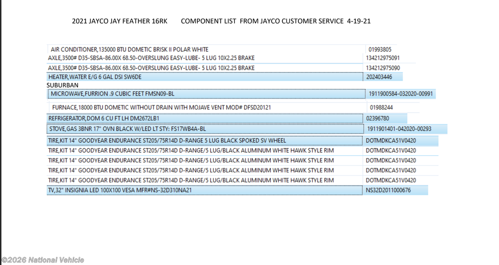 Request More Info on this 2021 Jayco Jay Feather 16RK Offered for sale by National Vehicle