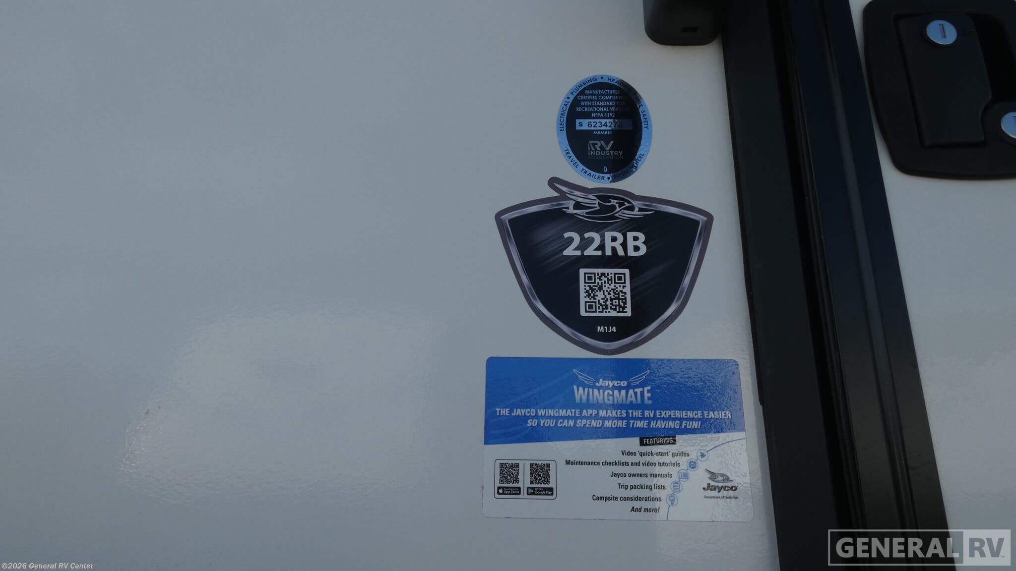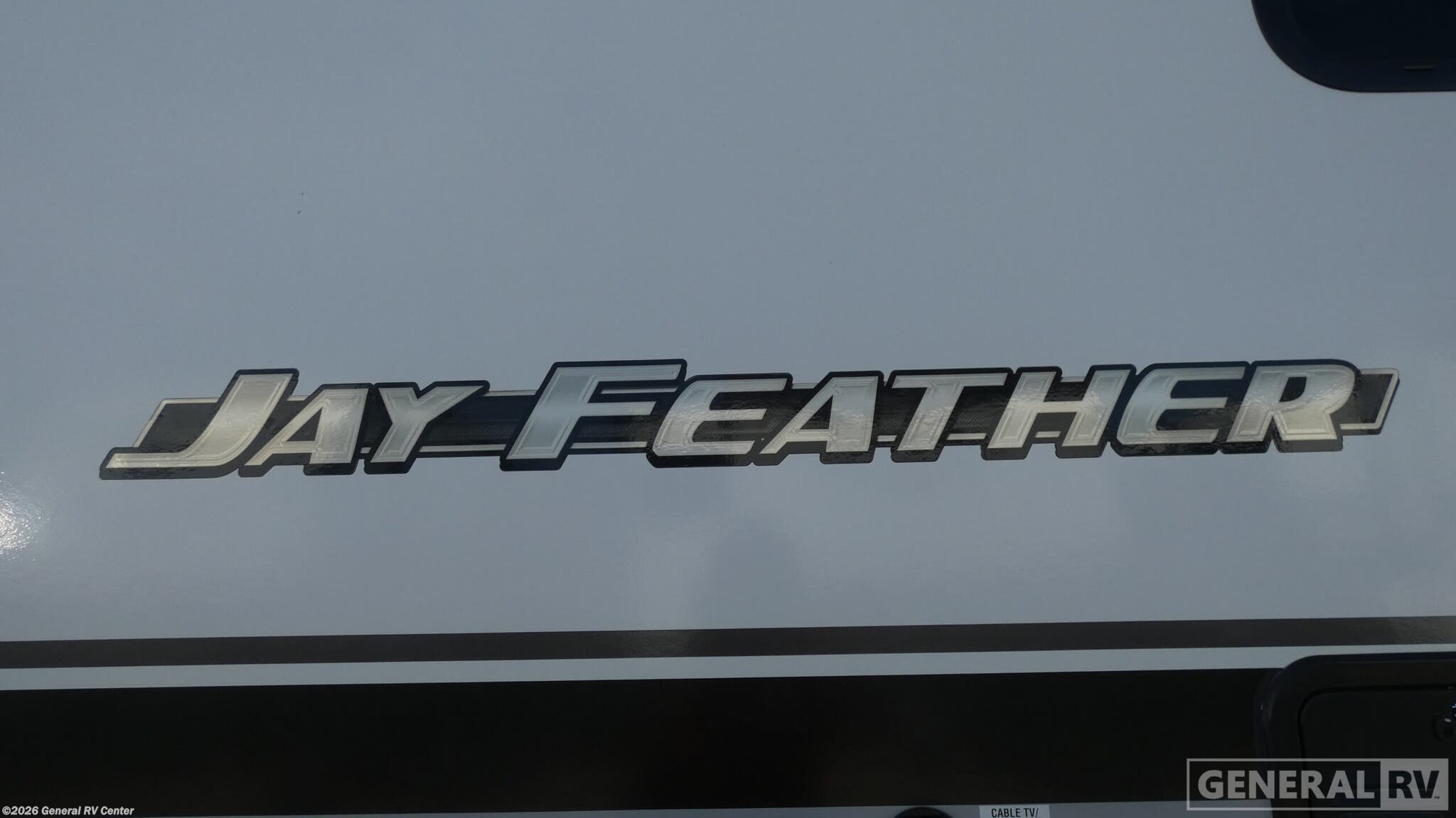 Jayco Jay Feather travel trailer 22RB highlights: U-Shaped Dinette Flip-Up Table Walk-In Pantry Outside Camp Kitchen Aluminum-Tread Steps This is a perfect couple's trailer with a spacious rear bathroom with lots of counter space and linen storage, plus the front bedroom offers a walk-around queen bed, dual wardrobes and a space savings sliding door for privacy. The L-shaped kitchen offers extra counter space on the flip-up table, a Furrion range including a three burner recessed glass cooktop and oven, plus a walk-in pantry near the entry for easy access while camping, loading and unloading. The outdoor cook will surely love the outside camp kitchen allowing them to visit with other RVers as they walk by and they will have the 16' power awning with LED lights to relax underneath. The slide out includes the 6 cu. ft. refrigerator and U-dinette or maybe you choose the L-lounger option or theater seating with table trays option. The Jayco Jay Feather travel trailers provide peace of mind with a superior construction process offering Stronghold VBL aluminum-framed vacuum-bonded lamination on every sidewall, rear wall and slide room wall on an American-made Norco frame with an integrated A-frame. Also included are American-made Goodyear tires and Dexter axles with self-adjusting electric brakes and galvanized steel wheel wells, and a 3/4 flush-mount fiberglass cap with blue LED lighting. The Sport Package is mandatory and offers a roof ladder, enhanced graphics package, roof-mount solar prep, and the Glacier package to mention a few features. The interior provides screwed and glued cabinetry, LED lighting throughout, a decorative backsplash and smoked glass decorative inserts on select overhead cabinets for style, plus much more depending on the Jay Feather you choose.