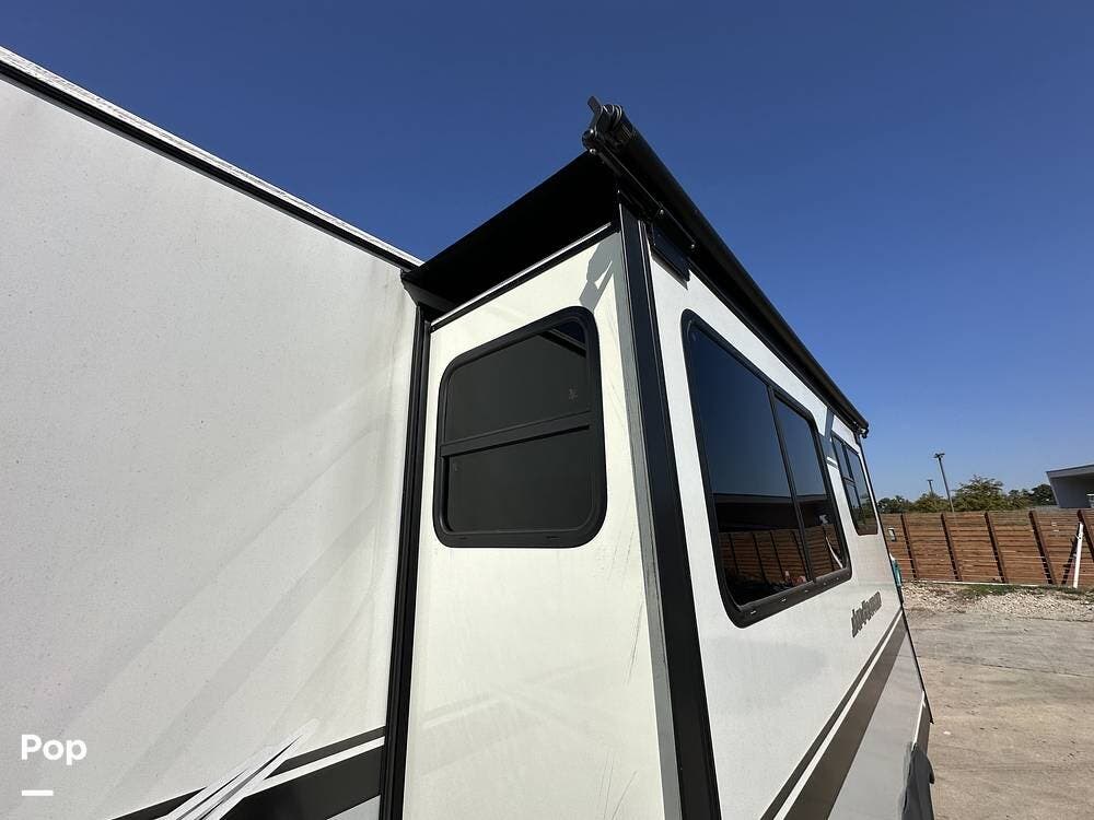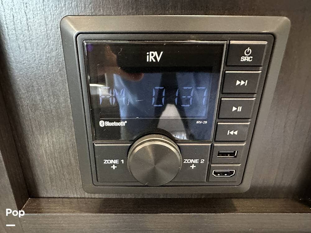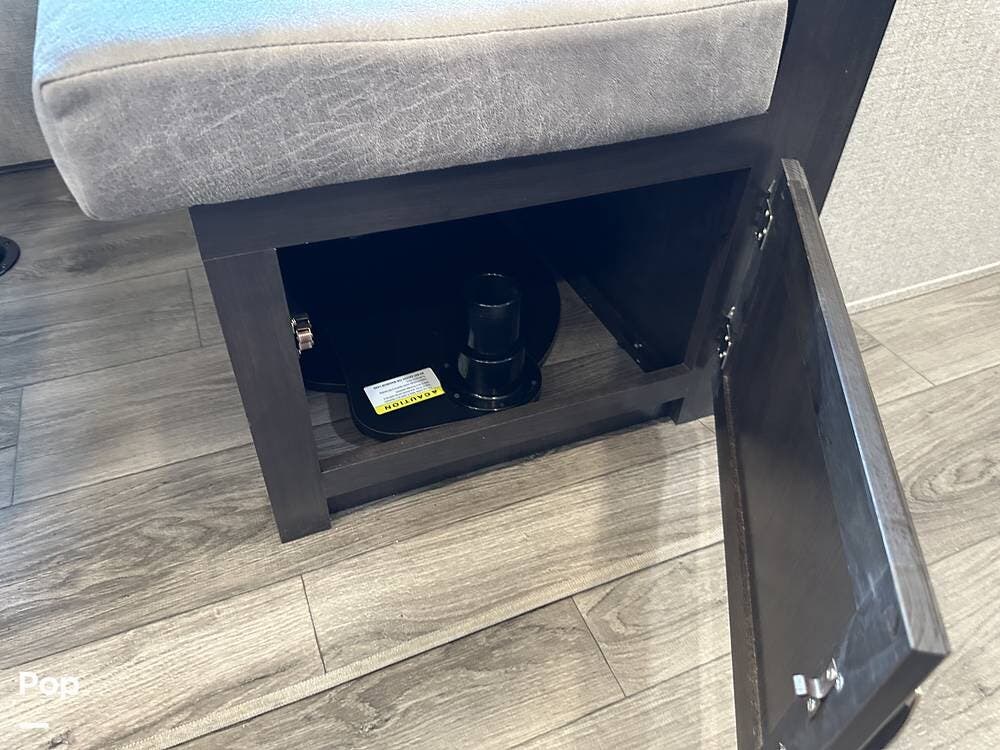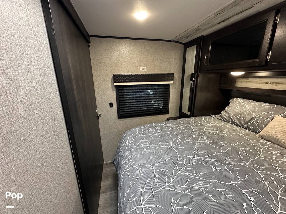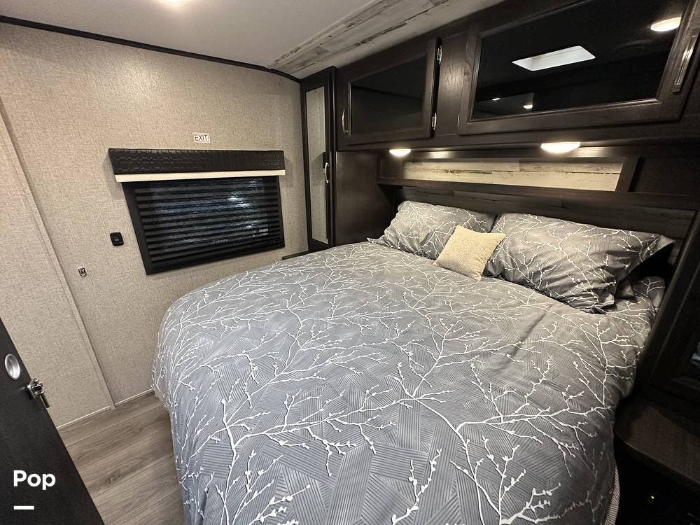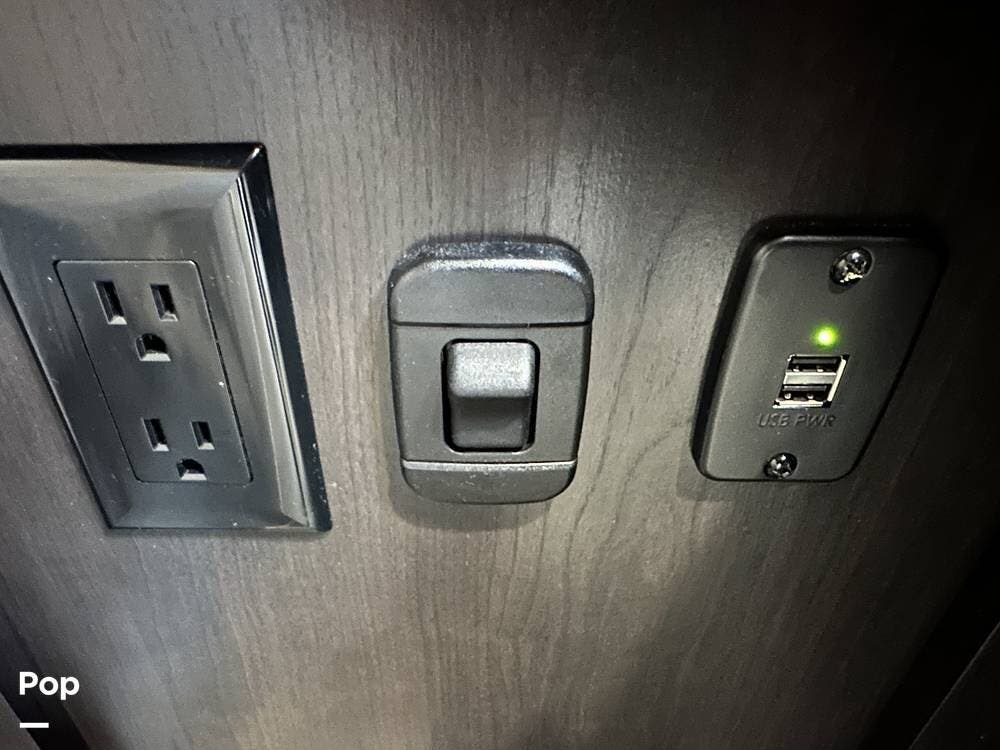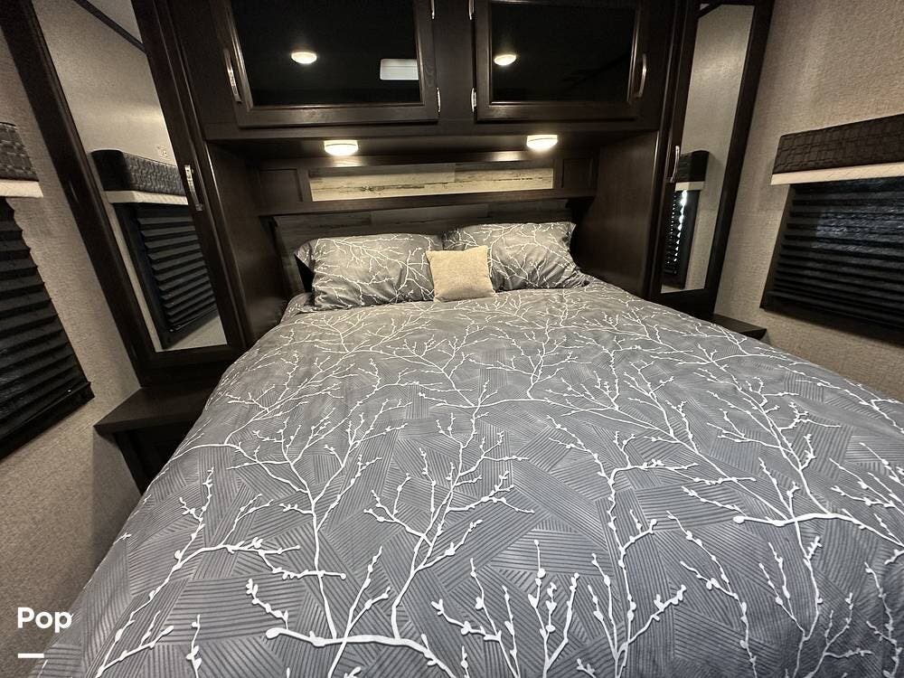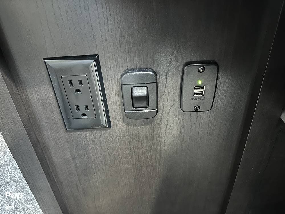 Outside you have three storage compartments, a 19-foot-long power awning, and exterior speakers. Your new camper is pre-wired for solar.