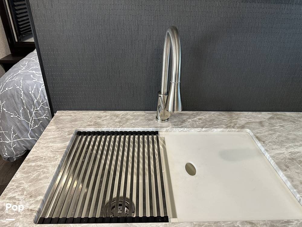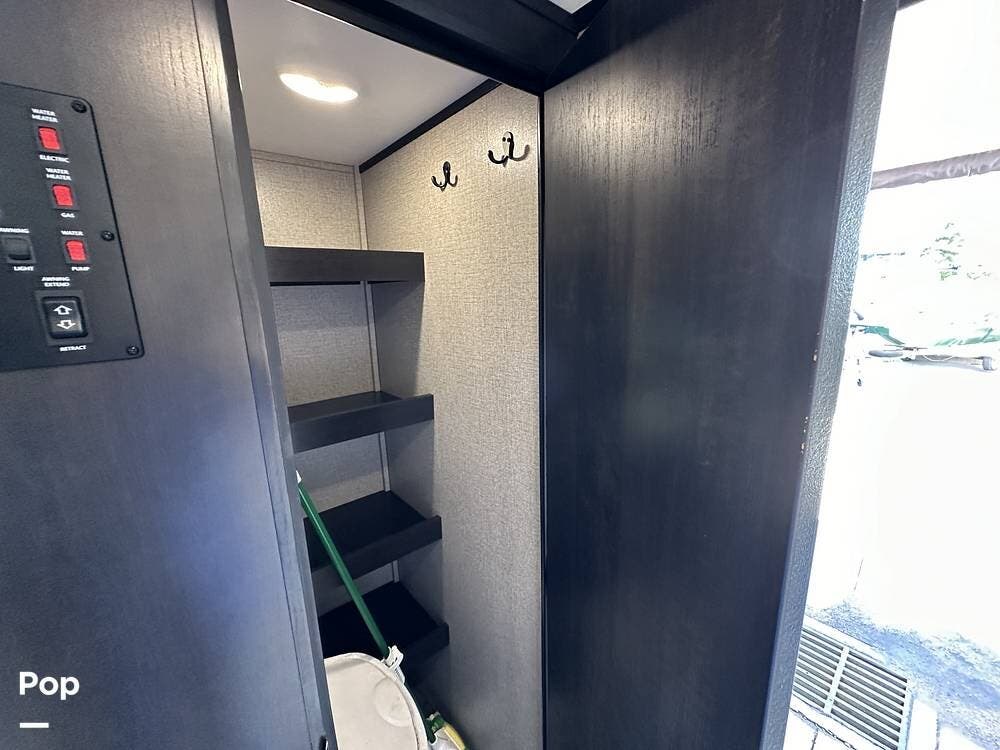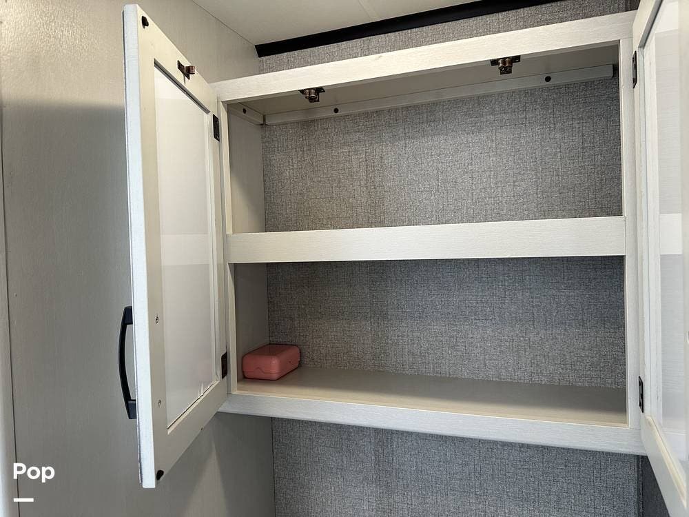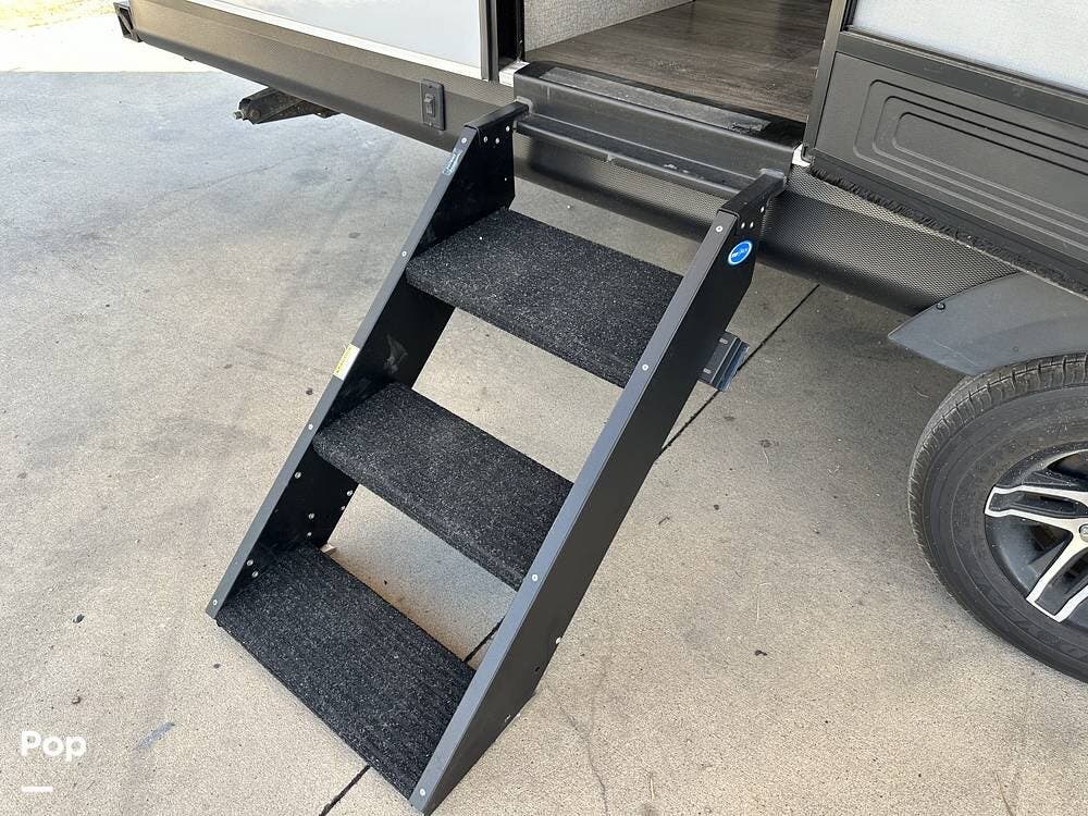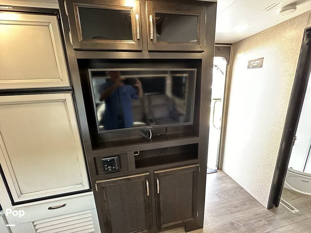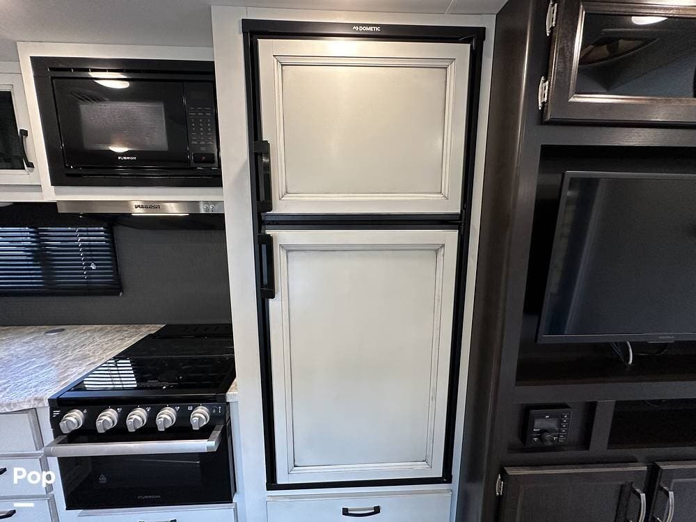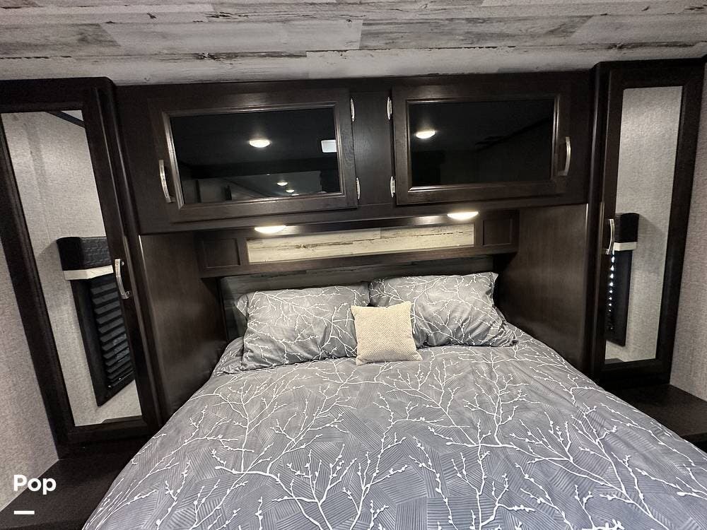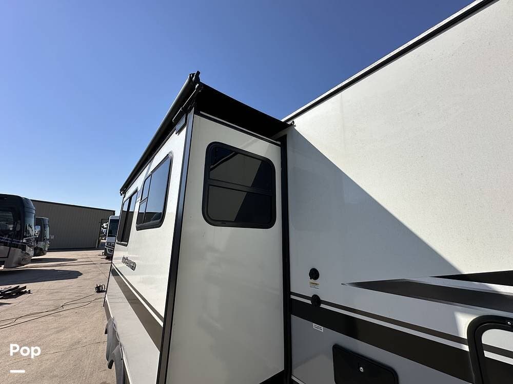 Outside you have three storage compartments, a 19-foot-long power awning, and exterior speakers. Your new camper is pre-wired for solar.