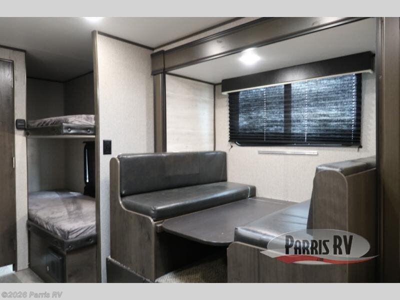 This Jay Flight SLX 7 travel trailer is similar to model 174BH, but it includes a slide out for more interior space. The bunk beds include 4"-thick bunk mats for comfort, and the front queen bed includes a privacy curtain for your own space. Easily prepare your meals on the two-burner cooktop, or use the convenient microwave oven. This mode includes a private bathroom so that you don't have to use the camp's facilities, plus you'll find plenty of storage, including overhead compartments, a pantry, and outside storage!