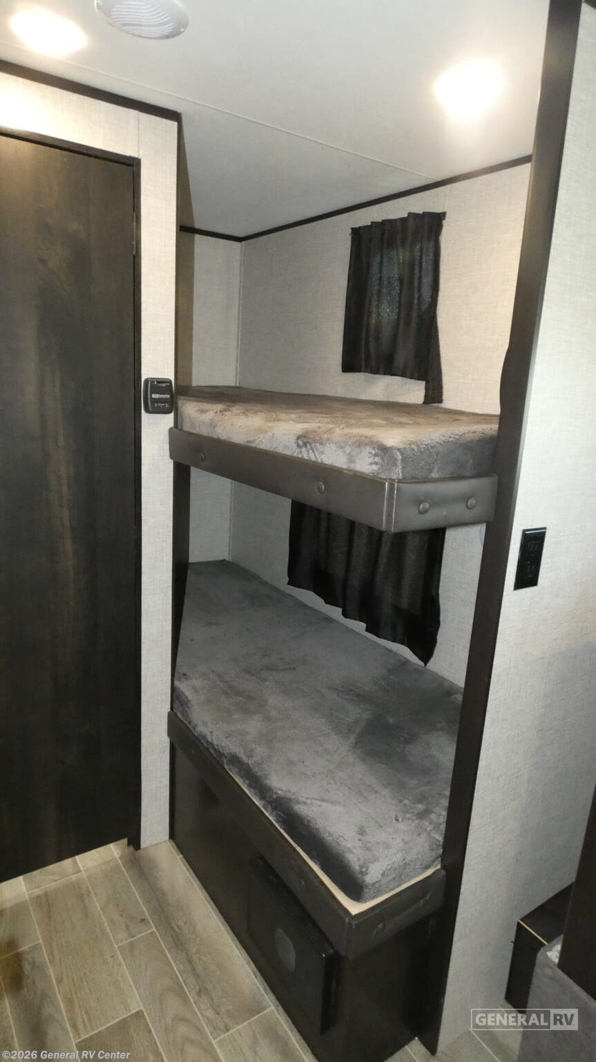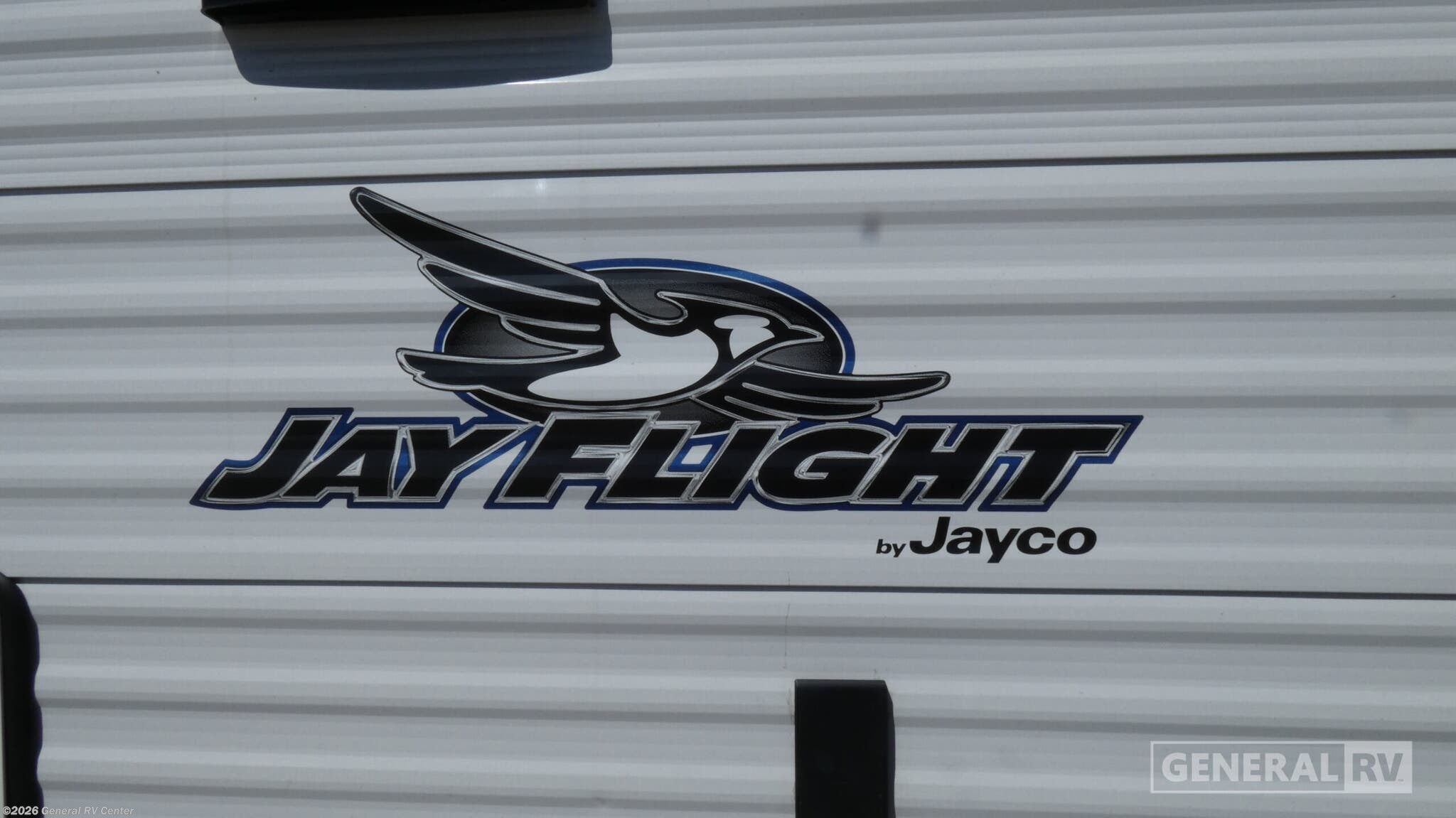 **Jayco Jay Flight SLX 7 travel trailer 184BS highlights:** - Bunk Beds - Dinette Slide - Front RV Queen Bed - Wall-Mounted AC There is room to sleep five people on this Jay Flight SLX 7 travel trailer with the 29" x 75" bunk beds, booth dinette, and RV queen bed. There is also added living space with the single slide, and the private bathroom adds convenience for everyone with its tub/shower and toilet. The kitchen has all of the necessities for creating delicious meals, like a 6-cubic foot refrigerator, microwave oven, and two-burner range, and you also have overhead cabinets to use for keeping your items organized. The Jayco Jay Flight SLX 7 travel trailer is quite easy to own because it weighs less than 3,500 pounds, and it comes with a single axle. Built on a fully integrated A-frame with galvanized-steel, impact-resistant wheel wells, the Jay Flight SLX 7 has quality at its very foundation. That quality continues on to the electric self-adjusting brakes, easy-lube hubs, Magnum Truss roof system, friction-hinge entry door with window, and LP quick connect. Some of what the mandatory Customer Value Package includes are two stabilizer jacks with sand pads, American-made Goodyear Endurance tires, Keyed-Alike entry and baggage doors, and JaySMART LED lighting. Buying your trailer in the East versus the West will determine which optional package is available to you. The East offers an optional STX Edition, and the West offers an optional Baja Package. Both packages come with a 30LB LP bottle, a large fresh water tank, Goodyear off-road tires, an enclosed underbelly, a double entry step, four stabilizer jacks, and a deluxe graphics package. Specific to the STX Edition, you will find a wide-stance axle, aluminum rims, a power tongue jack, and powder-coated wheel fenders while the Baja Package offers you a flipped axle and black sidewall skirt.