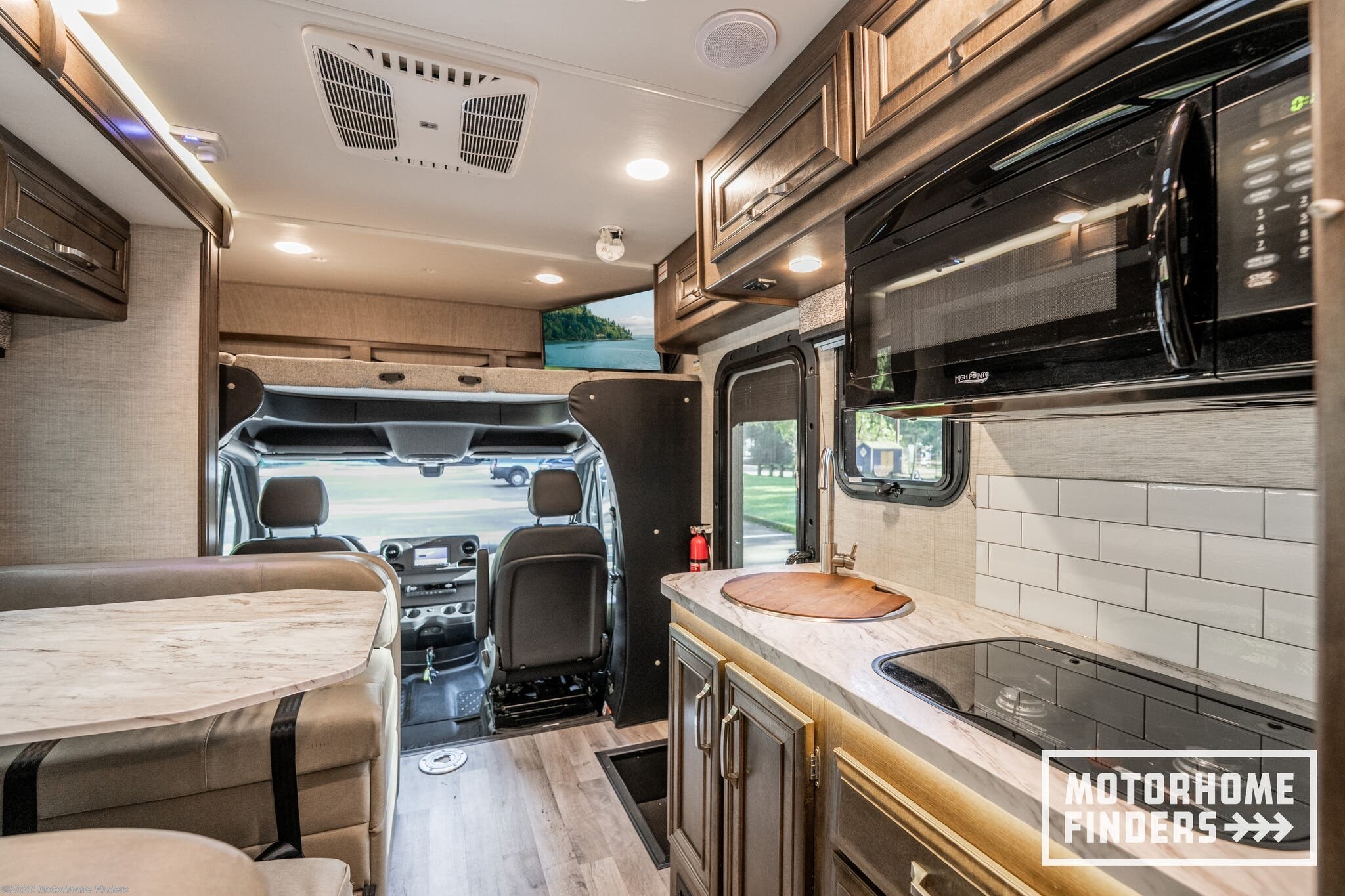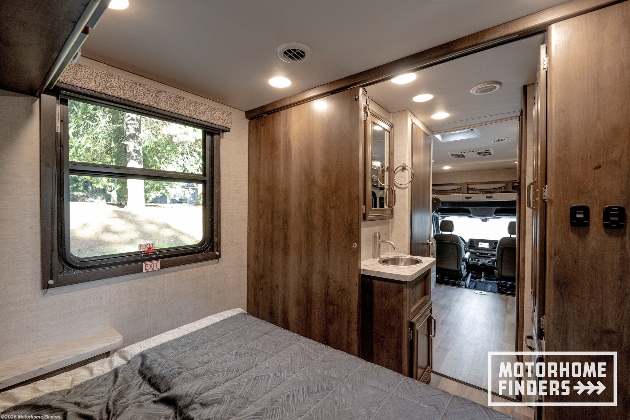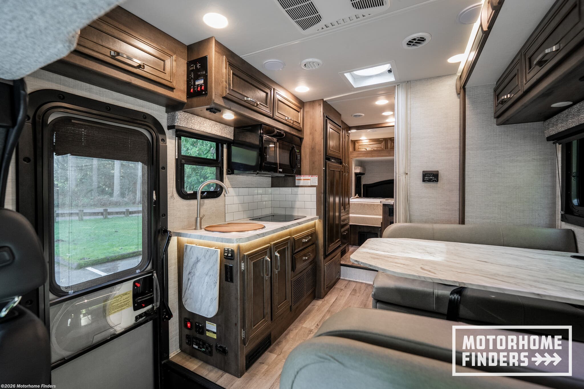 83” interior ceiling height – Open, airy feel rarely found in compact Class C coaches