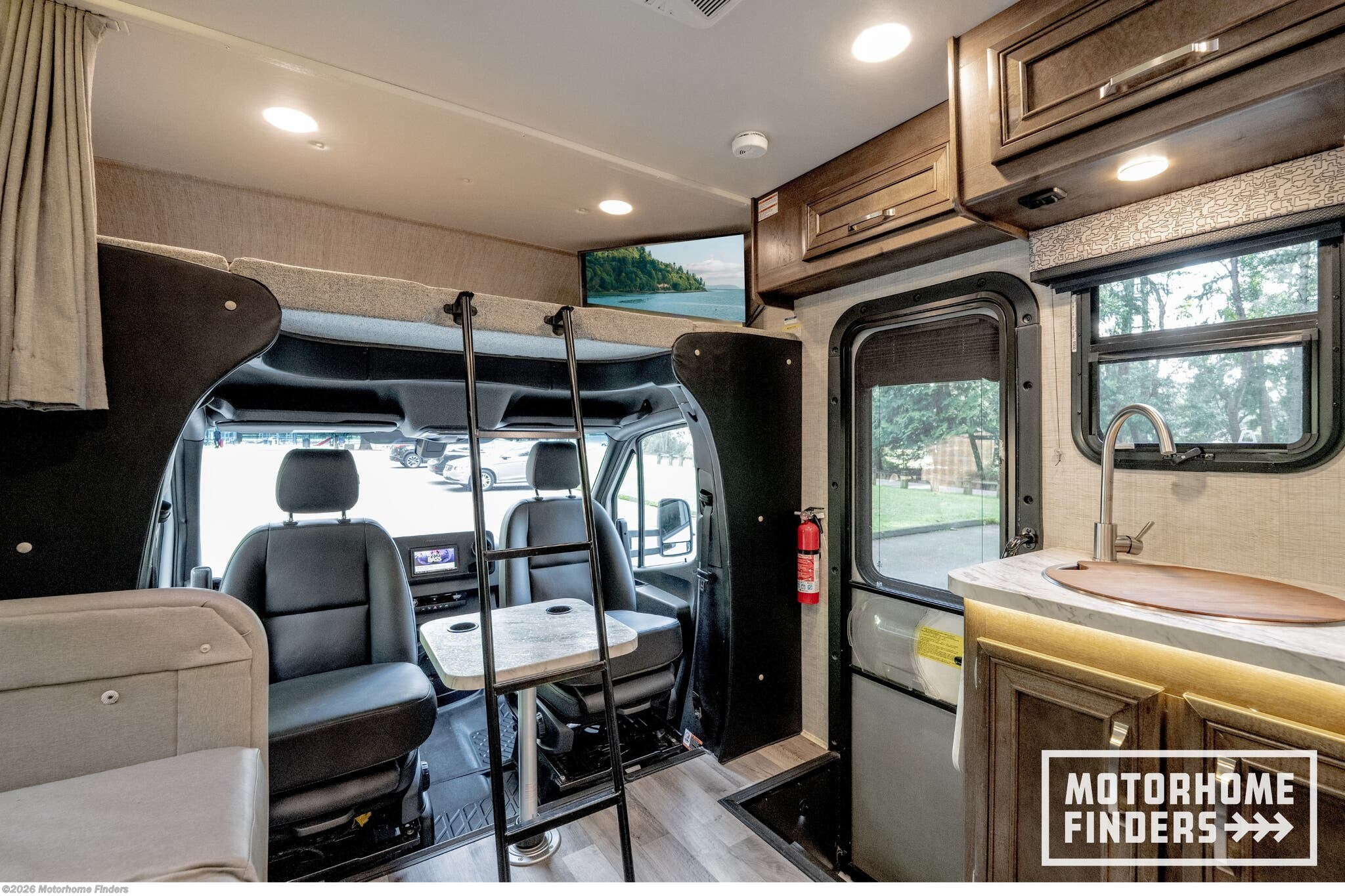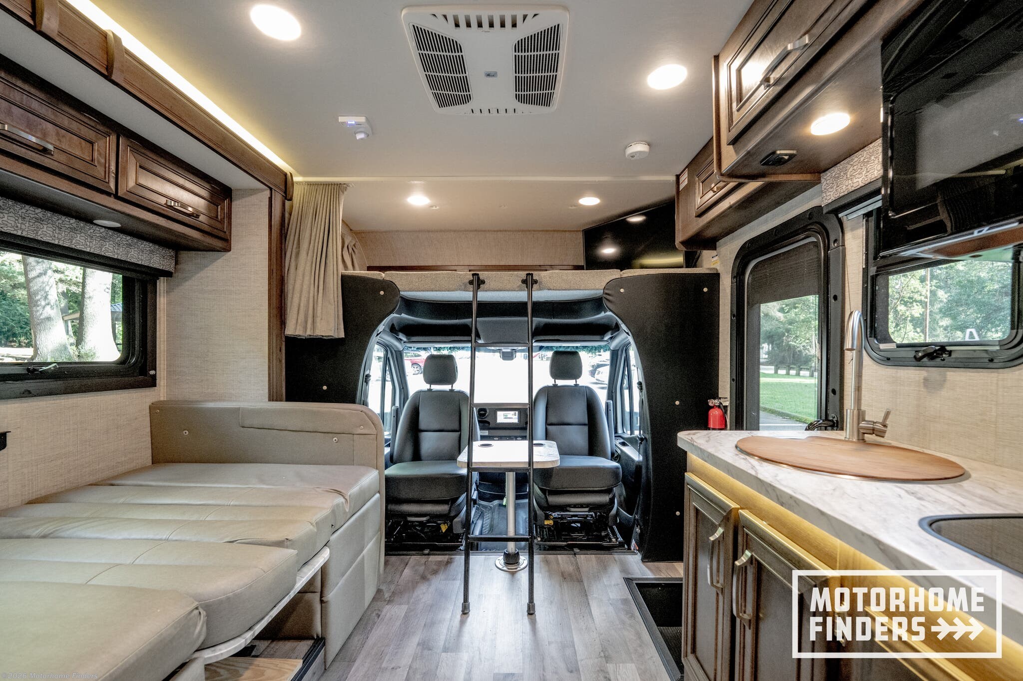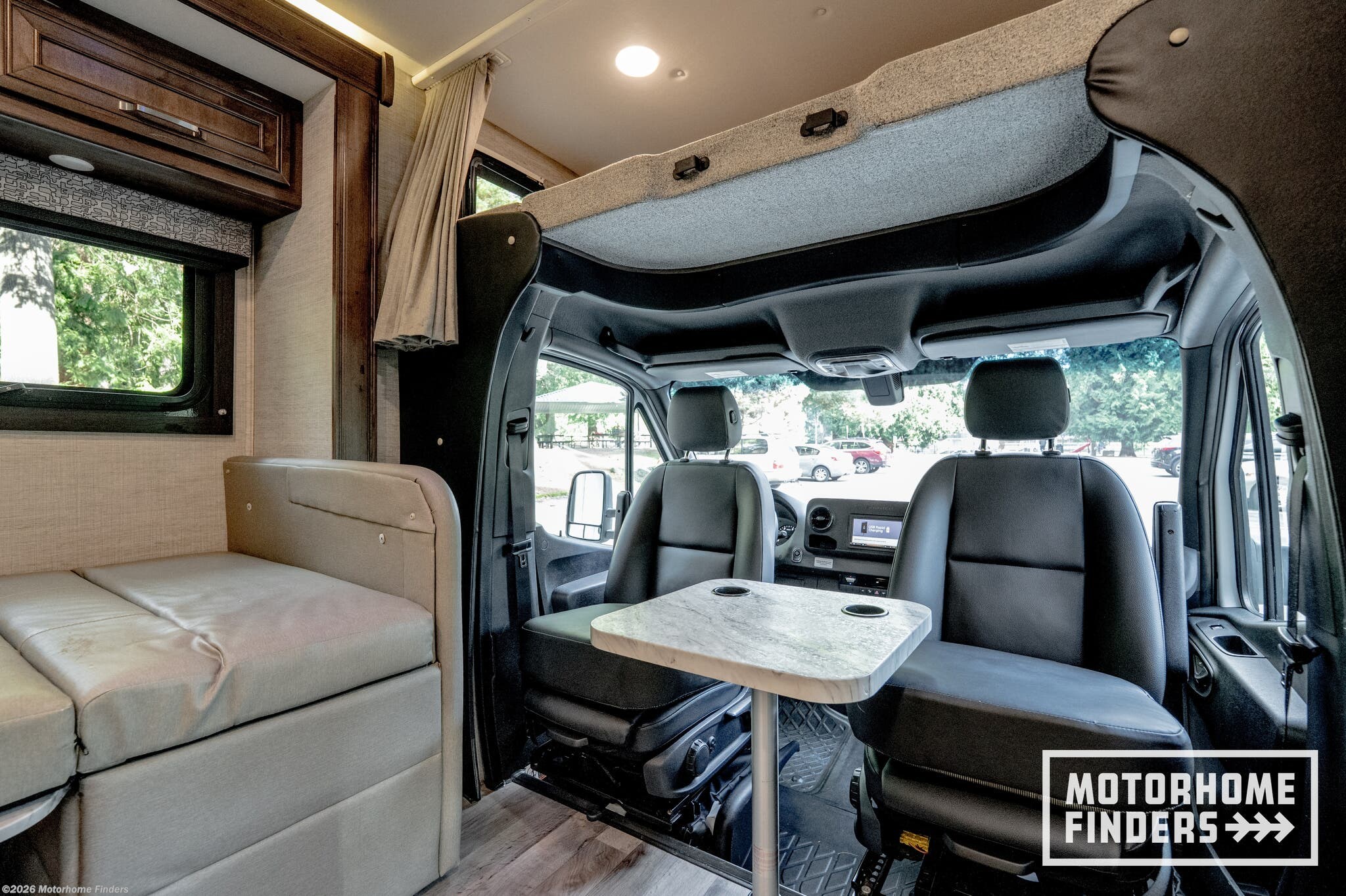 Swivel driver & passenger seats – Seamlessly integrate the cab into the living area with removable table for added flex space