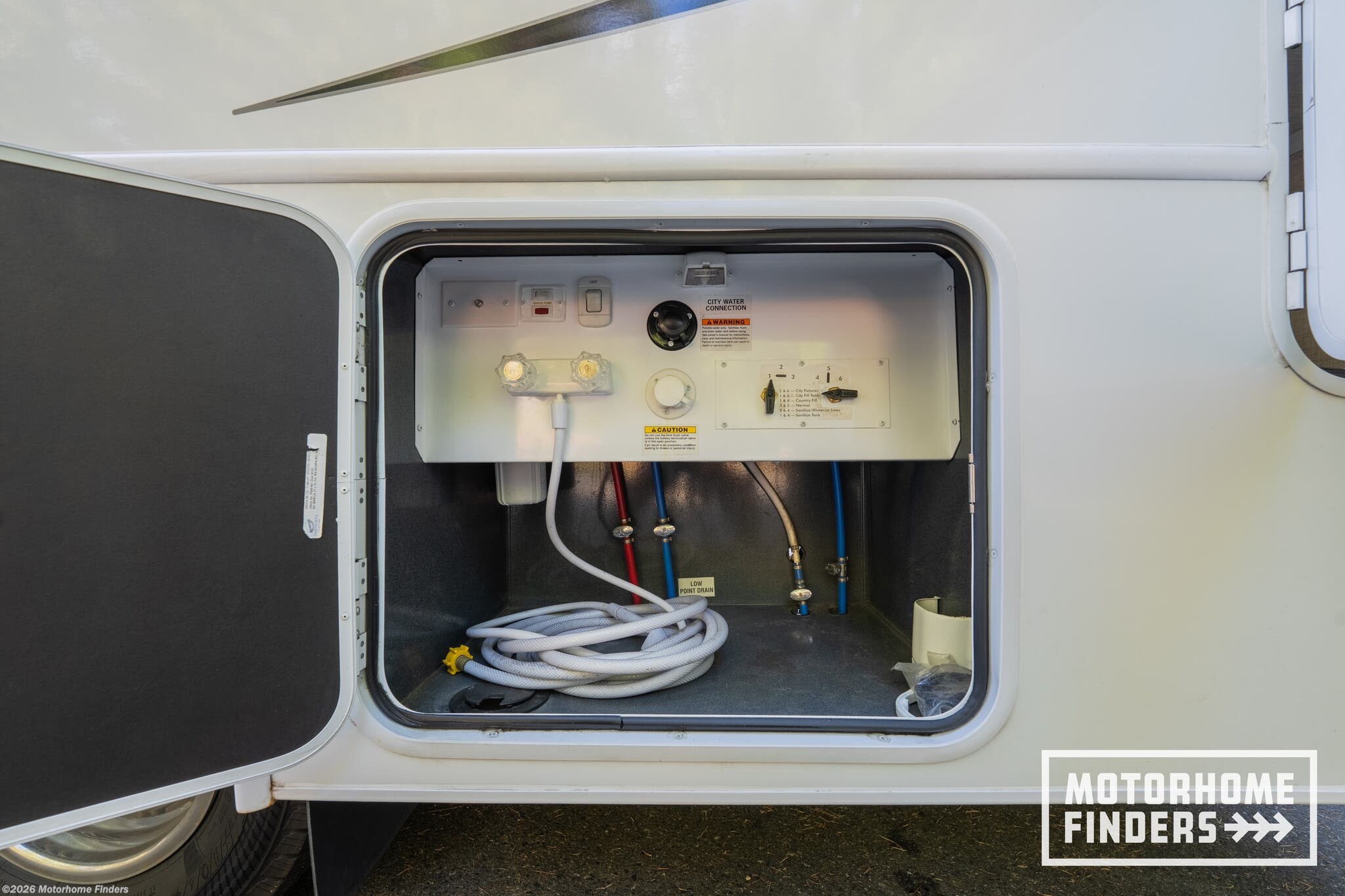 Exterior utility center w/ black tank flush & winterization system – Simplifies setup and maintenance