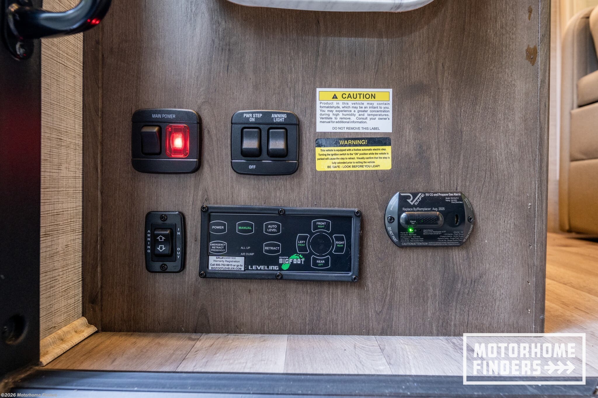 Backup Camera, CO Detector, Fire Extinguisher, LP Detector, Propane, Smoke Detector, TV -