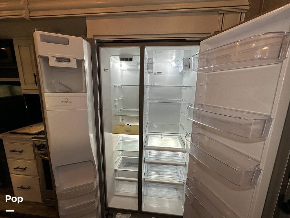 The spacious kitchen is a cook's dream. The island has an attachable cutting board and a double sink with a gooseneck faucet, making prep work a breeze. This unit also has a residential refrigerator/freezer complete with an icemaker.