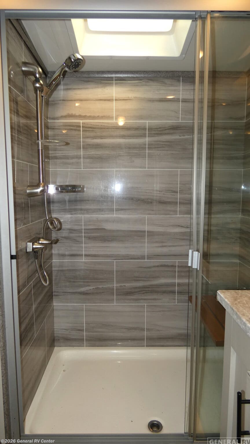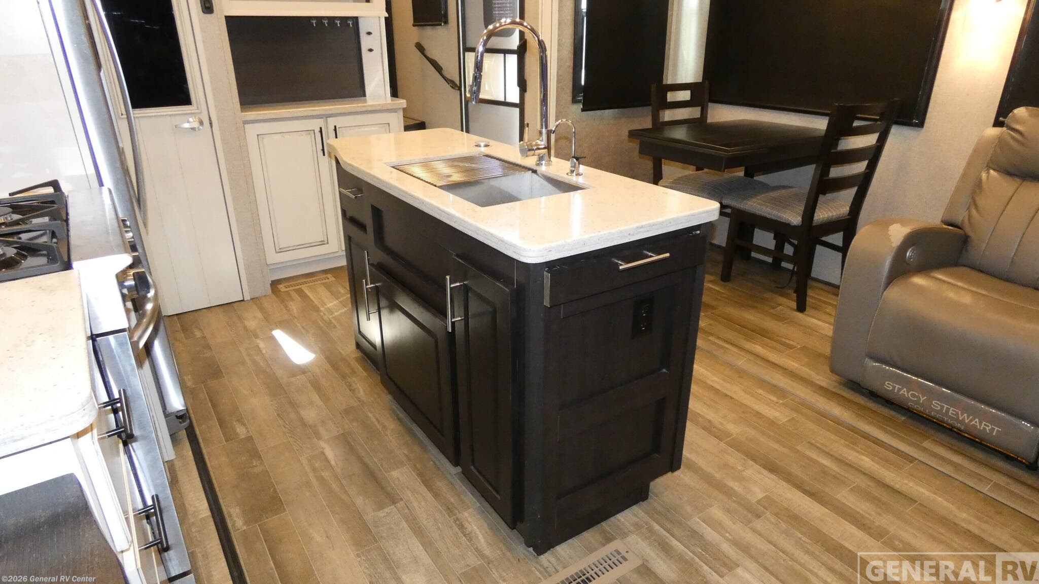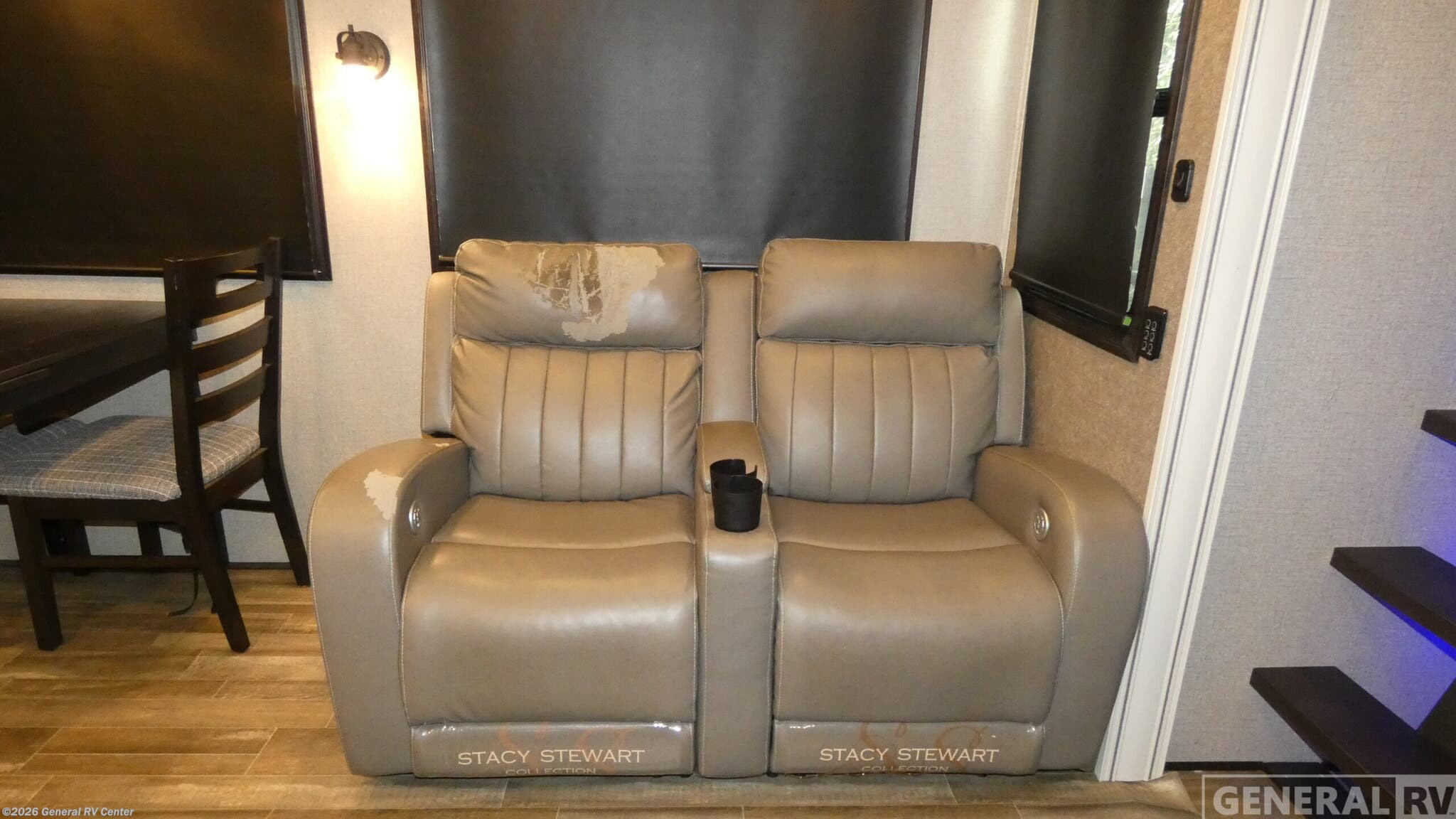 Jayco North Point fifth wheel 373BHOK highlights: Bonus Room Overhead Loft Loft Stairs/Ladder Kitchen Island Full and Half Bath Outside Kitchen Experience a "hybrid unit" couples coach with this bath and a half fifth wheel! The rear bonus room can be utilized as a bunkhouse with it's tri-fold sofa and removable table, all of which is in a slide out. The oversized loft/storage area above offers the industry's first loft stairs/ladder for easy access. The walk-through half bath is convenient for everyone on this side of the fifth wheel, and the full bathroom next to the front bedroom provides a shower with a seat for everyone to get cleaned up before bedtime. The queen bed, the walk-in closet with hamper and a prepped space for a washer/dryer, plus the flip-top dresser and 32" TV provide a nice oasis after a full day outdoors. The main area is spacious with dual slides and offers a free standing dinette and theater seats, full kitchen amenities, plus a kitchen island with dishwasher prep and a fireplace! These Jayco North Point fifth wheels offer sleeping spaces and luxurious features to accommodate all types and sizes of groups! You will have generations of family fun with construction features like the Stronghold VBL™ aluminum framed, vacuum bond laminated walls and a Magnum Truss™ XL6™ roof system with a one-piece, seamless DiFlex II material which is the strongest tested roof in the industry. There are three mandatory packages to make your traveling experience even better. One of the packages is a five star handling package which includes Dexter axles with Nev-R-Adjust brakes, Dexter heavy-duty shackles with wet bolt fasteners and bronze bushings to resist the wear and tear of towing, Goodyear beast tires, a MORryde rubberized suspension system, and a MORryde pin box so you can travel forward, backward, and side-to-side for a smoother tow. Come choose your favorite model today!