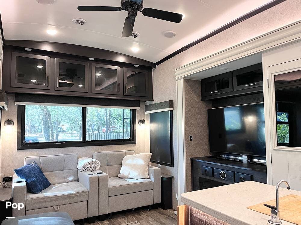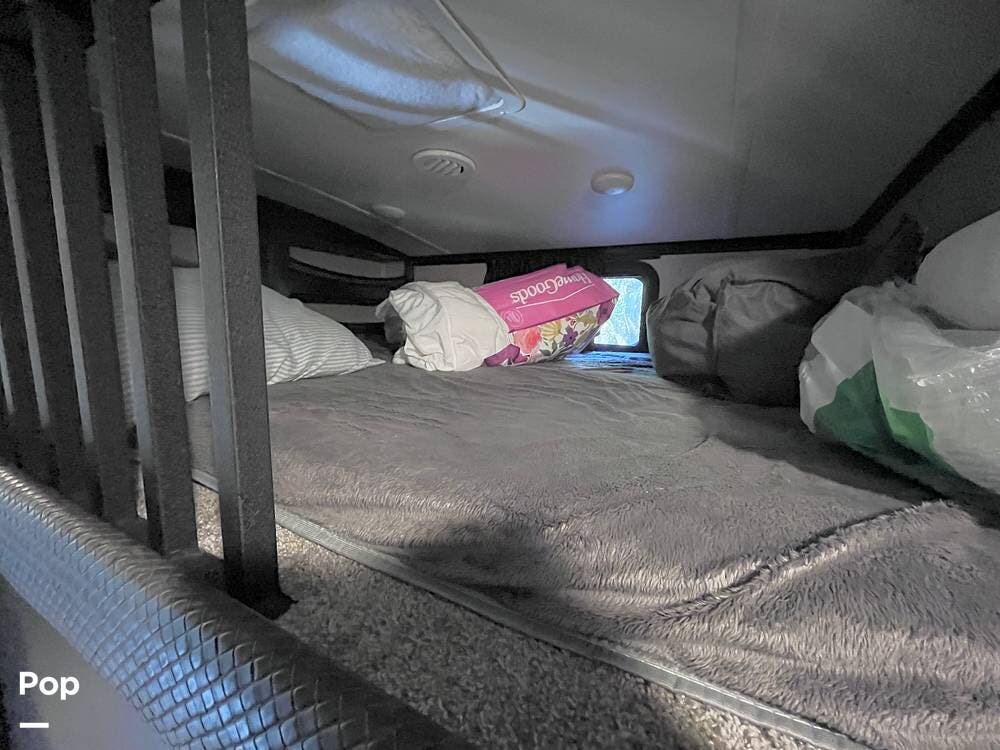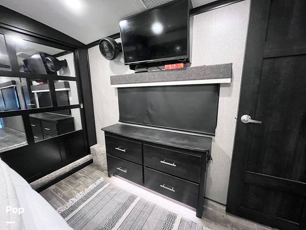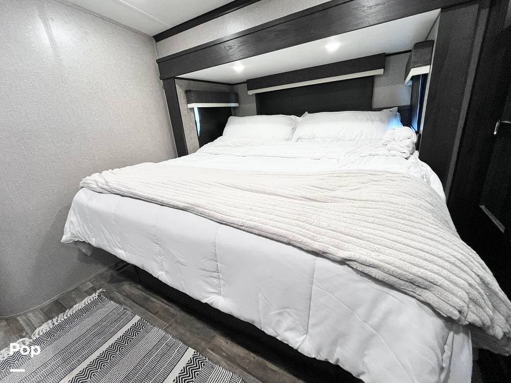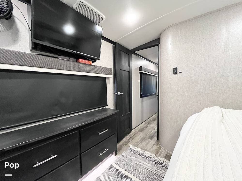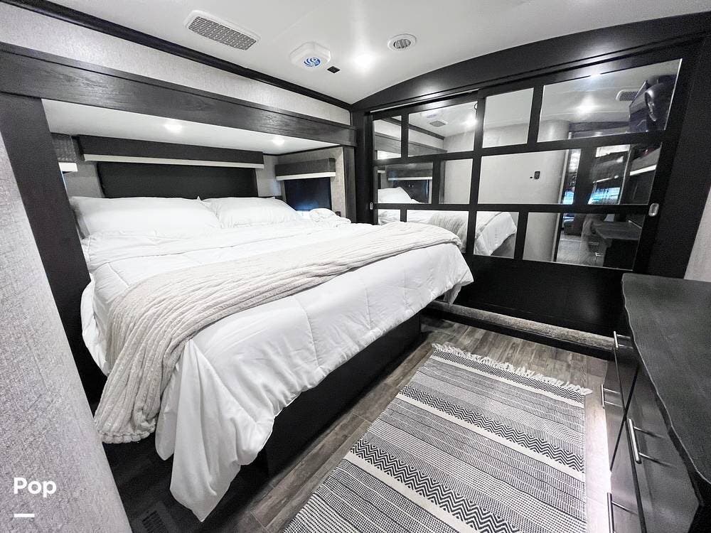 The layout of this single-owner 377RLBH incorporates two bedrooms and room to sleep up to 7. The private bedroom suite accommodates the comforts of home with a king bed, a wardrobe, built-in closet organizers, and washer-dryer hookups.
