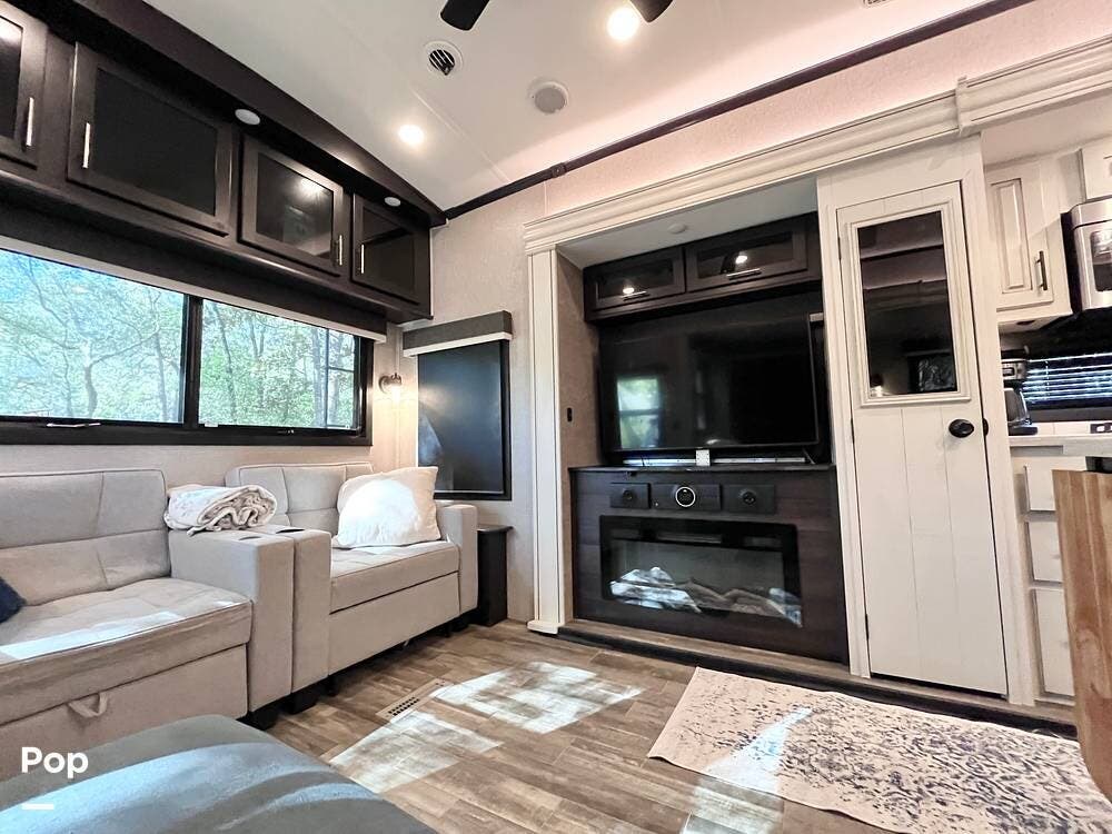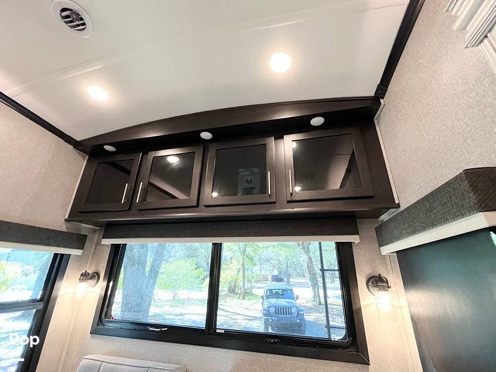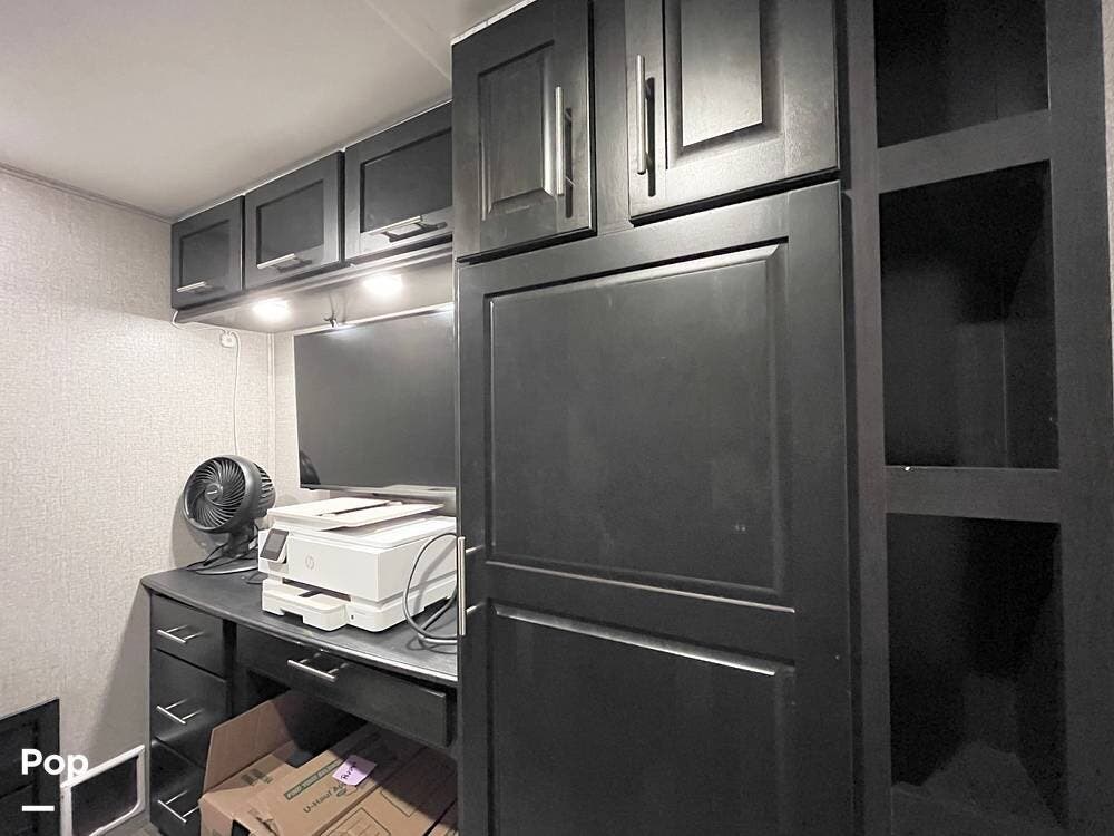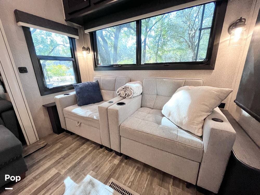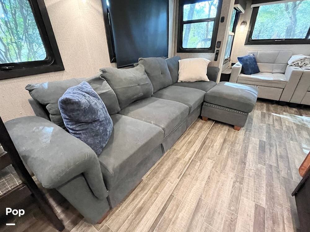 The layout of this single-owner 377RLBH incorporates two bedrooms and room to sleep up to 7. The private bedroom suite accommodates the comforts of home with a king bed, a wardrobe, built-in closet organizers, and washer-dryer hookups.