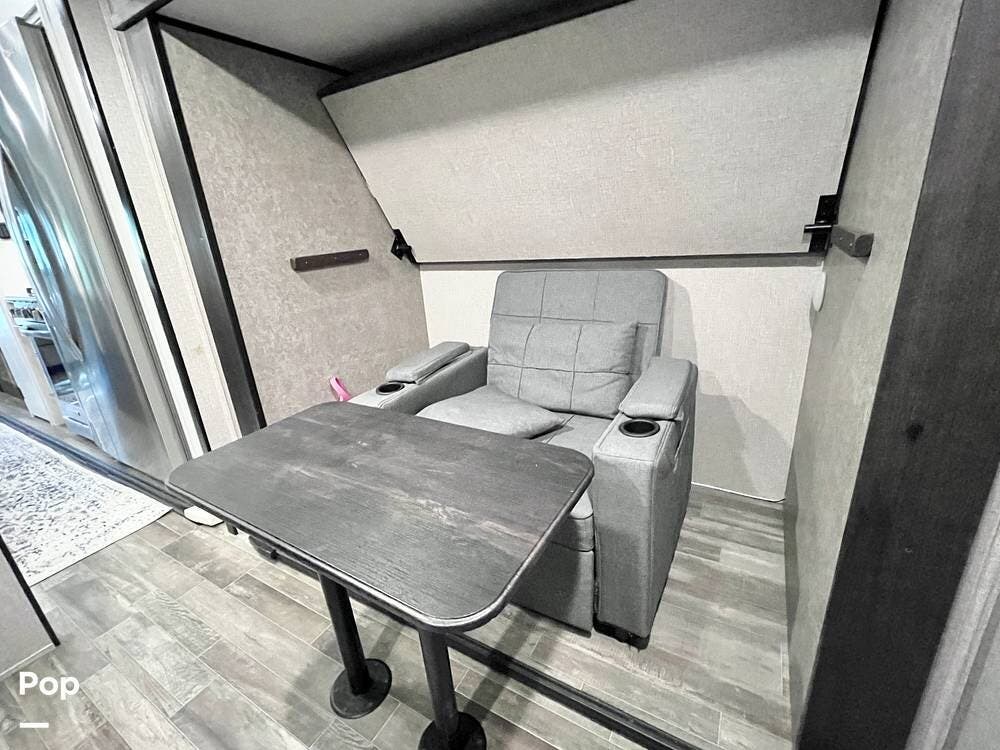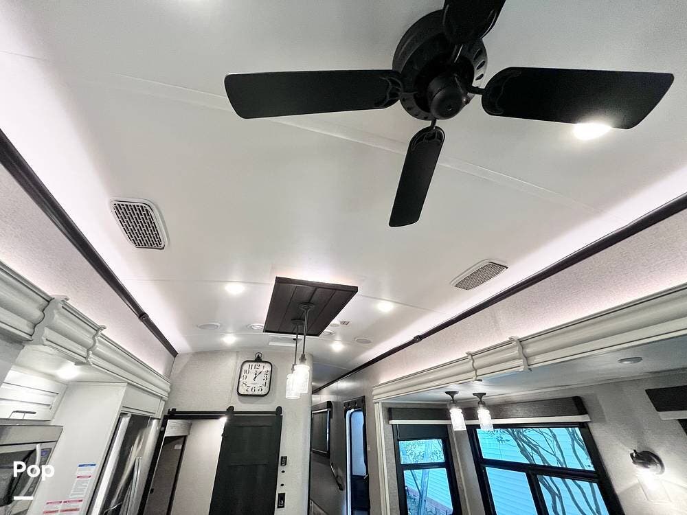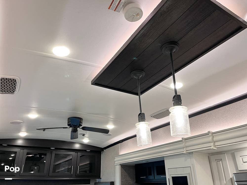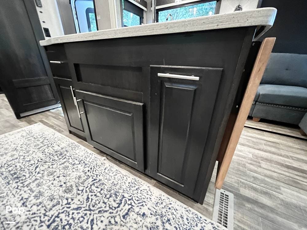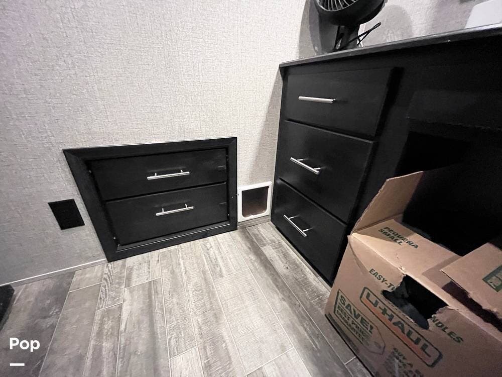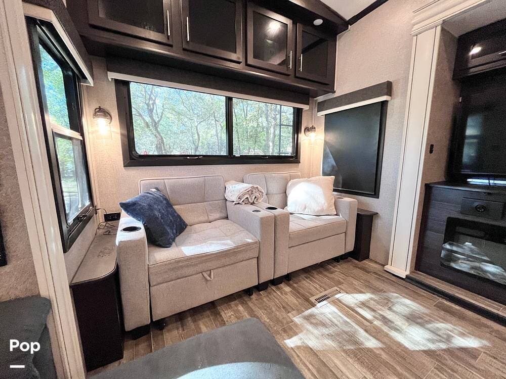 The layout of this single-owner 377RLBH incorporates two bedrooms and room to sleep up to 7. The private bedroom suite accommodates the comforts of home with a king bed, a wardrobe, built-in closet organizers, and washer-dryer hookups.