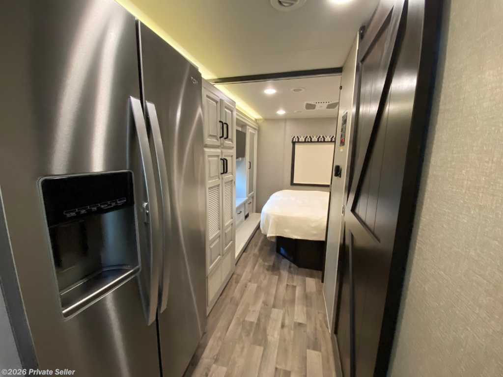 Step inside and you’ll immediately notice how open and livable this coach feels. With a farmhouse aesthetic, it is comfy and homey and feels like you truly are in your own home!