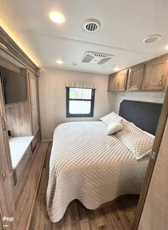 Super-clean and lightly-used! Sleeps 8! Upgraded drop-down bed, theater-style recliners, king bed! Outdoor TV!