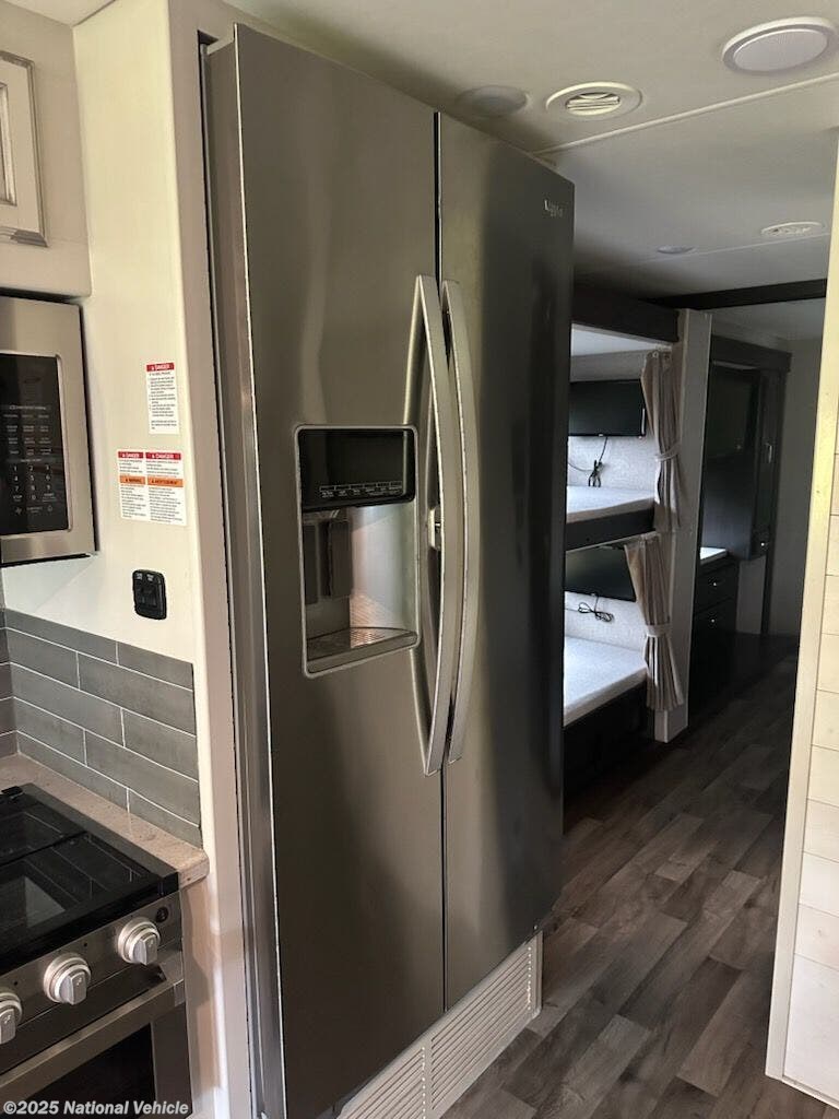 Step inside to discover a spacious interior featuring three slide-outs, residential-style finishes, and an open floor plan made for relaxation. The 36A includes a private master suite, dual bathrooms, and a dedicated bunk area?perfect for families or guests. The fully equipped kitchen, complete with solid-surface countertops and modern appliances, makes it easy to enjoy home-cooked meals wherever you roam.