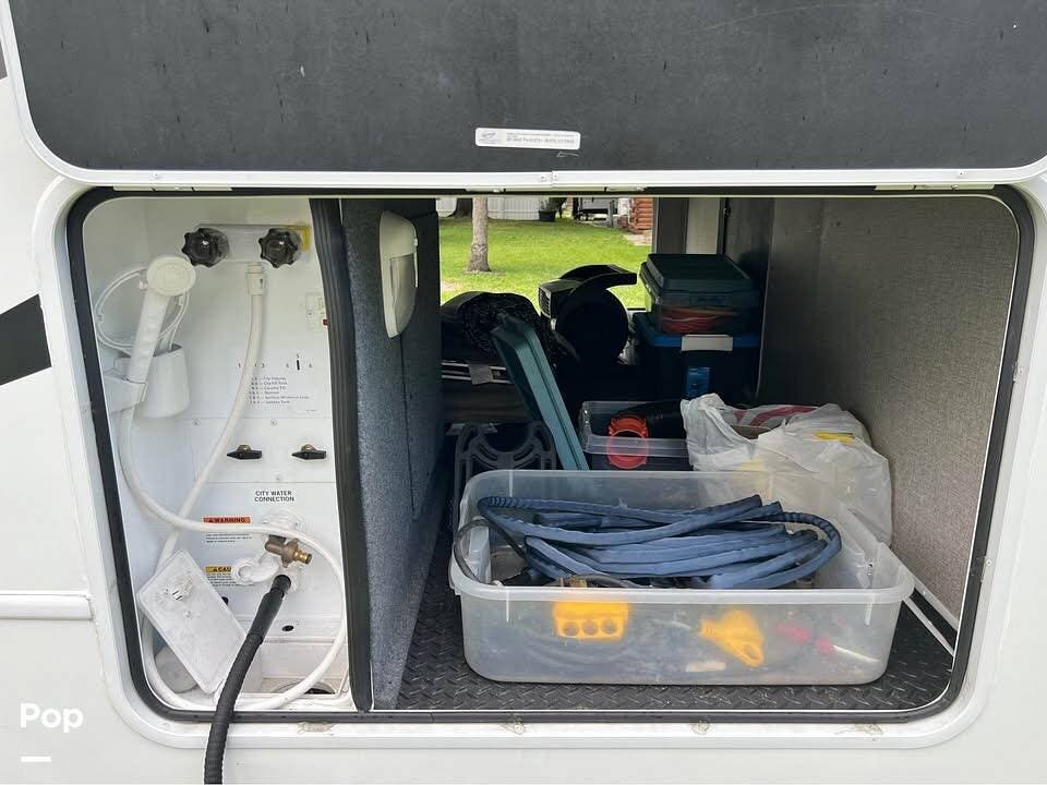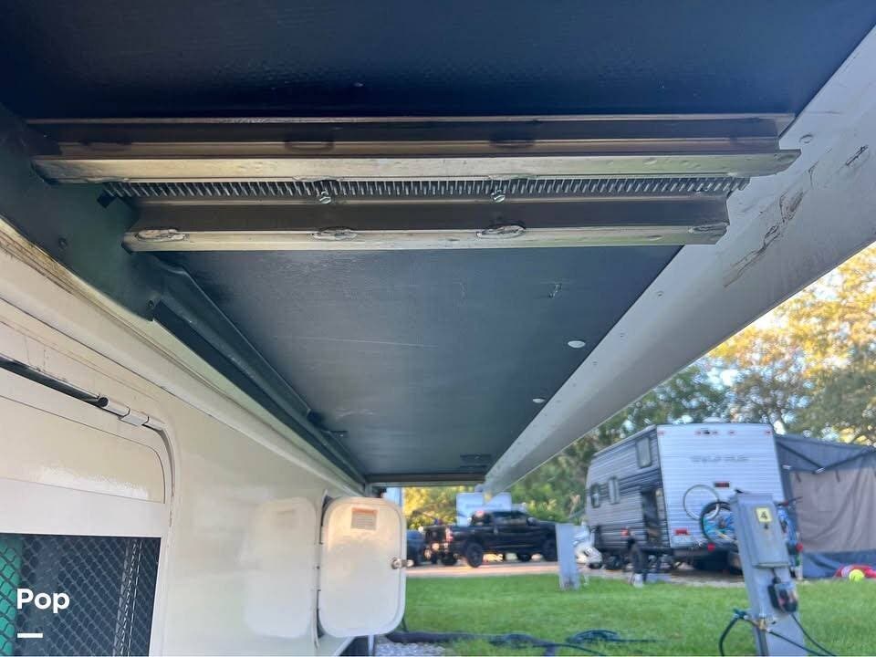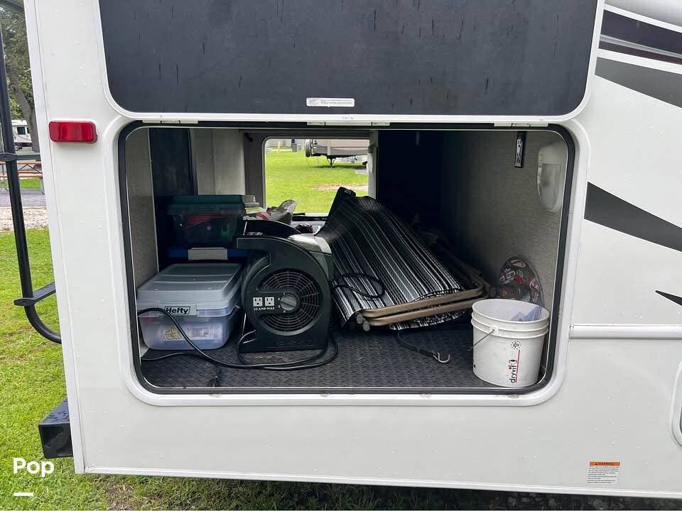 Outside, you will find a 16-foot electric patio awning with LED lights, 88 cubic feet of basement storage plus pass-through storage as well, a roof ladder, and an outside shower.