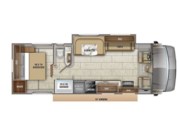 This RV is built on a Ford E-450 chassis with a Ford's Godzilla V-8 gas engine. This engine is impressive, offering both torque and power, and is quieter than the V10. Additionally, it provides better fuel economy.