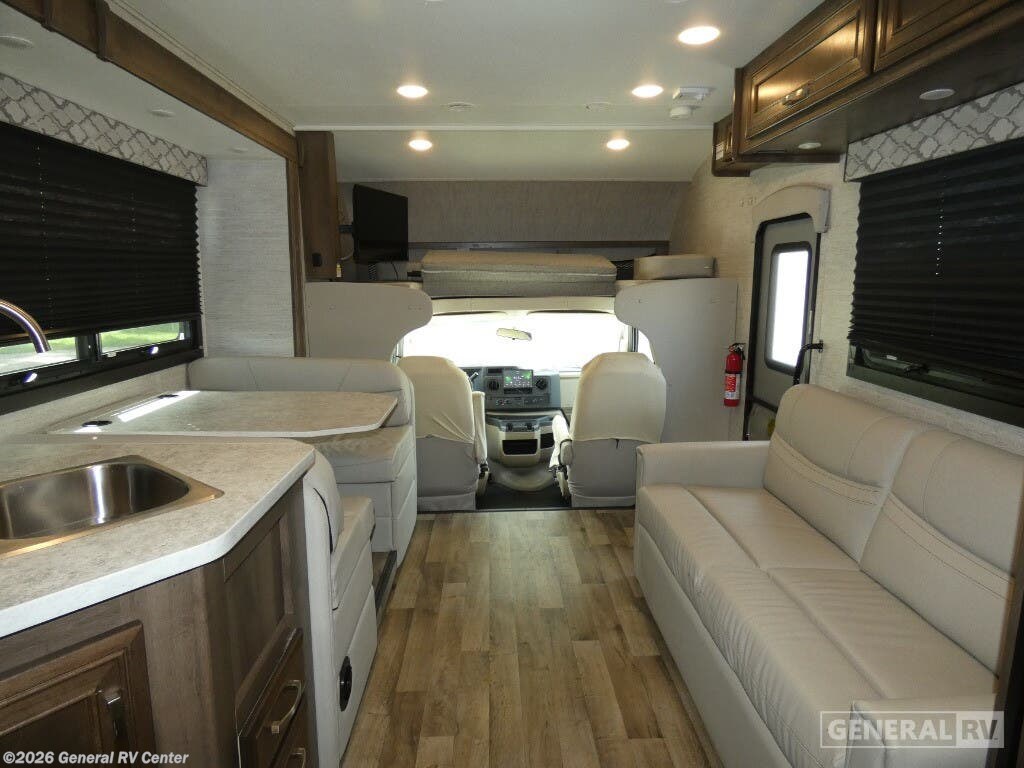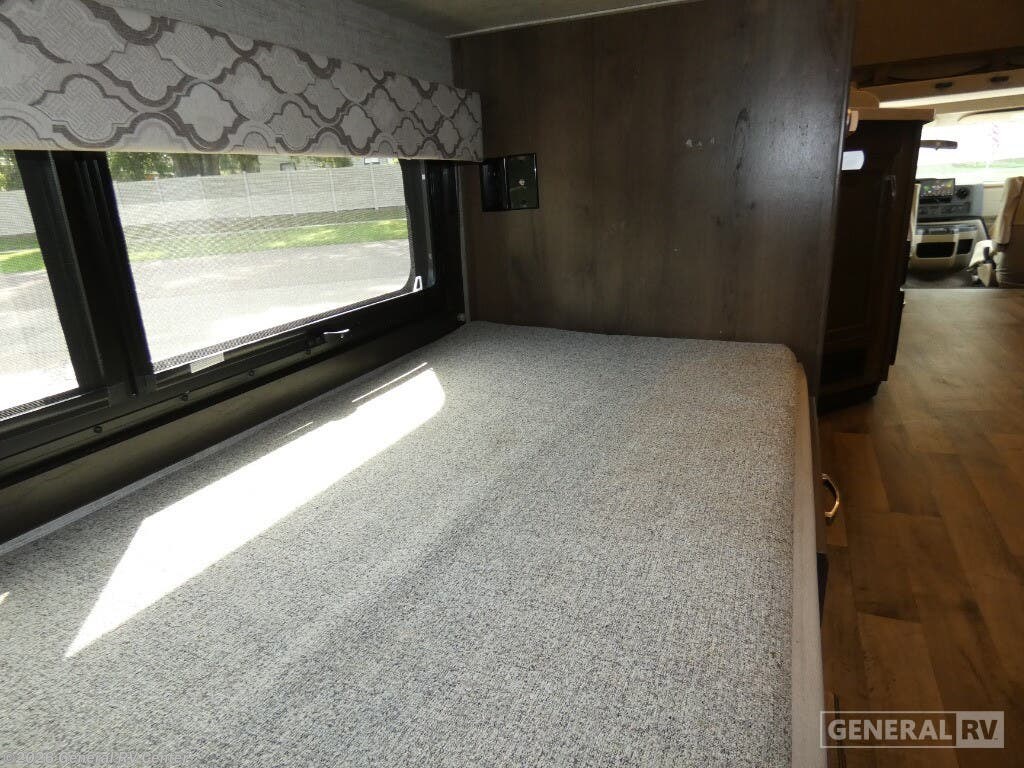 Experience the open road like never before with the 2021 Jayco Redhawk 31F. Designed for families and adventurers alike, this spacious RV offers comfortable accommodations for up to ten people, making it the perfect choice for those who love to travel with friends and family. The cleverly designed floorplan includes a cozy rear bedroom featuring a queen-sized bed, while the bunkhouse provides additional sleeping space with two bunks. The cab-over bunk and convertible dinette and sofa ensure everyone has a place to rest after a day of exploration. The Redhawk 31F is built on a sturdy Ford E450 chassis, powered by a robust engine that delivers 350 horsepower and 468 lb-ft of torque, ensuring a smooth and powerful ride. The center kitchen is equipped with a mid-size refrigerator and a three-burner cooktop, making meal preparation a breeze. Enjoy meals inside or extend the 18 ft. powered retractable awning for a delightful outdoor dining experience. With ample storage options, including overhead cabinets and a pantry, you can bring along all the essentials for your journey. Whether you're heading to the mountains or the beach, the Jayco Redhawk 31F makes every trip memorable. Its thoughtful amenities and spacious design ensure comfort and convenience wherever the road takes you. For more details or to see this model in person, visit your nearest General RV dealership. Your adventure awaits!